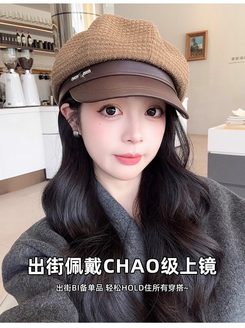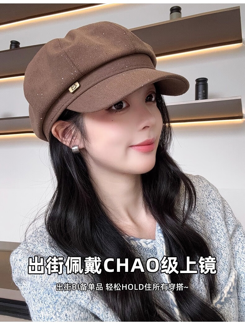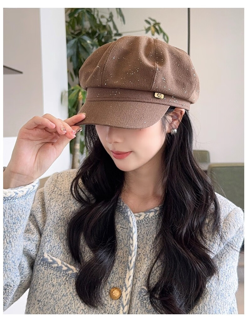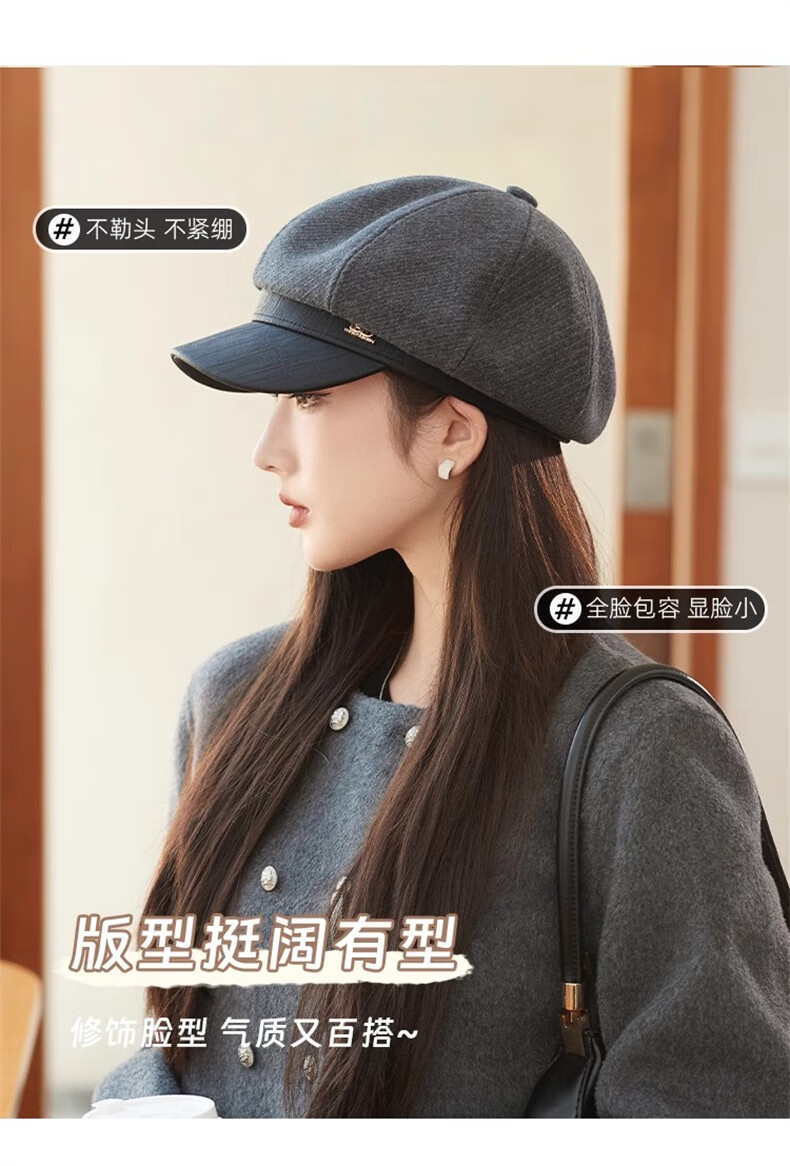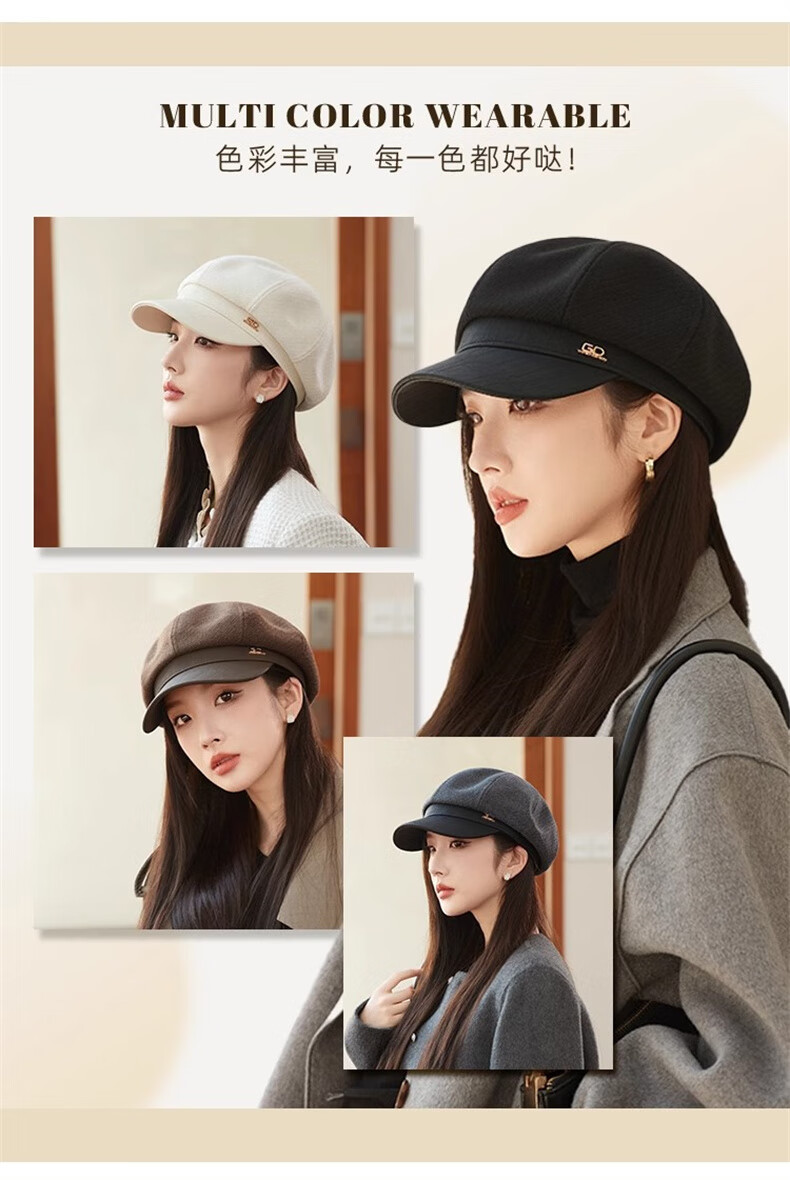 Scarecrow beret hat for women 2025 new fashion versatile Korean painter's hat simple octagonal hat showing face small and suitable for all seasons black one size