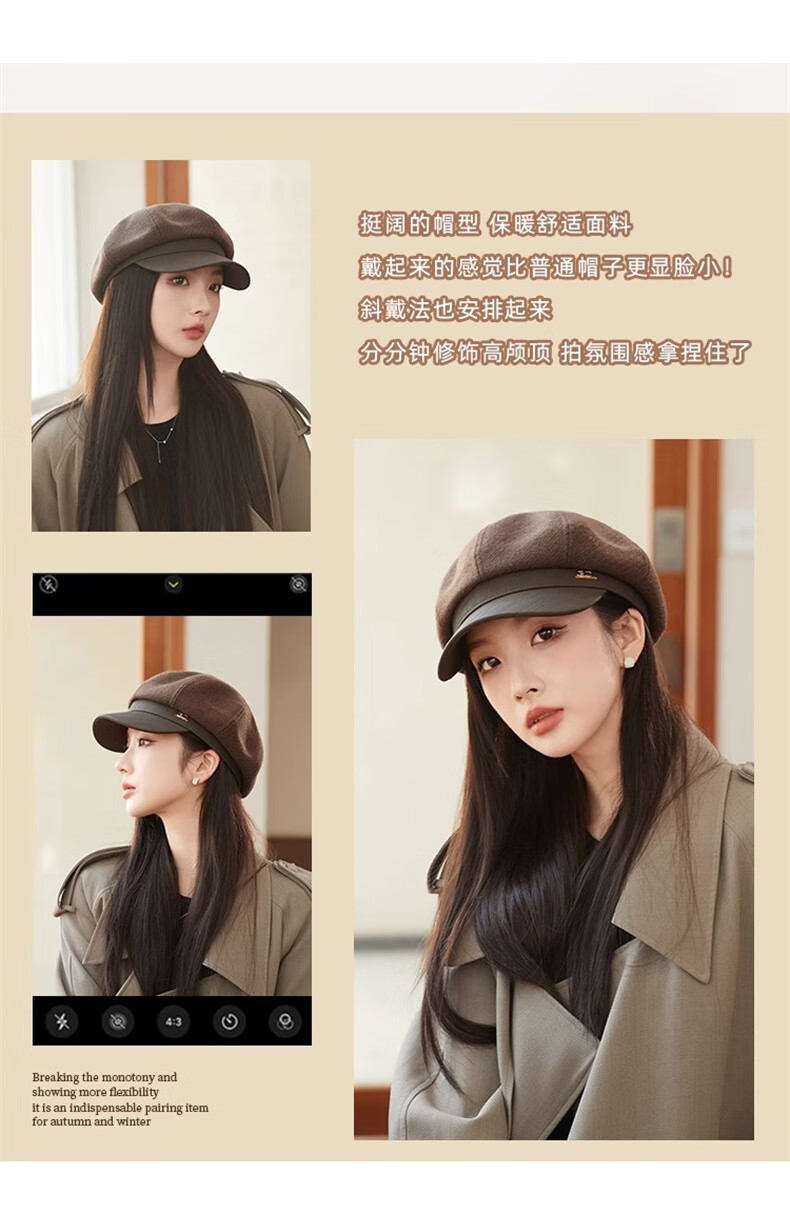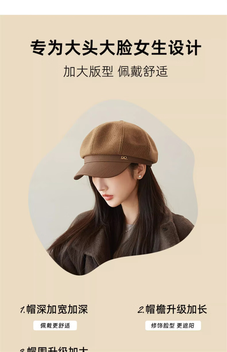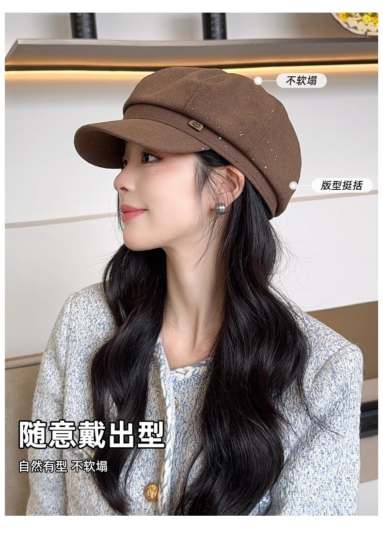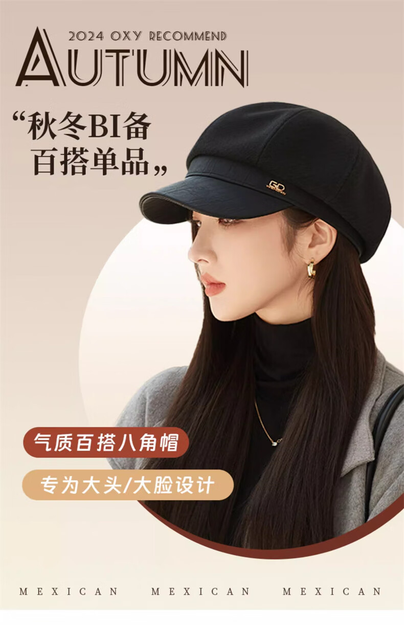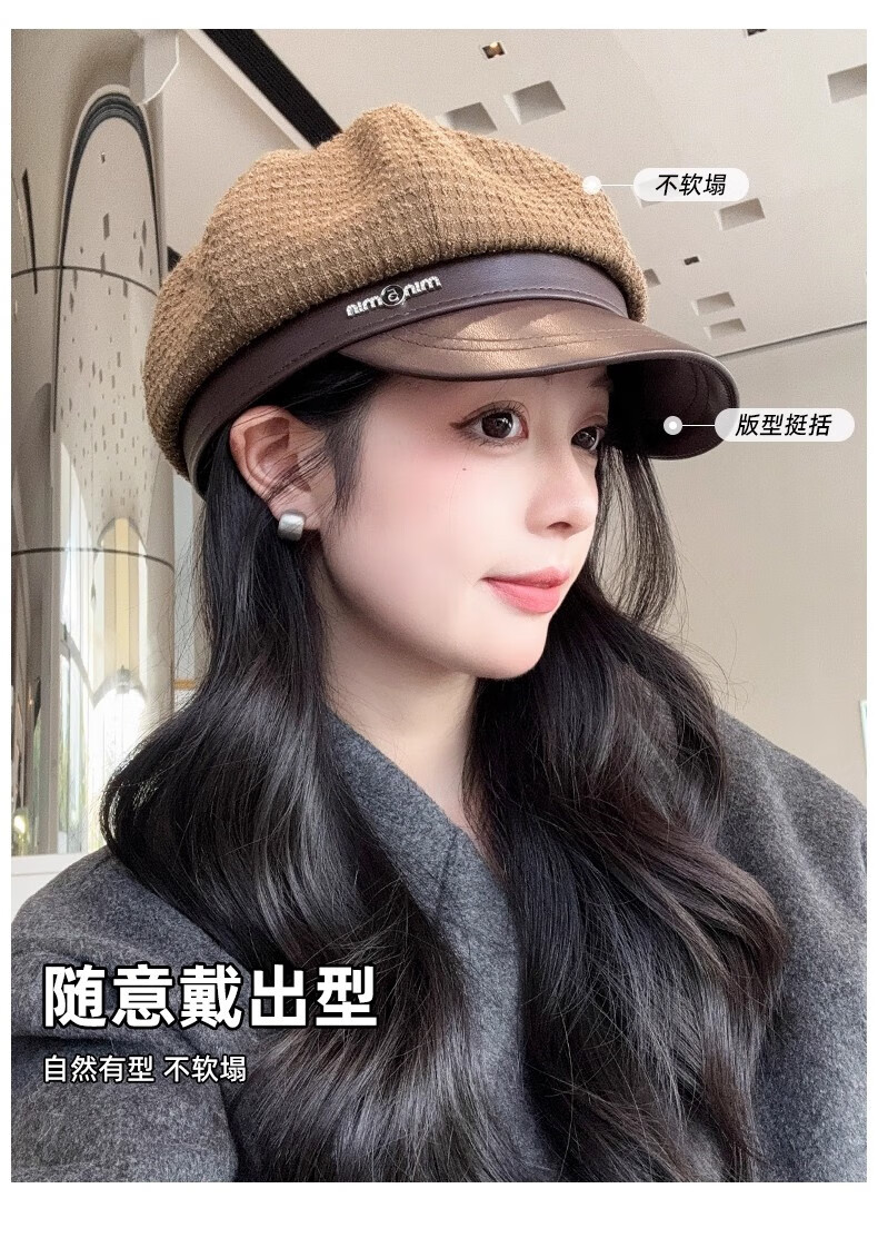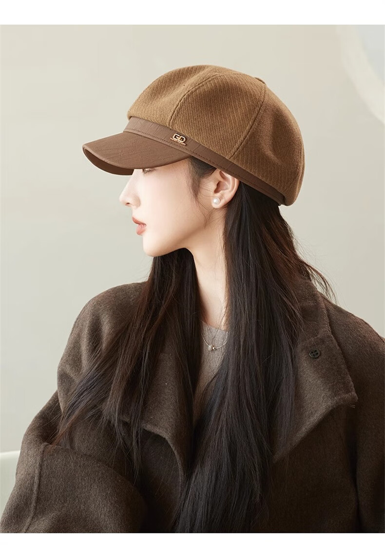 Scarecrow beret hat for women 2025 new fashion versatile Korean painter's hat simple octagonal hat showing face small and suitable for all seasons black one size