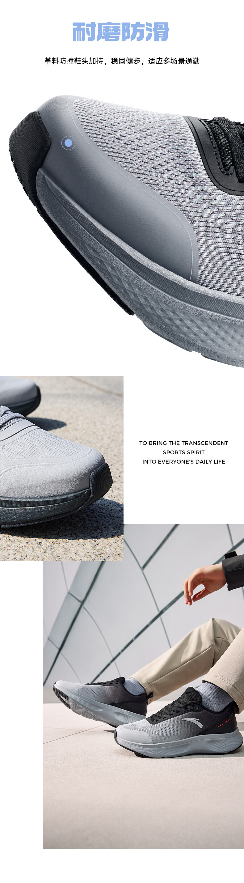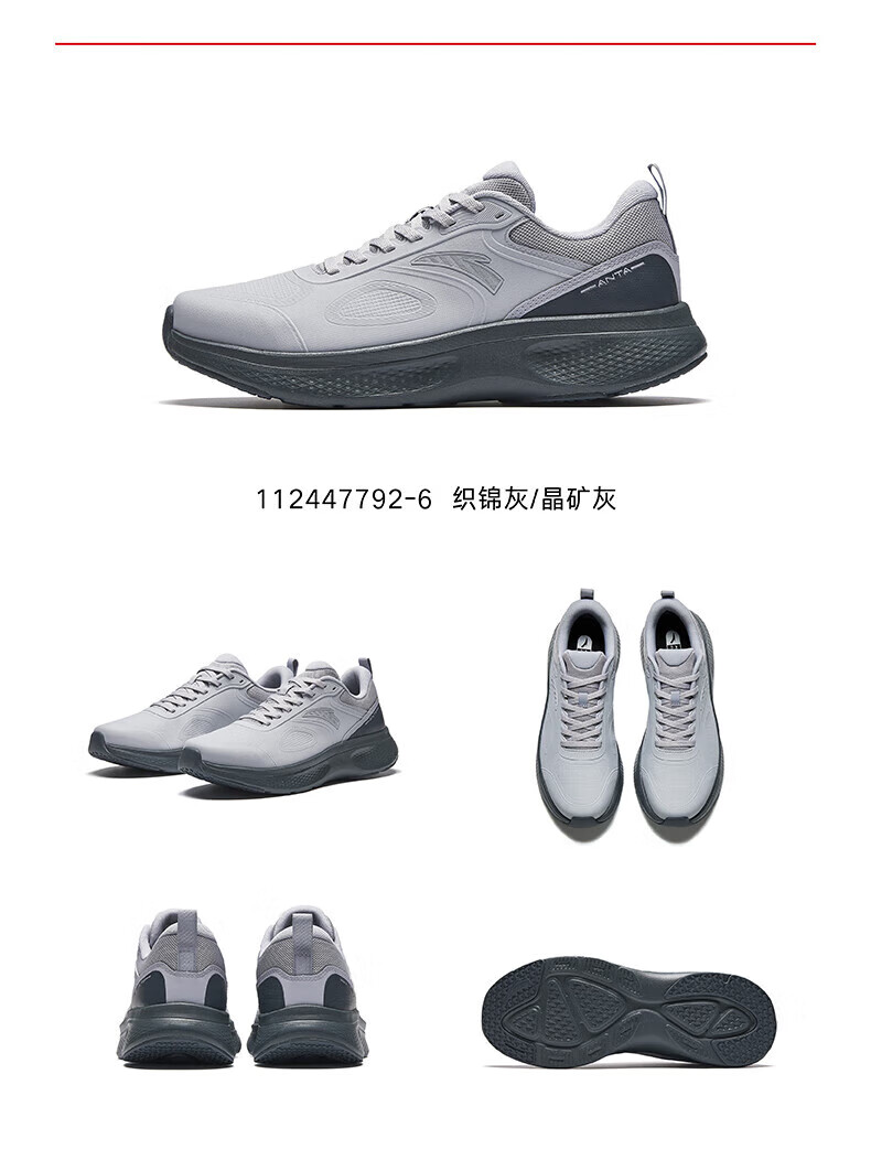 ANTA Basic Walking丨Lightweight and Comfortable Sports Shoes Men's Cushioning Walking Training Shoes Mesh Brocade Gray/Crystal Gray-6 39