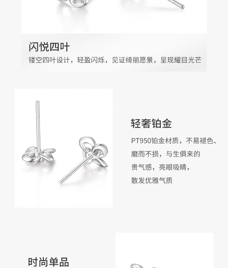 Mengjinyuan platinum earrings PT950 platinum four-leaf clover earrings hollow earrings birthday gift for women about 1.55g