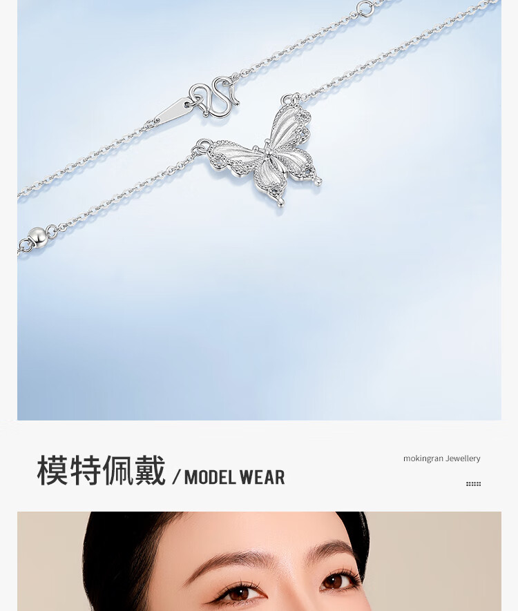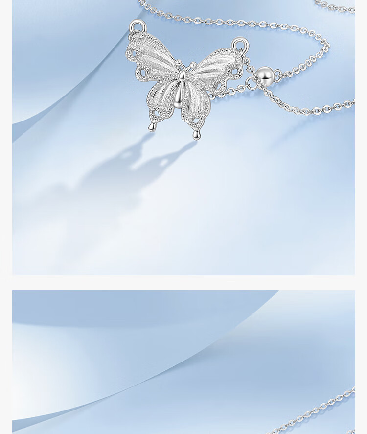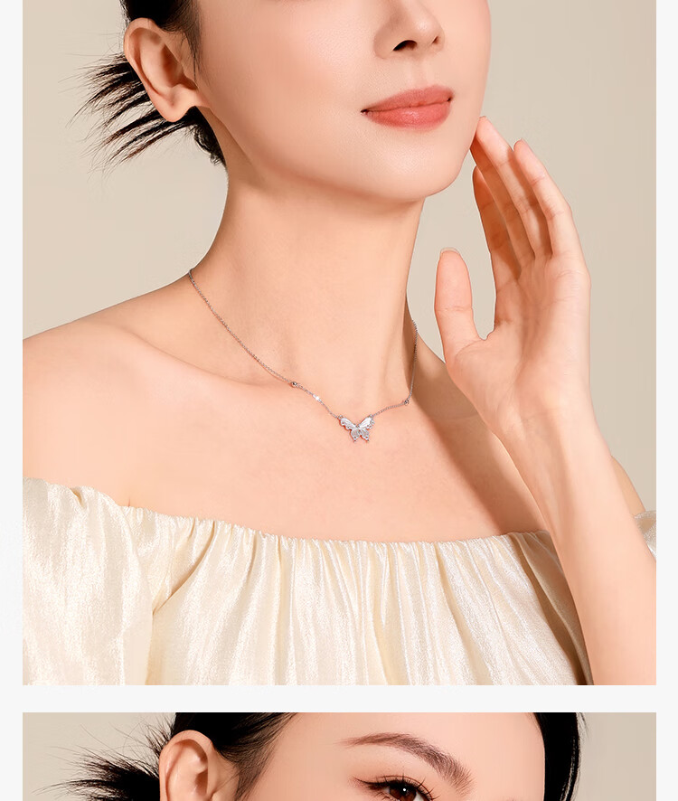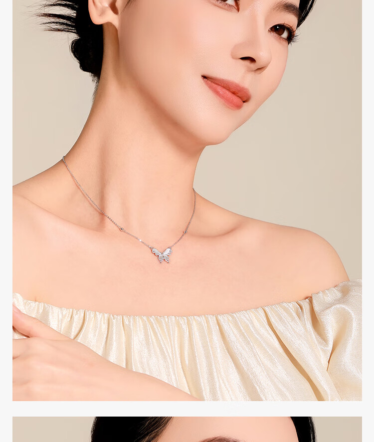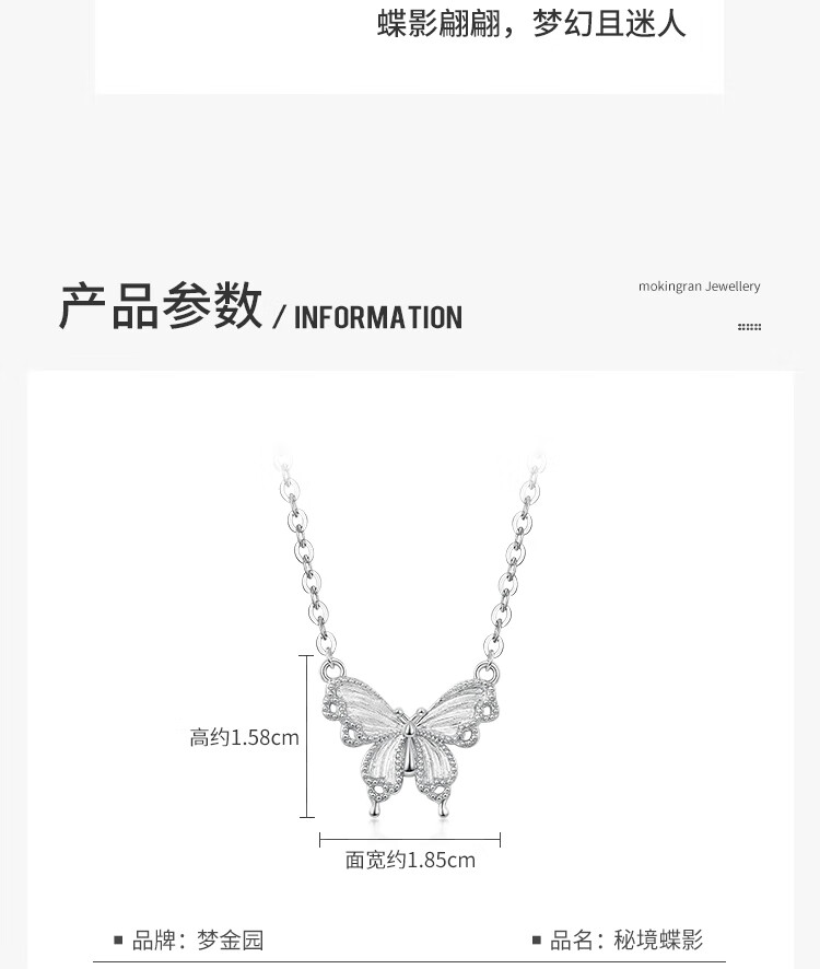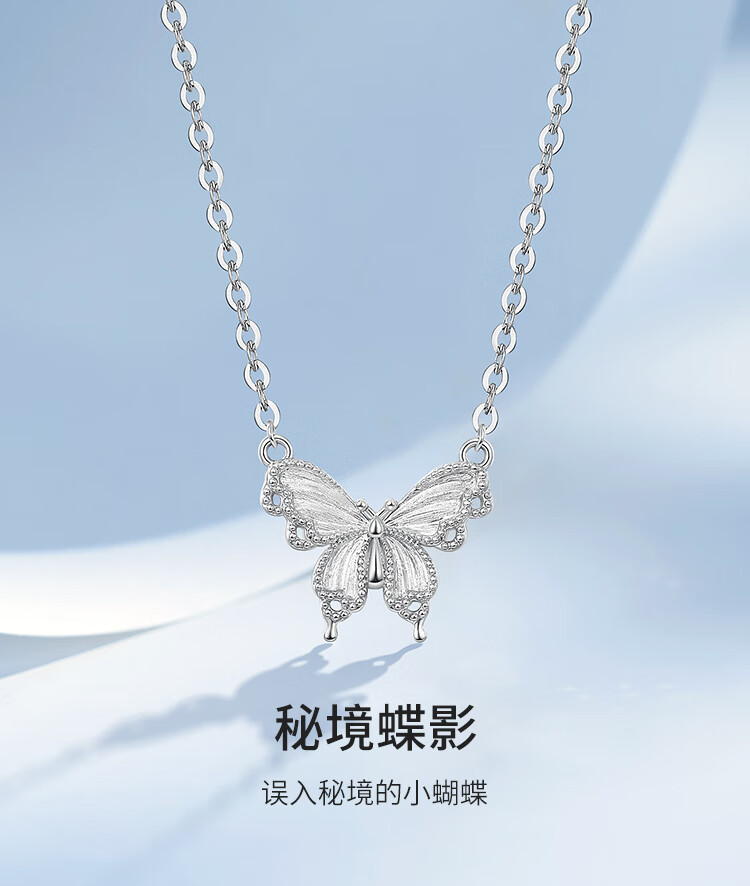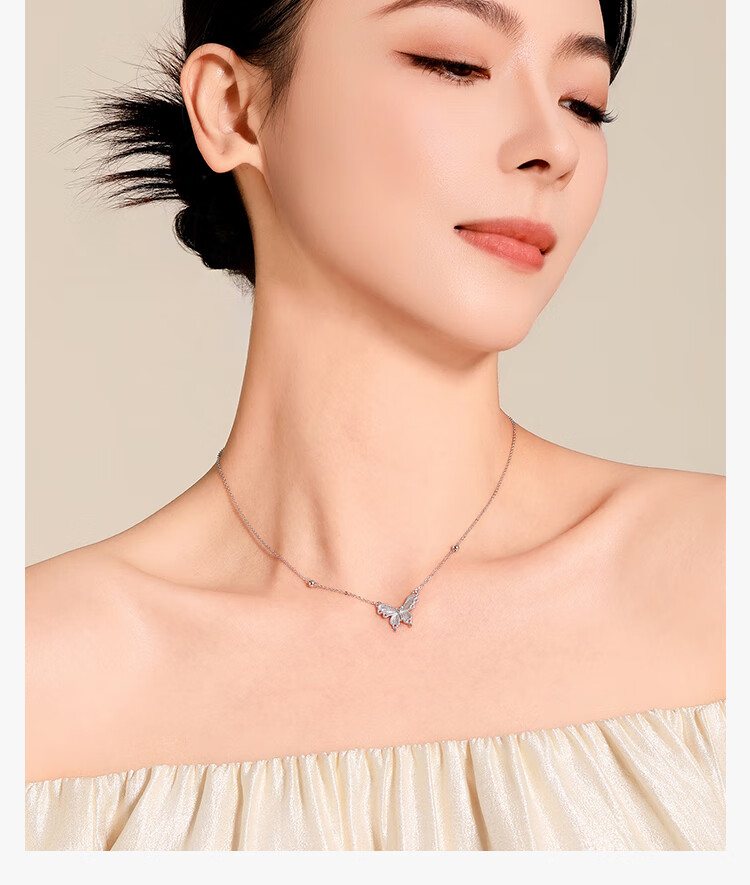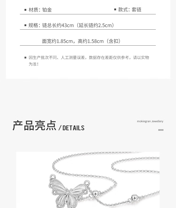 Mengjinyuan Platinum Necklace PT950 Platinum Butterfly Necklace Secret Butterfly Shadow Set Chain Gift for Girlfriend’s Birthday 43cm - About 4.9g