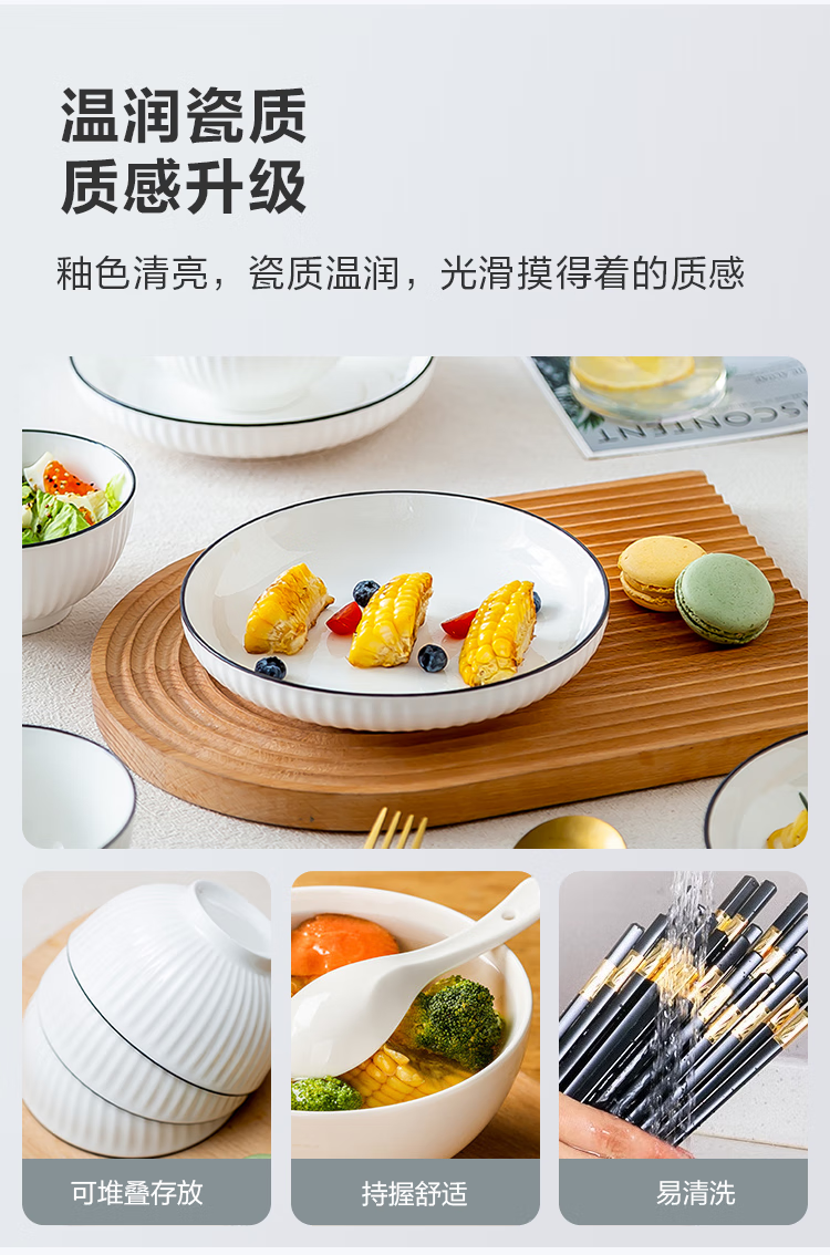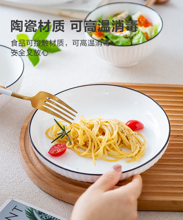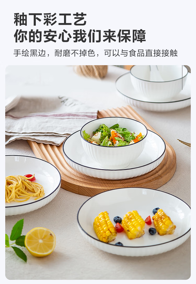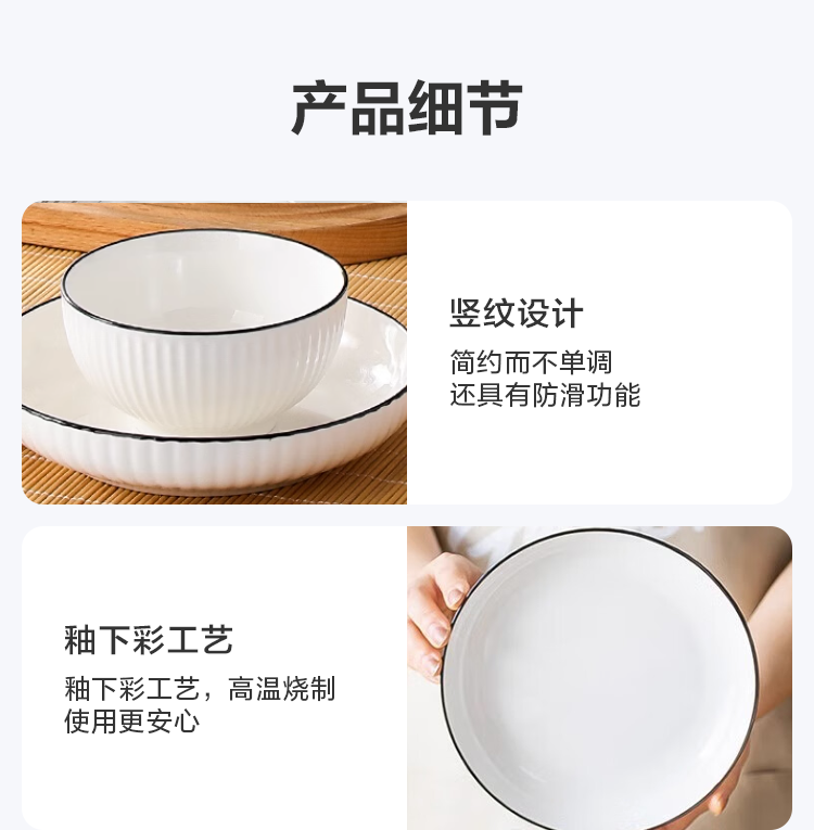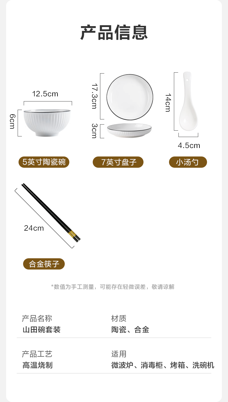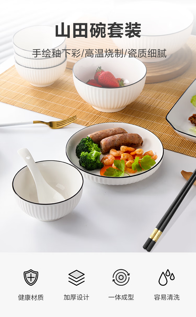 Household dishes, ceramic tableware, rice bowls, plates, chopsticks and spoons set, Yamada vertical pattern one-person food underglaze color tableware set, great value, 2 bowls, 2 plates, 2 chopsticks, 2 spoons