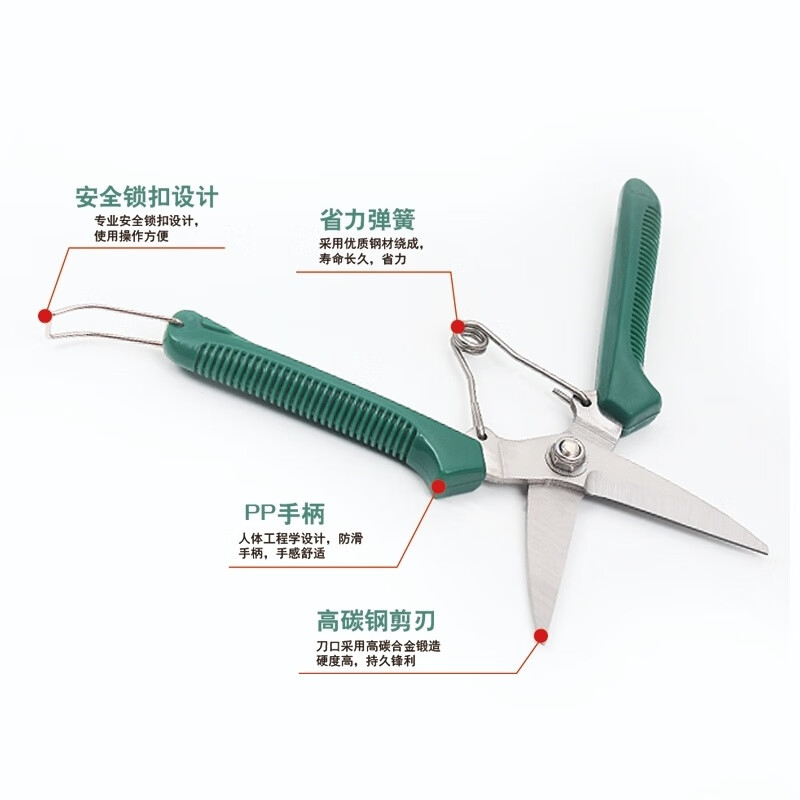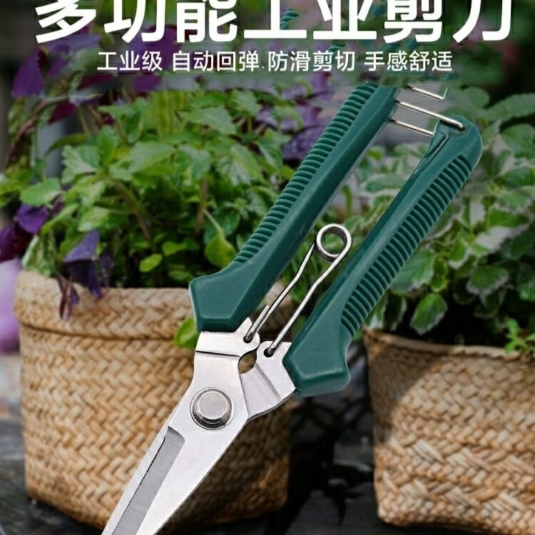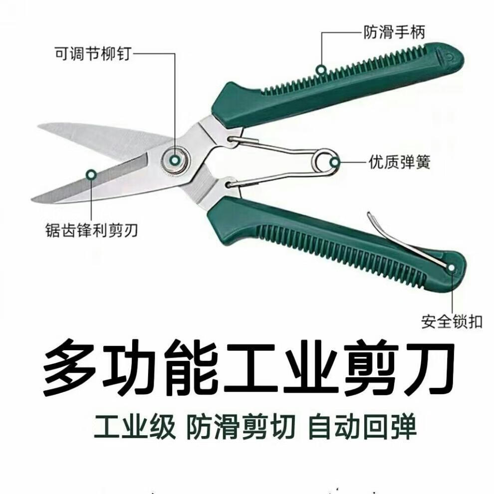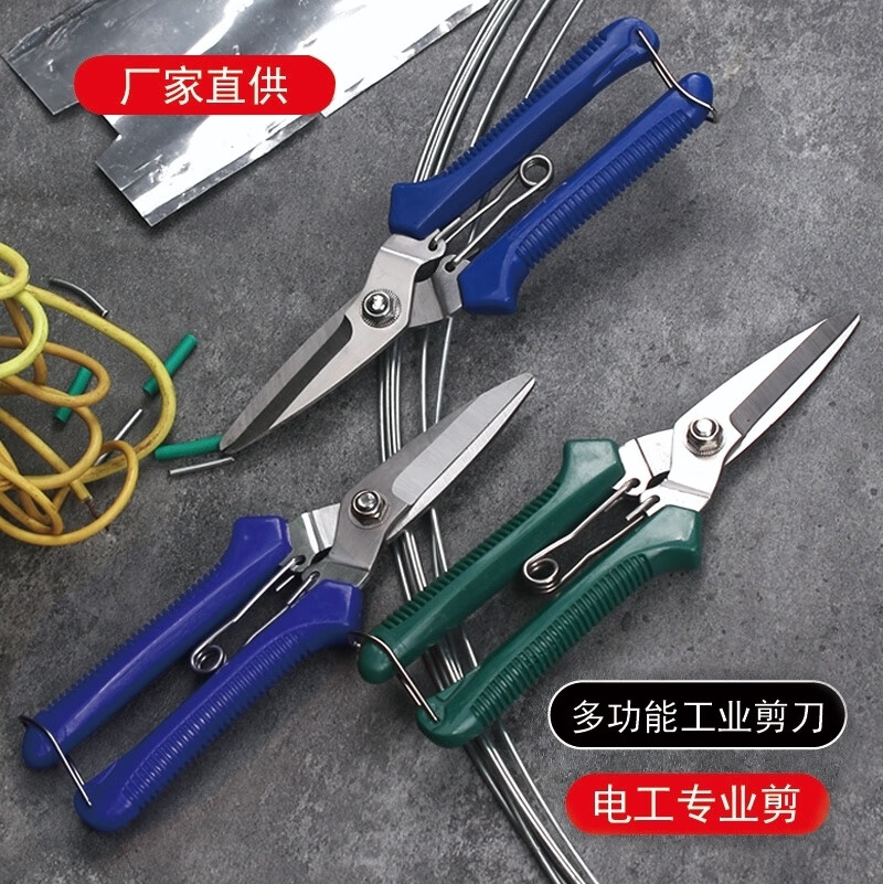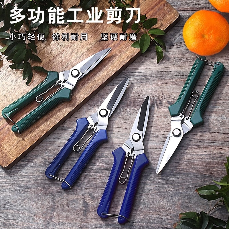 LNGA LANDGRE powerful electrician scissors, industrial grade iron scissors, household multifunctional keel trunking cable shears, fruit picking scissors, multifunctional upgraded version of industrial scissors with green handle (without saw, 1 set)