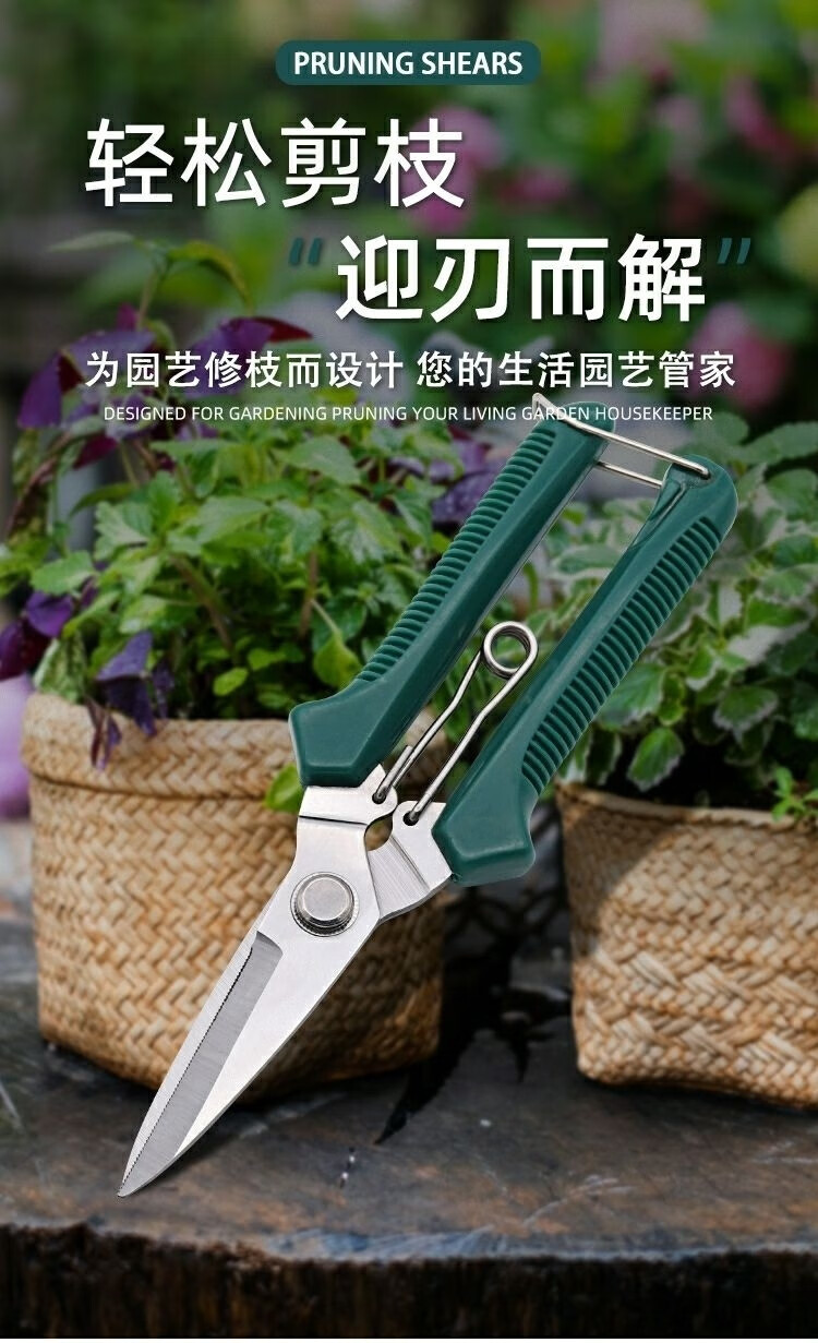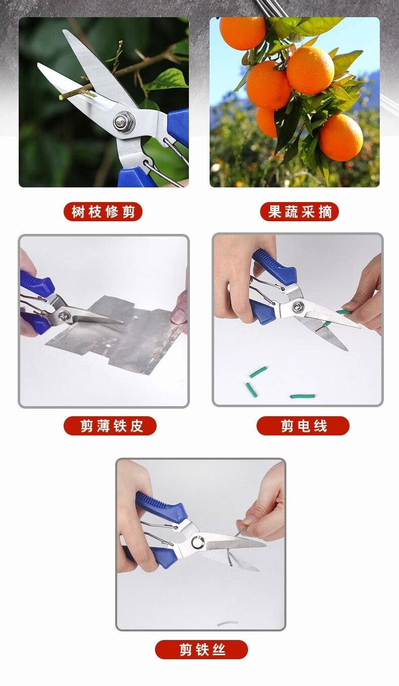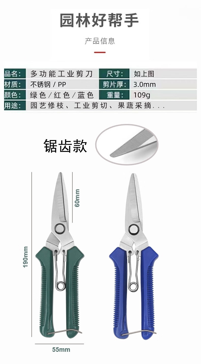LNGA LANDGRE powerful electrician scissors, industrial grade iron scissors, household multifunctional keel trunking cable shears, fruit picking scissors, multifunctional upgraded version of industrial scissors with green handle (without saw, 1 set)