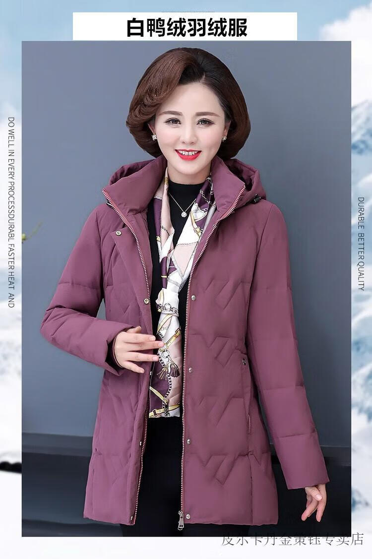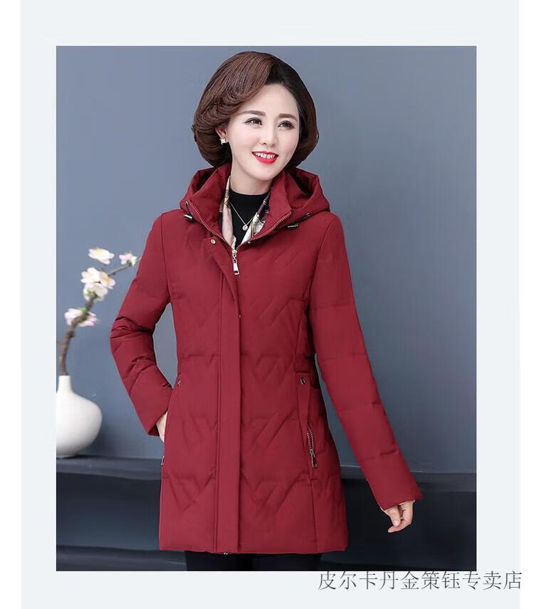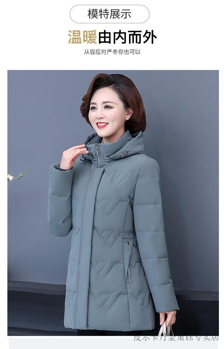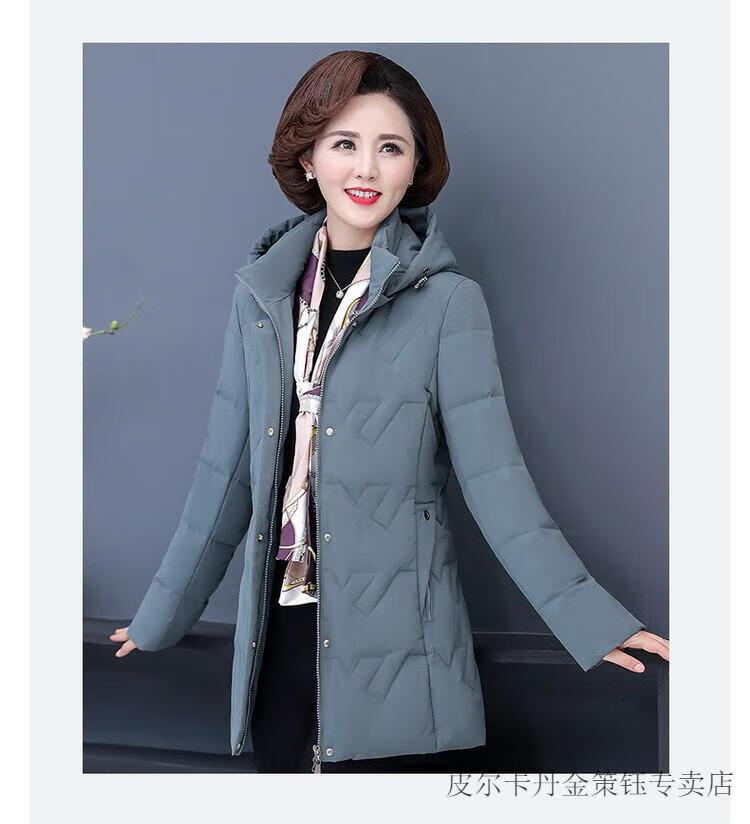 Pierre Cardin 2025 New Middle-aged Mom Down Jacket Women's Middle-aged and Old Fashioned Winter Clothes White Duck Down High-end Warm Short Jacket Blue 2XL Recommended 105-120 Jin Jin equals 0.5 kg
