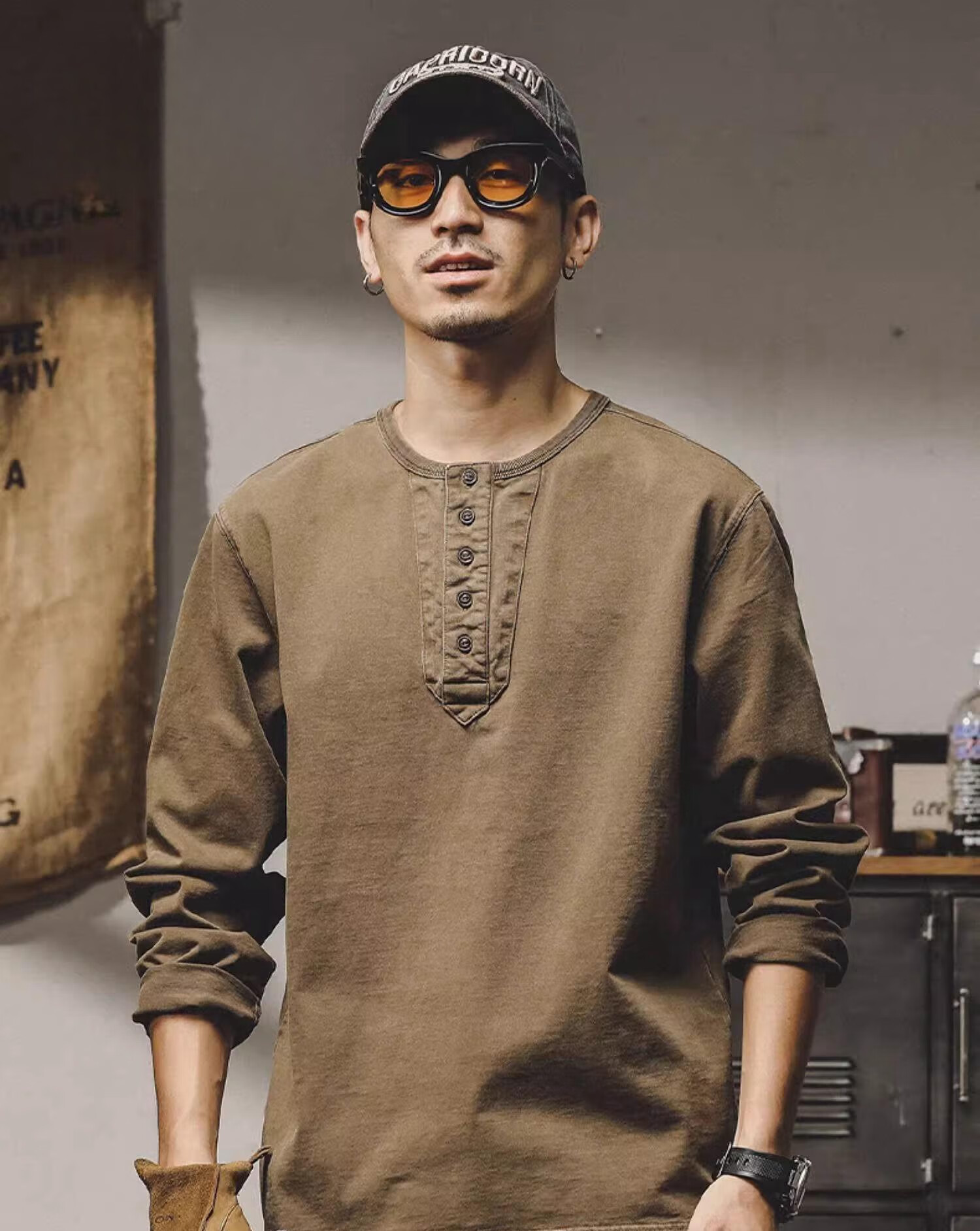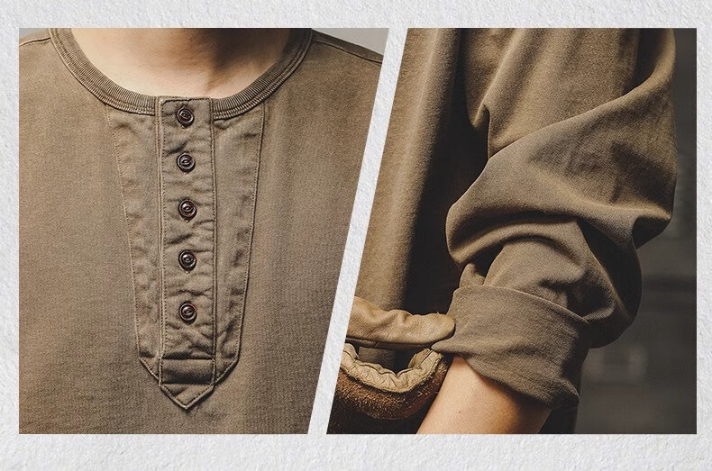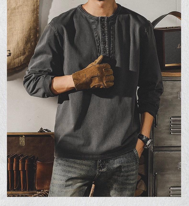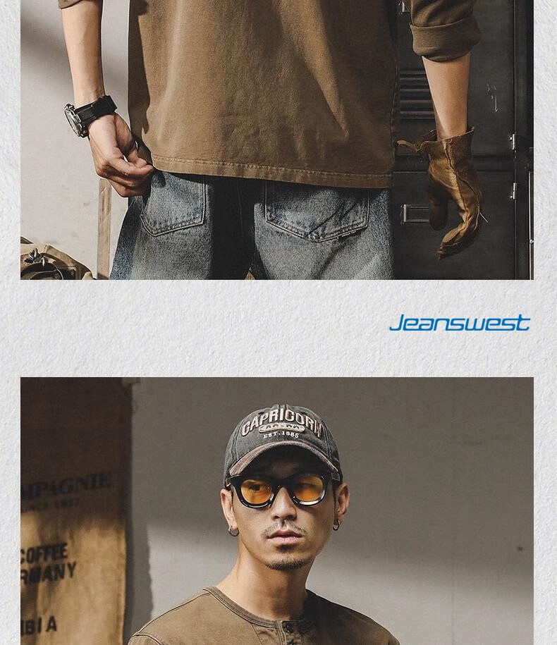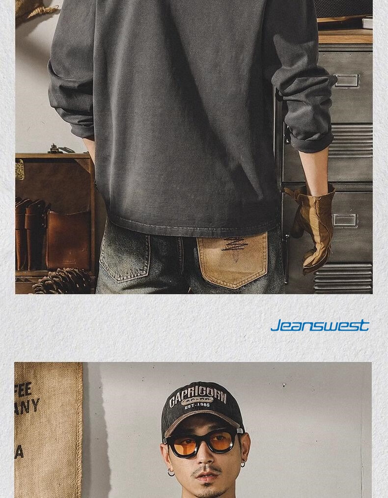 Jeanswest American retro long-sleeved T-shirt for men in spring and autumn 330g heavyweight loose trendy brand tough guy Henry collar bottoming shirt winter 15 mocha brown 2XL suitable for 160-180Jin Jin equals 0.5 kg