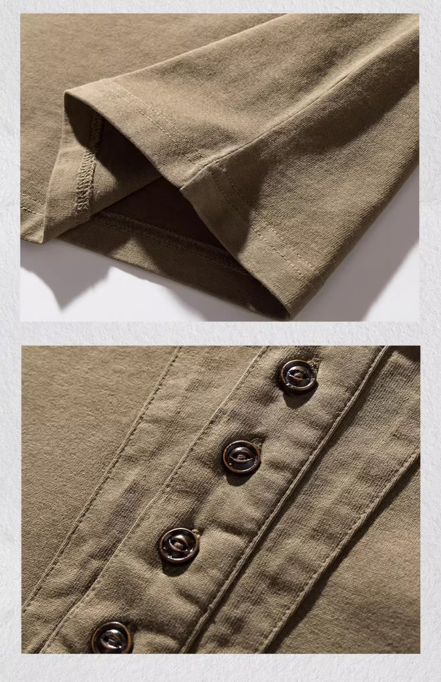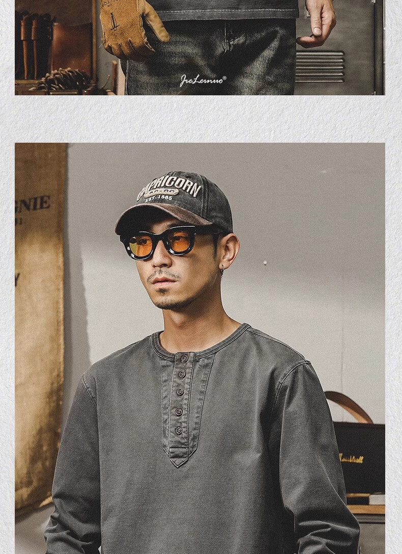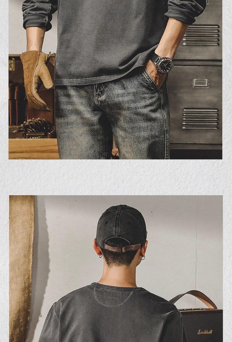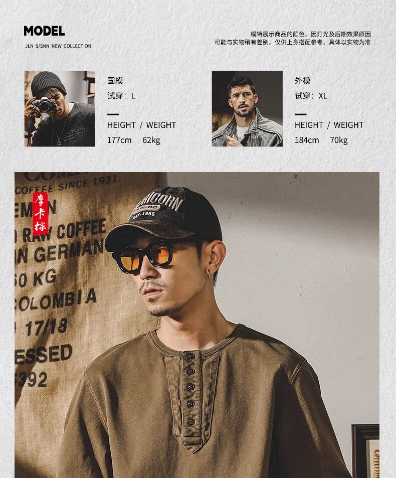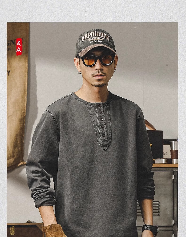 Jeanswest American retro long-sleeved T-shirt for men in spring and autumn 330g heavyweight loose trendy brand tough guy Henry collar bottoming shirt winter 15 mocha brown 2XL suitable for 160-180Jin Jin equals 0.5 kg