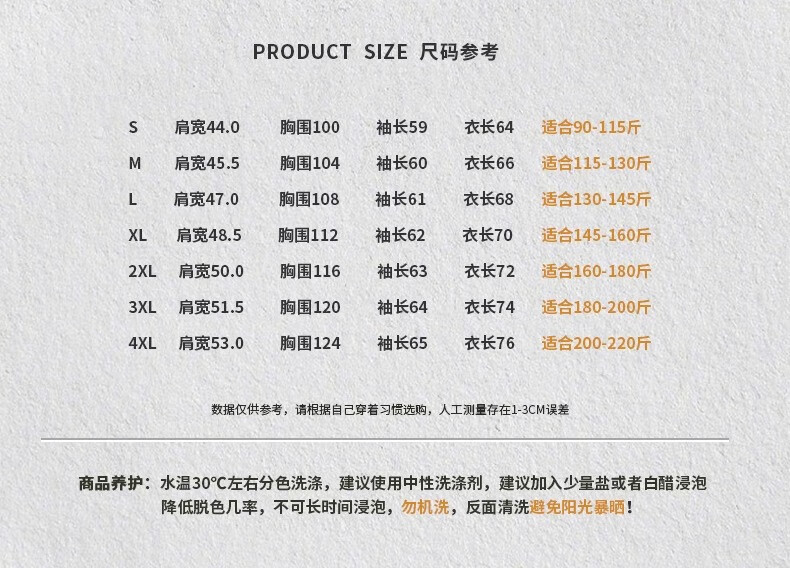 China (cm) 165 / 88-90 170 / 96-98 175 / 108-110 180 / 118-122 185 / 126-130