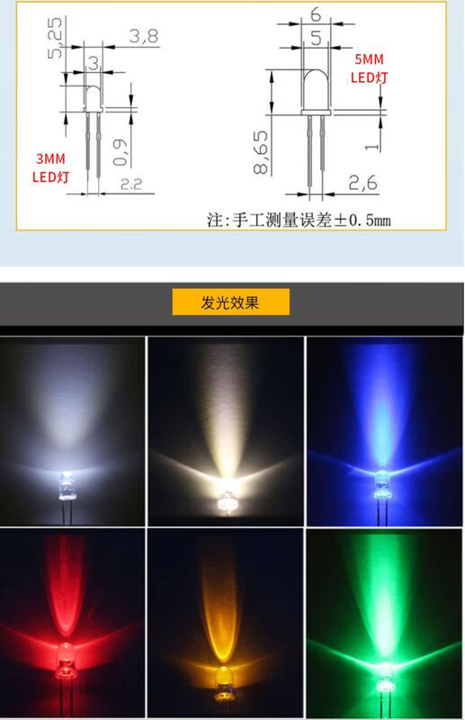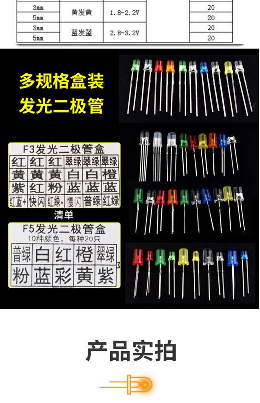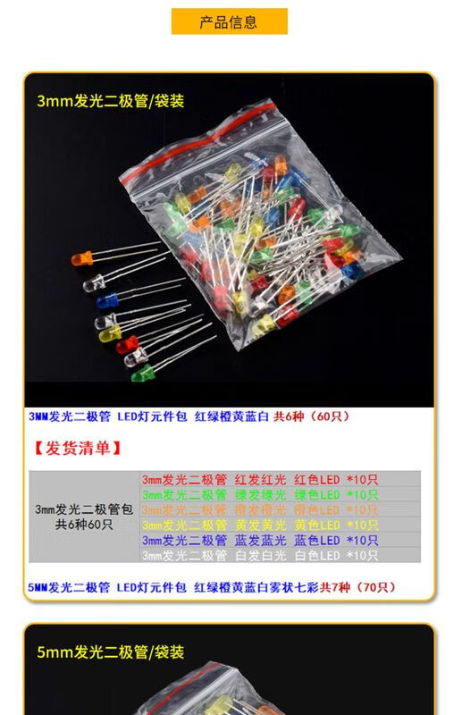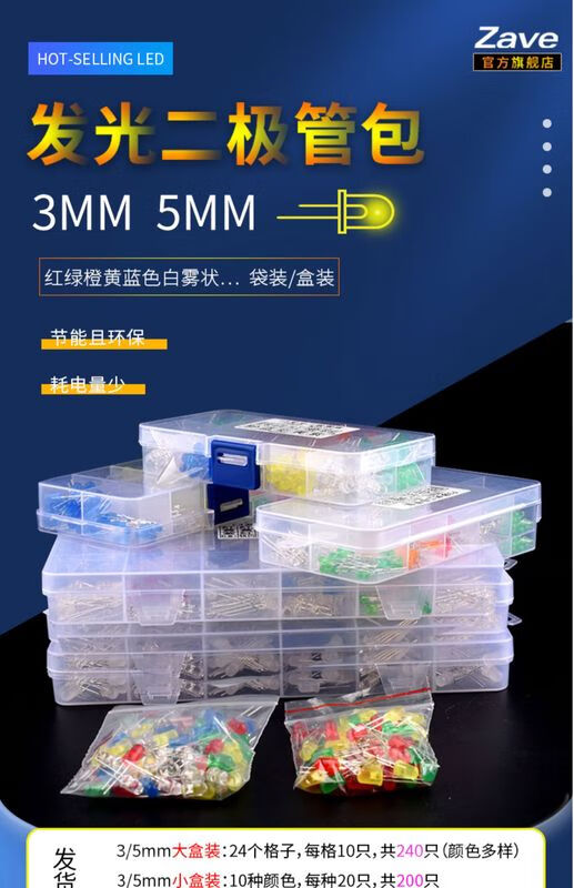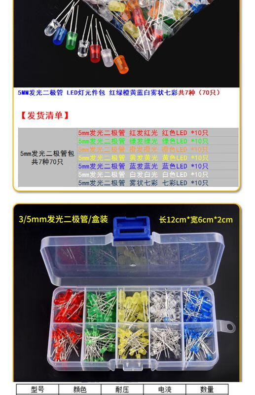 Paquete de diodos emisores de luz de 3 mm/5 mm Paquete de componentes de cuentas de lámpara LED rojo, verde, naranja, amarillo, azul, blanco bolsa/caja de niebla LED de 5 mm 3 tipos de bolsas