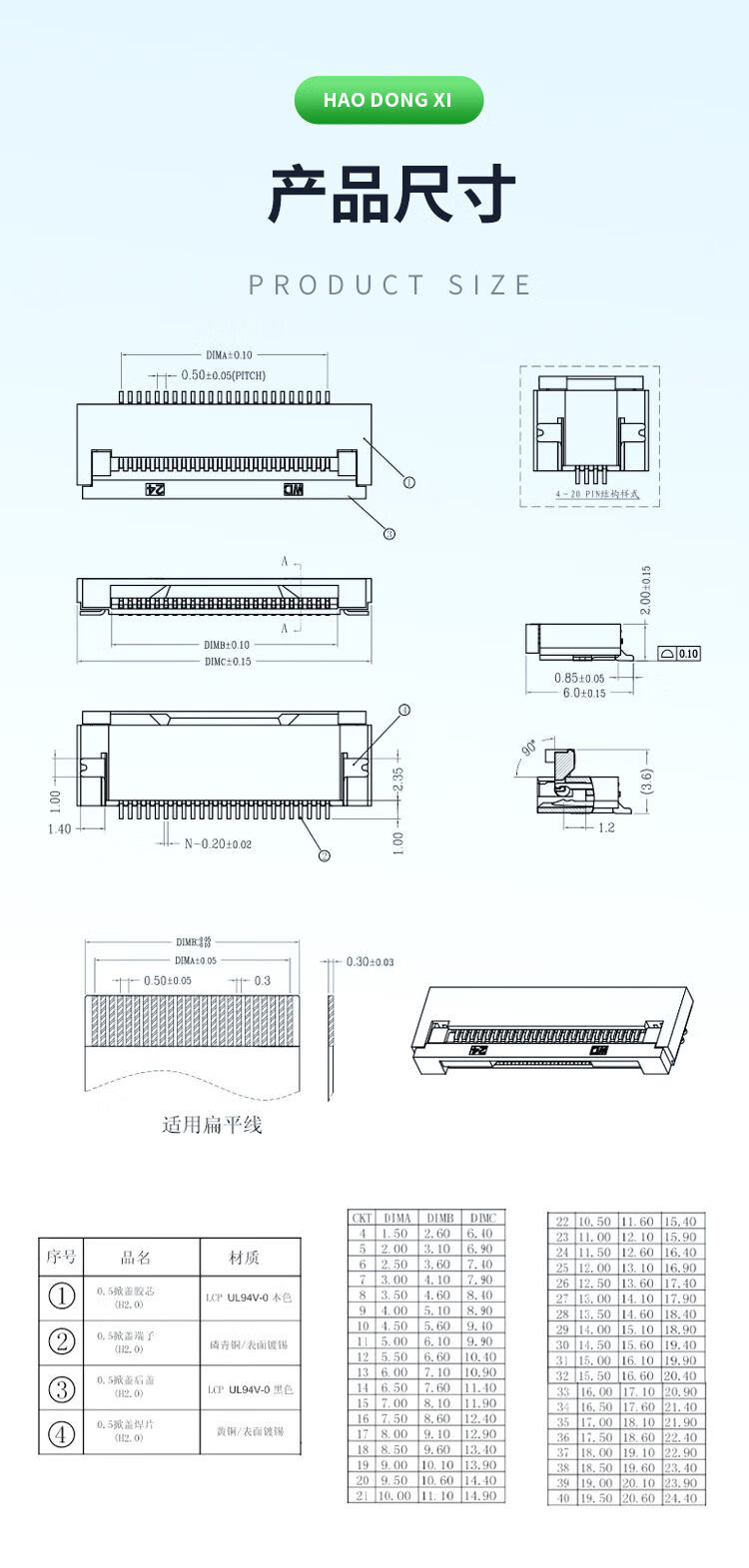 FFC/FPC connector 1.0/0.5MM drawer clamshell top and bottom connection socket 4/6/8/10/12/30~40P FFC/FPC 0.5mm-6P-flip bottom connection (5 pieces)