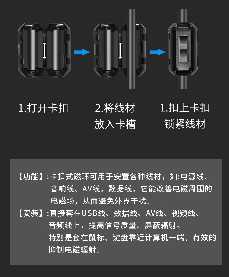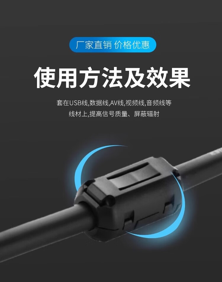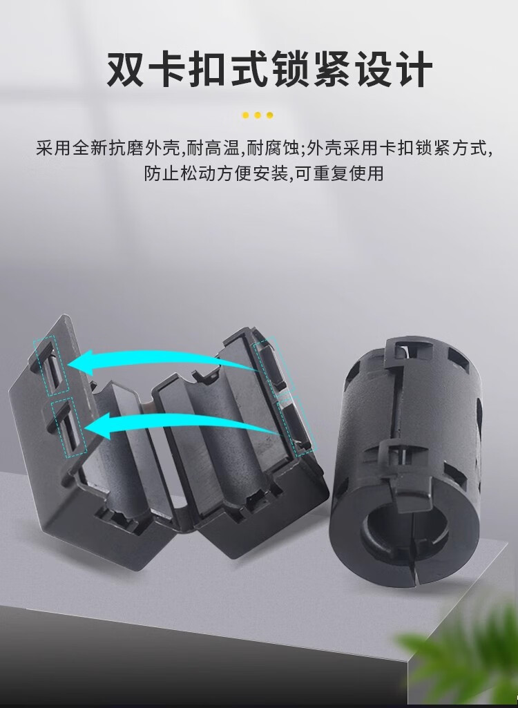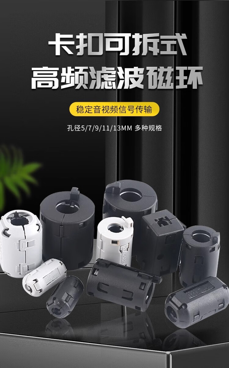 Magnetic ring anti-interference device Filter anti-interference magnetic ring Filter degaussing ring Anti-band magnetic core shield buckle type Black buckle type magnetic ring 90B Inner diameter 9mm