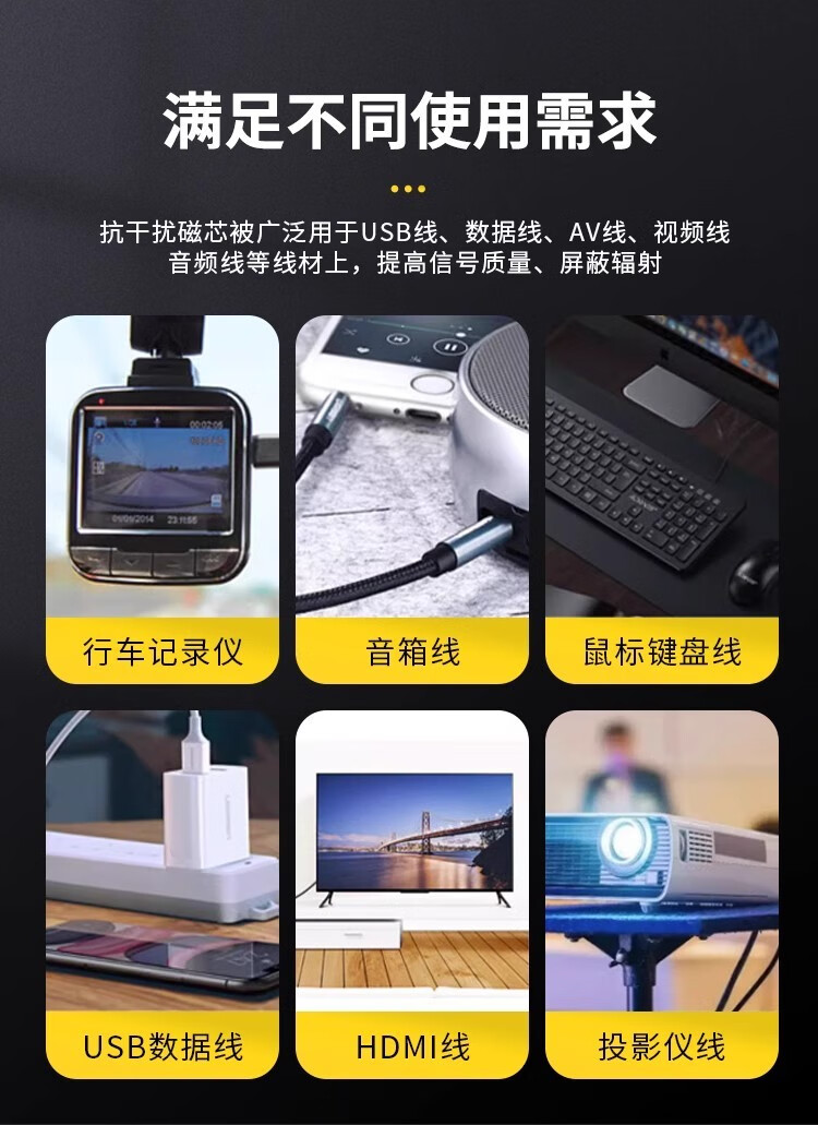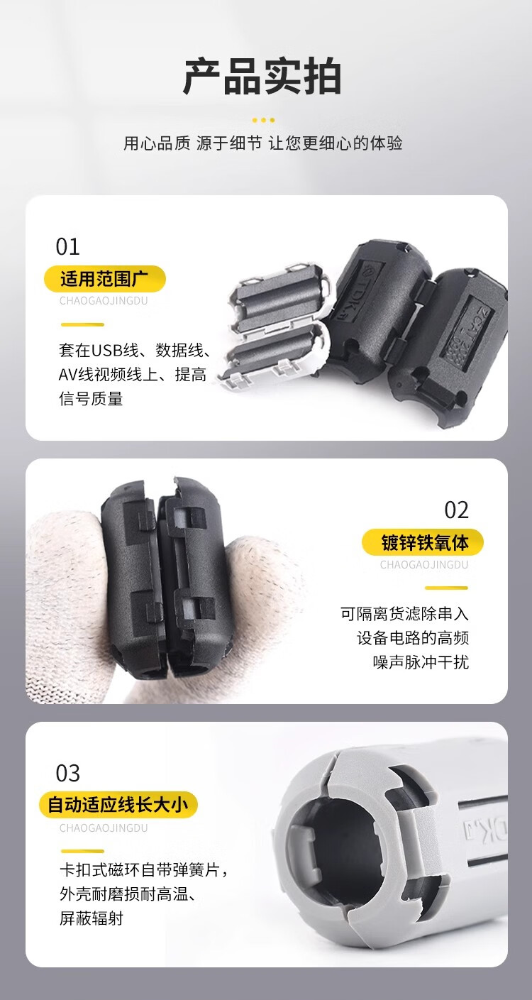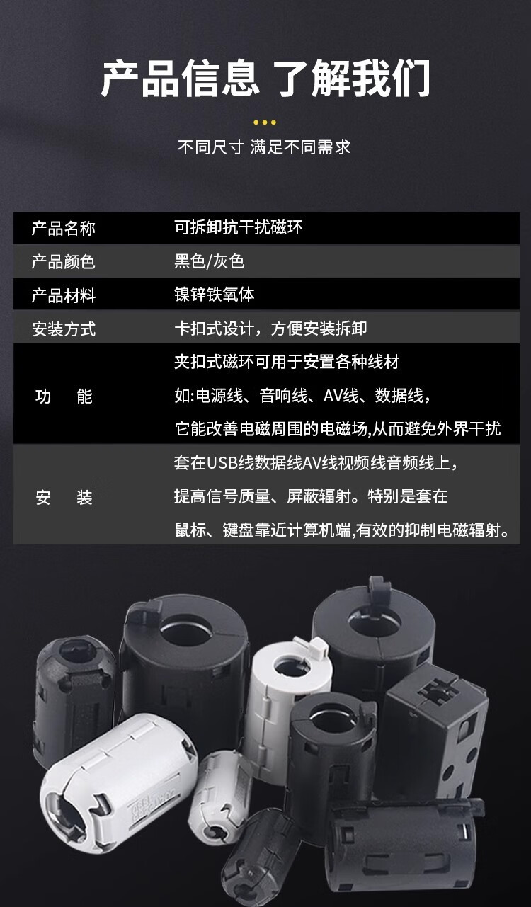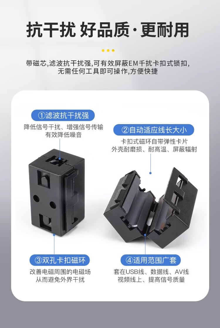 Magnetic ring anti-interference device Filter anti-interference magnetic ring Filter degaussing ring Anti-band magnetic core shield buckle type Black buckle type magnetic ring 90B Inner diameter 9mm