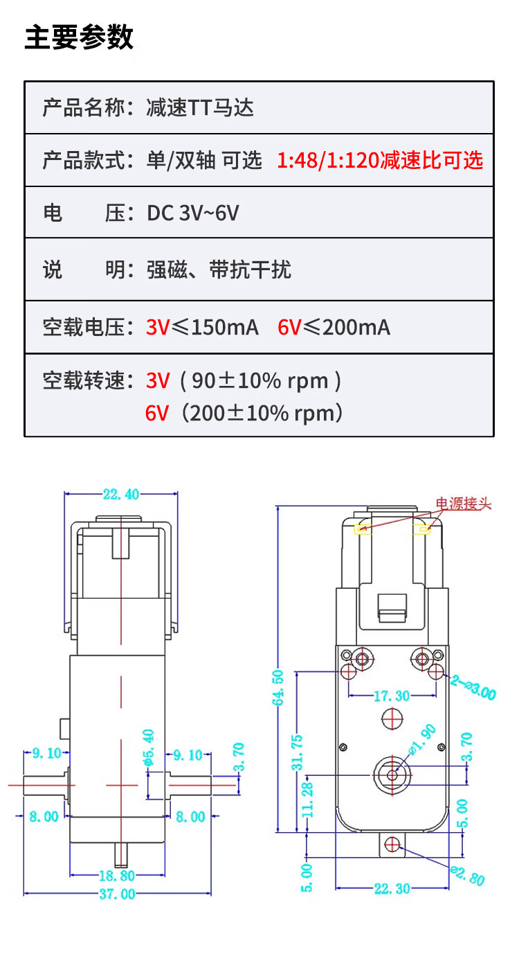 TT motor 130 motor 1 48/1 to 120 robot smart car/smart car reduction motor/tire 1 48 black Dali double shaft reduction motor