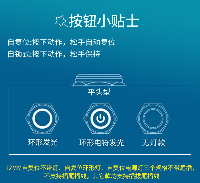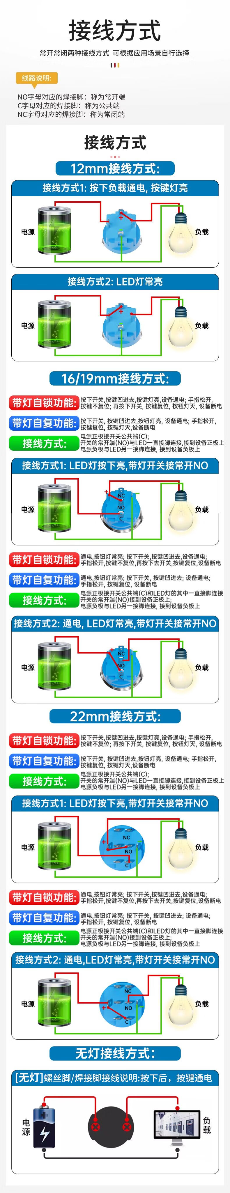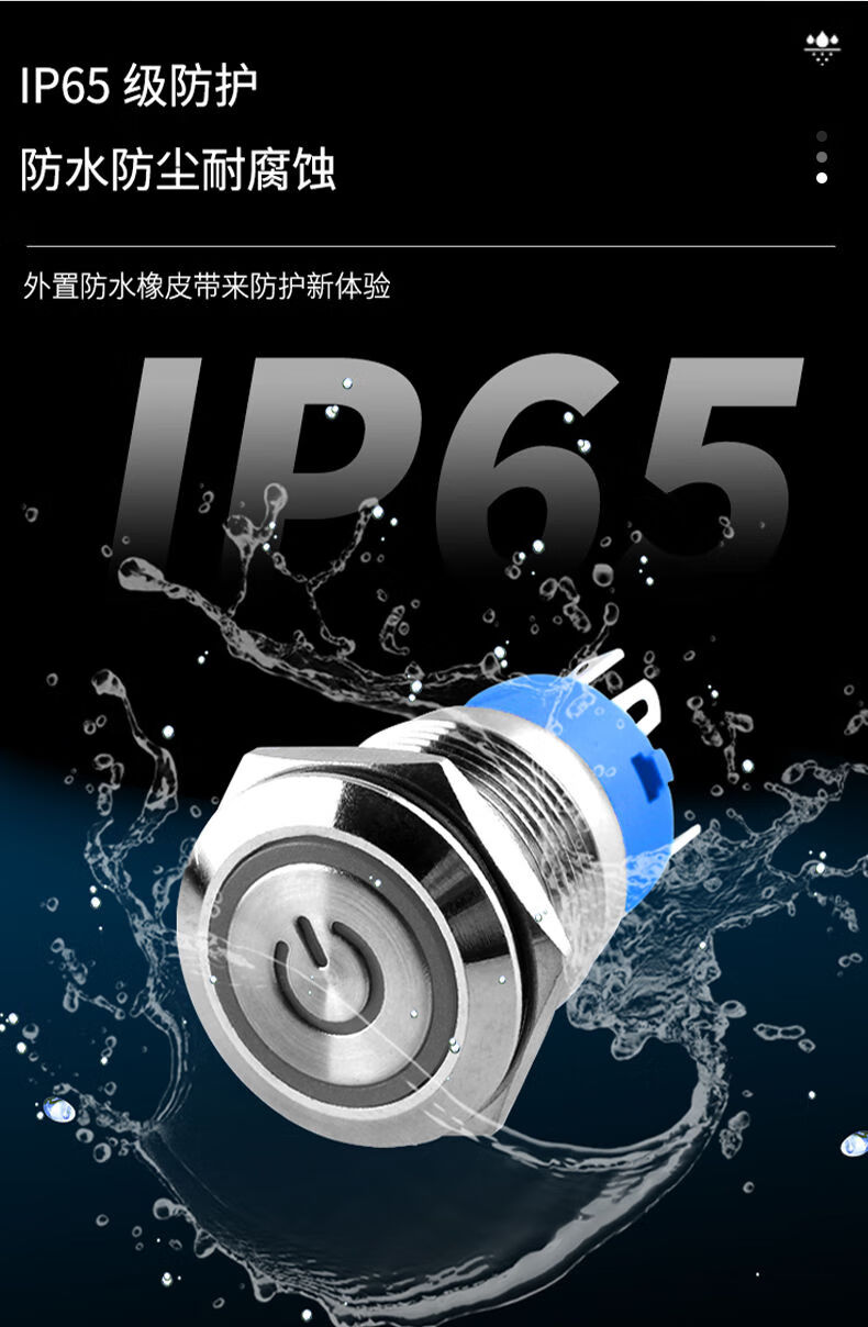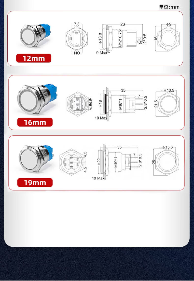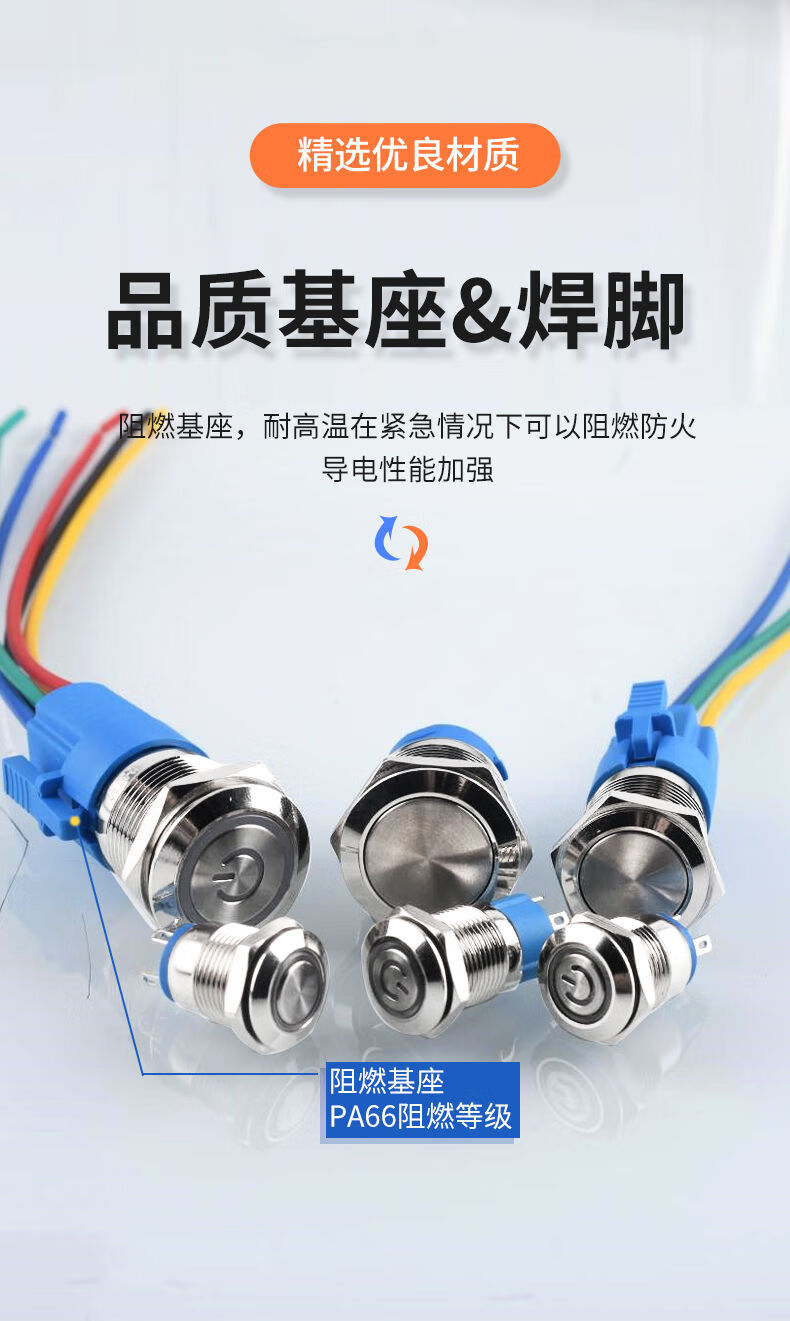 DZYJ metal button switch self-resetting self-locking with light waterproof car modified round small switch 12/16/19mm 12MM flat head without light without wire self-resetting