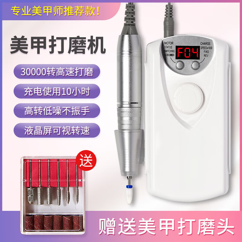 Jingmengyuan Beauty Device Nail Polisher Electric Nail Remover Small Portable Charging Removal Phototherapy Nail Chips Adjustable Speed ​​101 Polisher (Sakura Powder) + 1 No. 20 Tungsten Steel Polishing Head