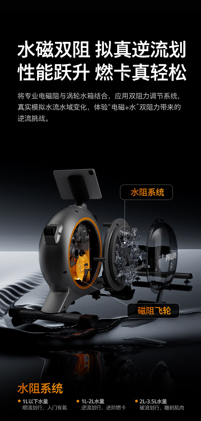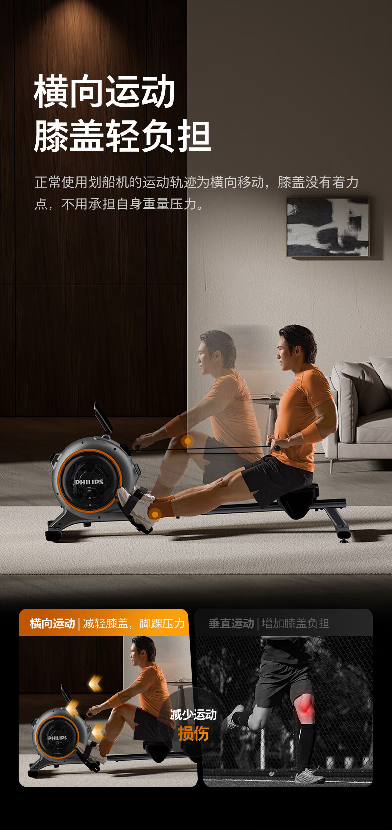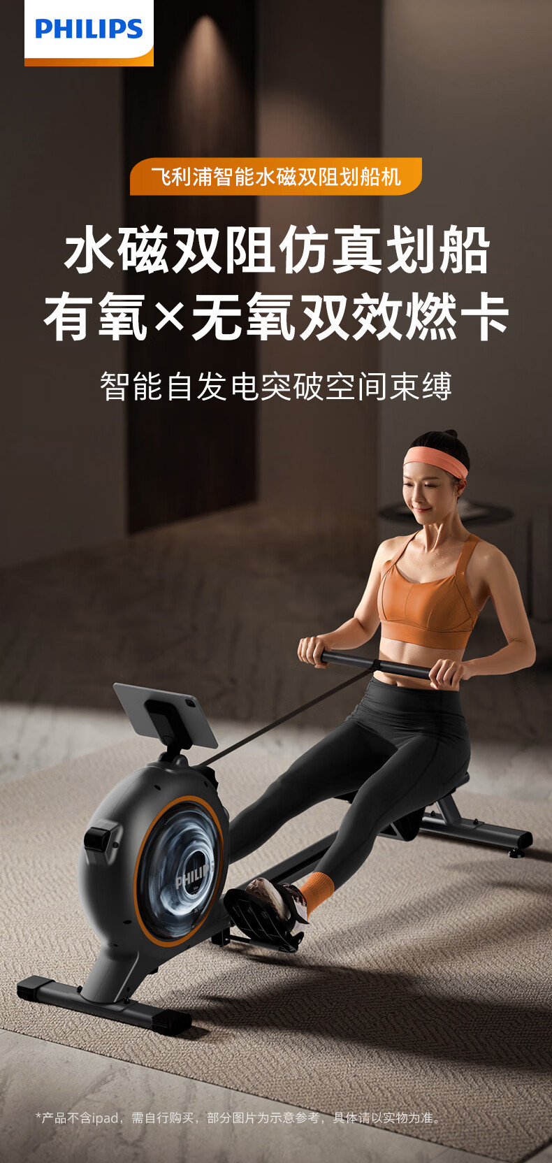 Philips (PHILIPS) rowing machine home smart hydromagnetic dual resistance self-generating rowing machine small silent home fitness equipment gun gray hydromagnetic dual resistance self-generating