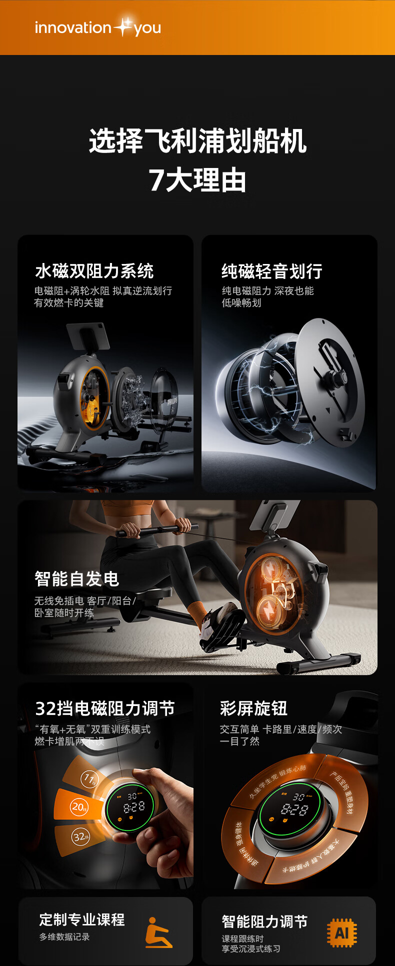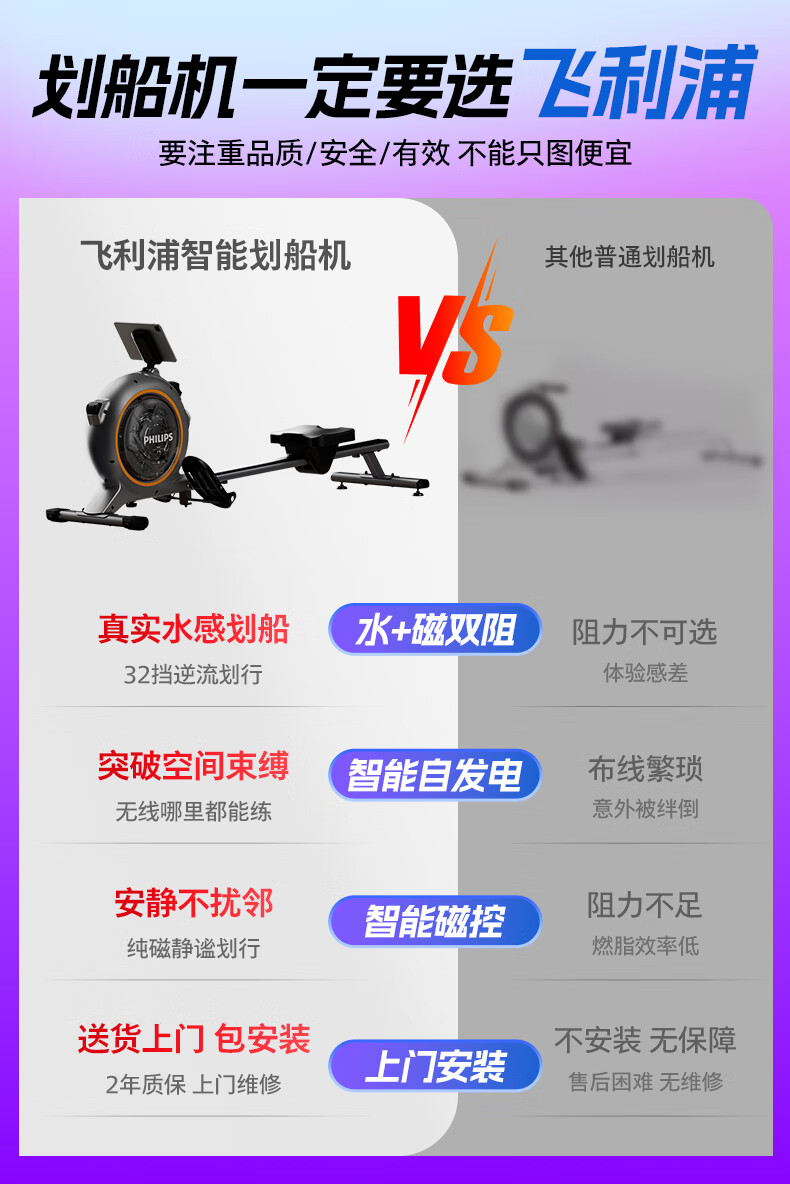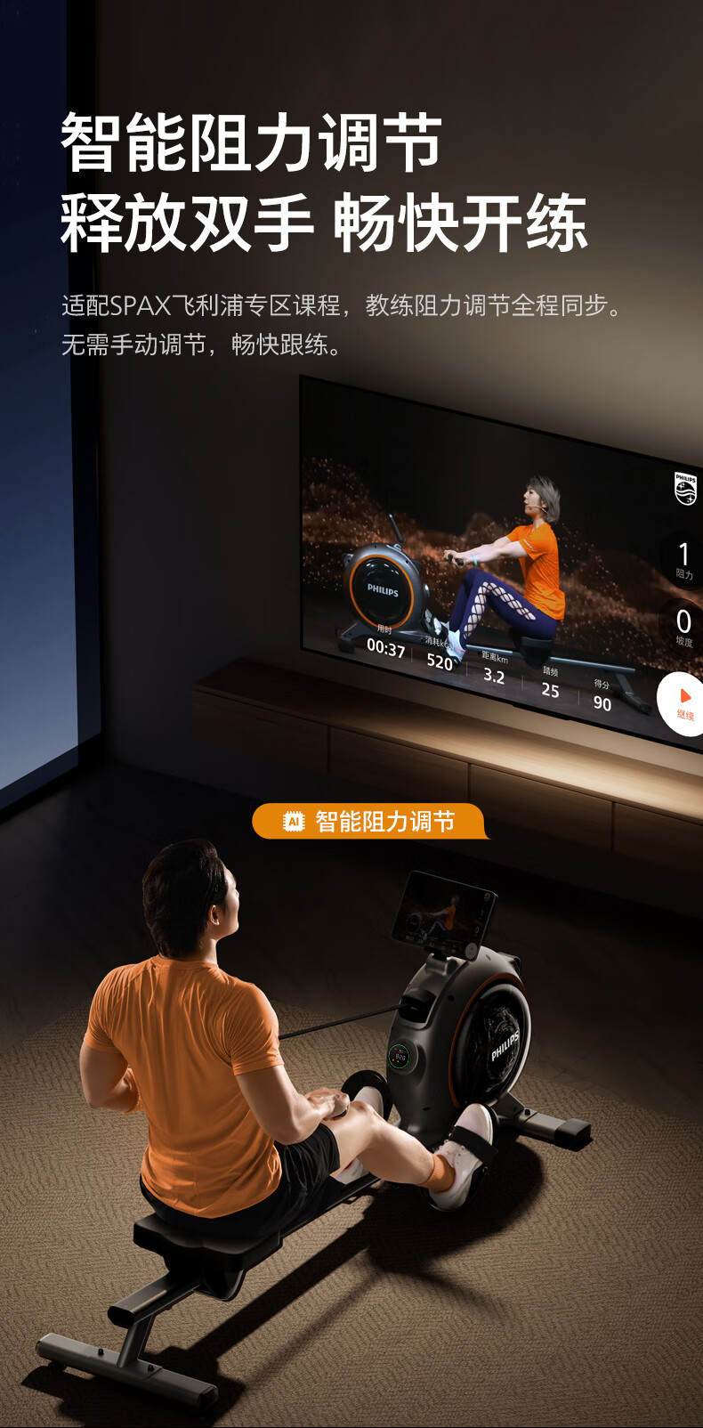 Philips (PHILIPS) rowing machine home smart hydromagnetic dual resistance self-generating rowing machine small silent home fitness equipment gun gray hydromagnetic dual resistance self-generating