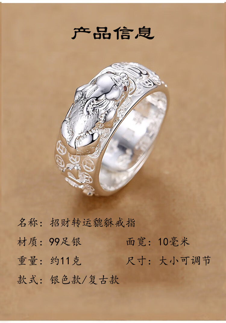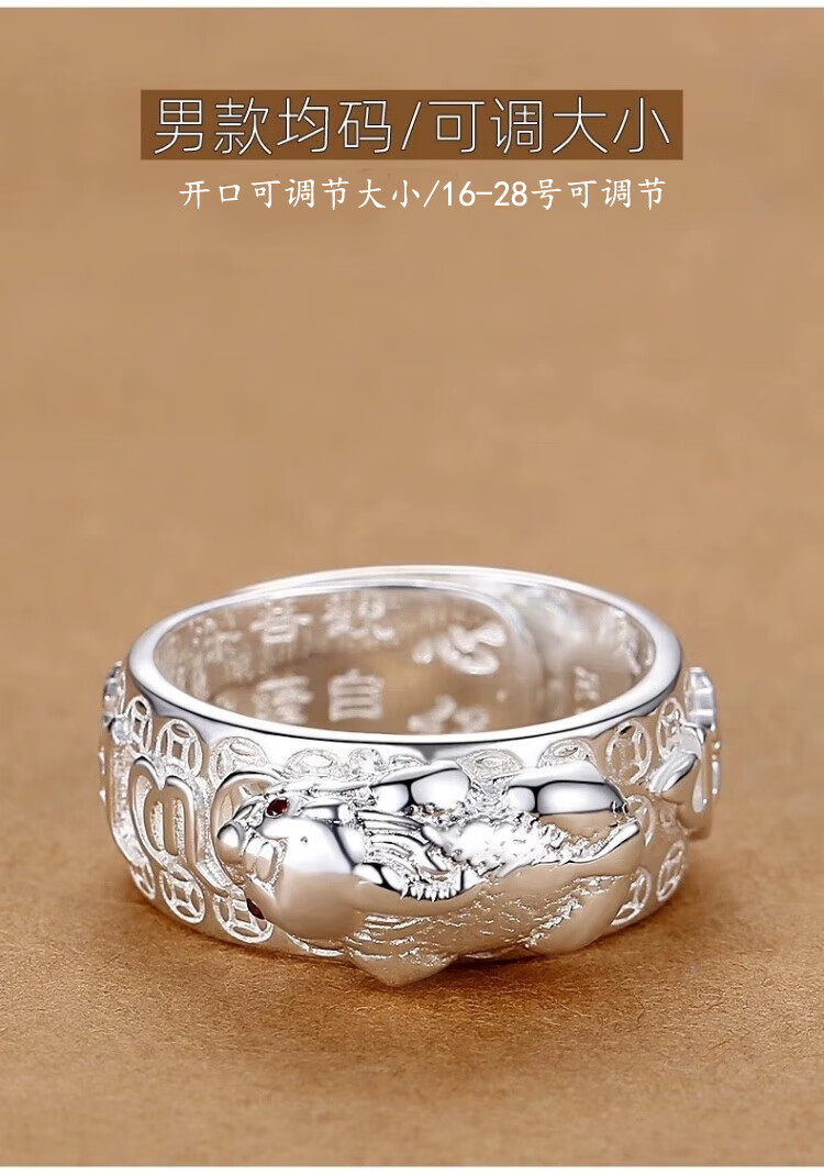 Lao Feng 999 pure silver Pixiu ring for men, domineering and lucky transfer ring, men's ring with adjustable tail ring opening, lucky Pixiu ring silver version, 999 sterling silver, about 11 grams