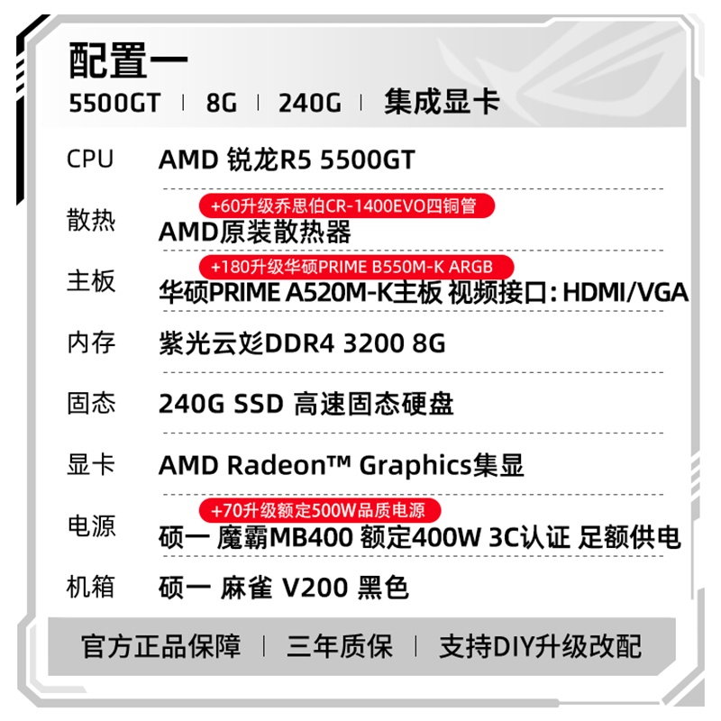 ASUS AMD Ryzen R5 5600GT host assembly computer commercial office home design desktop computer game console DIY assembly machine configuration three R5 5600GT+8G+240G