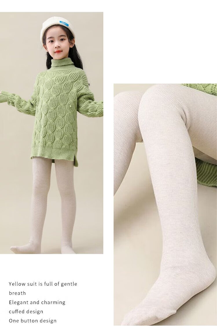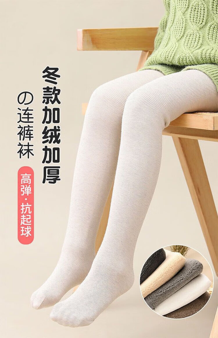 Yajili children's leggings thickened with velvet for autumn and winter, all-in-one velvet thermal pants for winter, medium and large children's pantyhose, oatmeal stockings, straight thickened and velvet, 1 piece L size, height 110-125cm