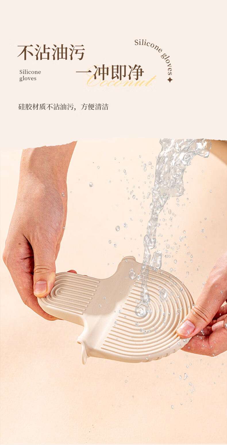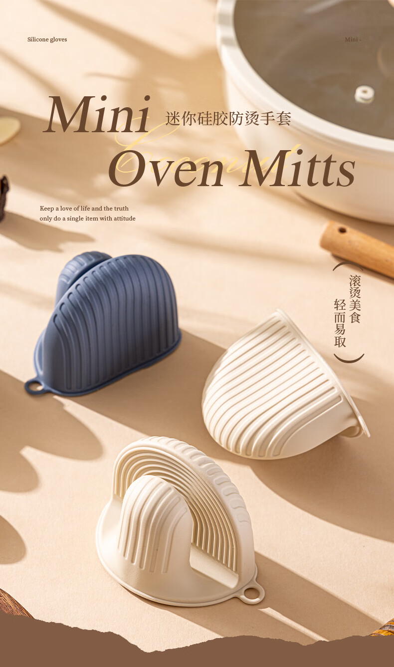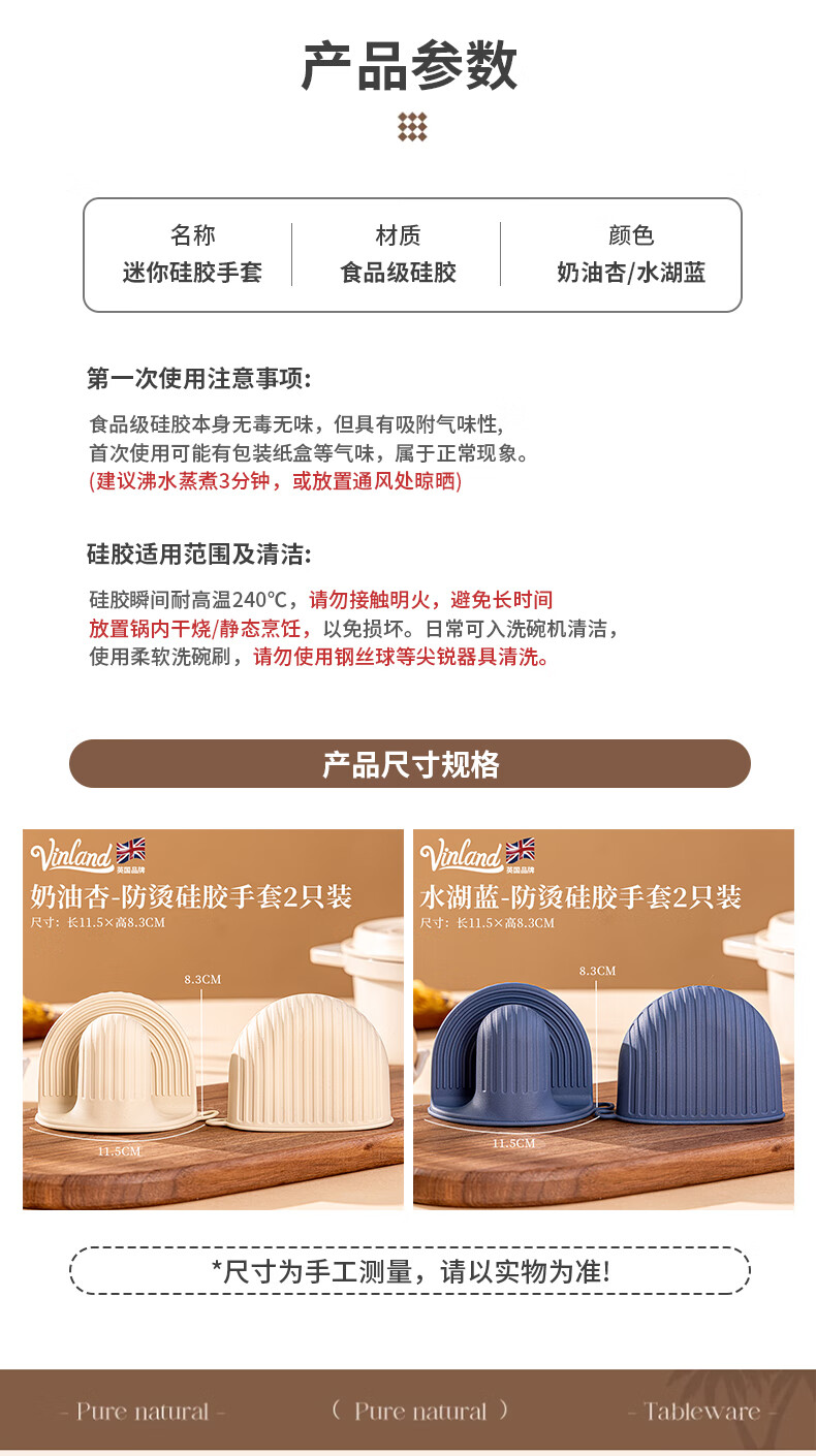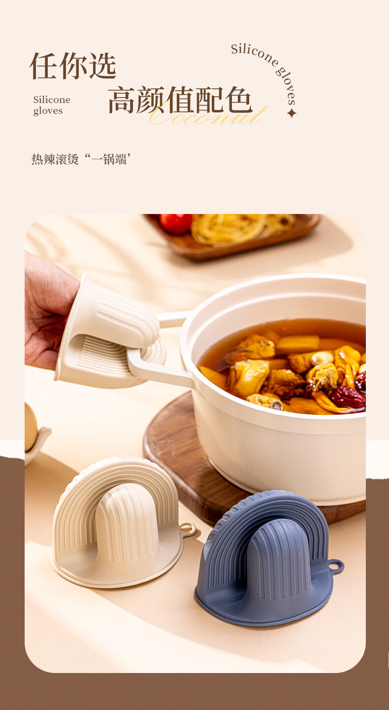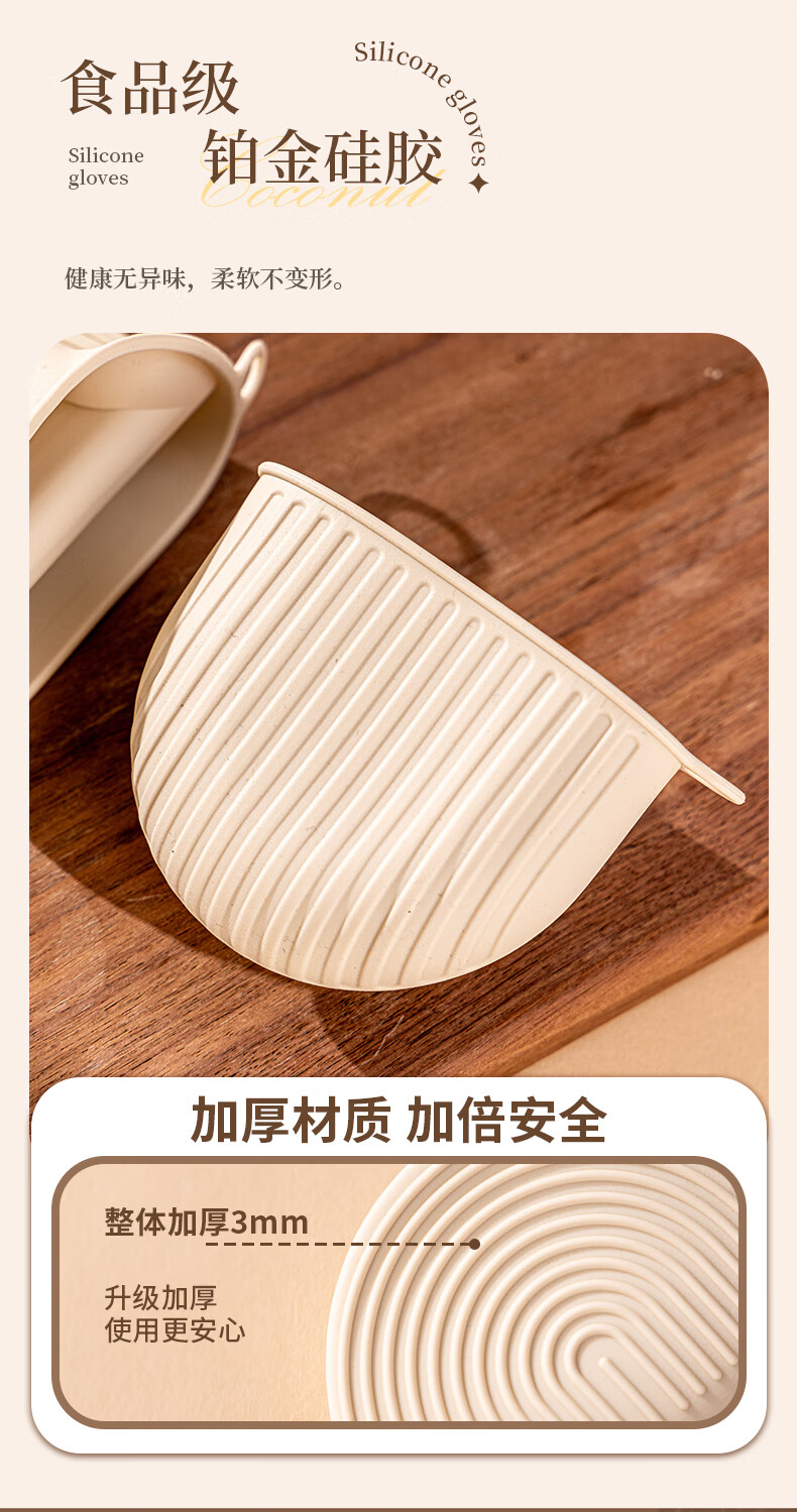 Vinland British anti-scalding gloves, insulated thickened hand clips, high temperature resistant kitchen oven, microwave oven, special finger cots, household casserole, cream apricot-anti-scalding silicone gloves, single