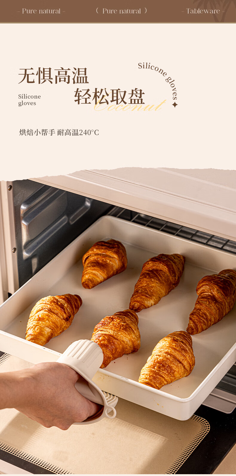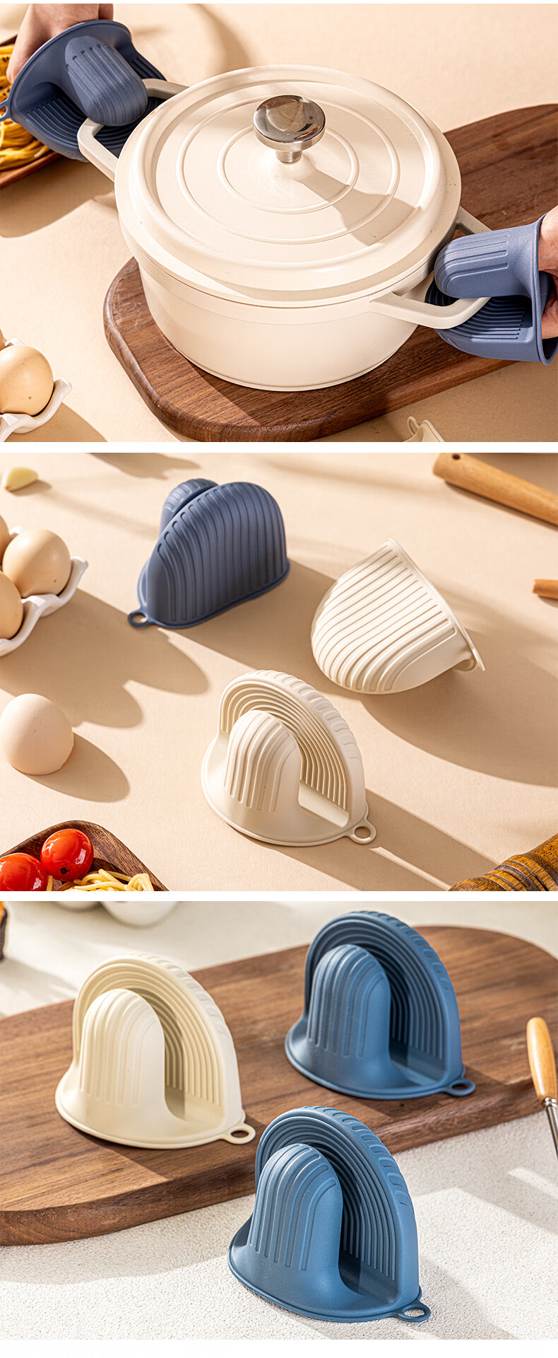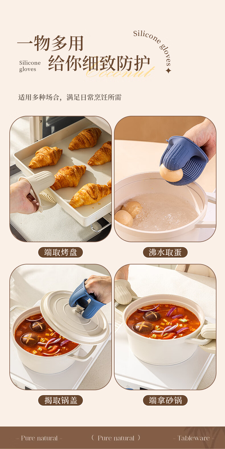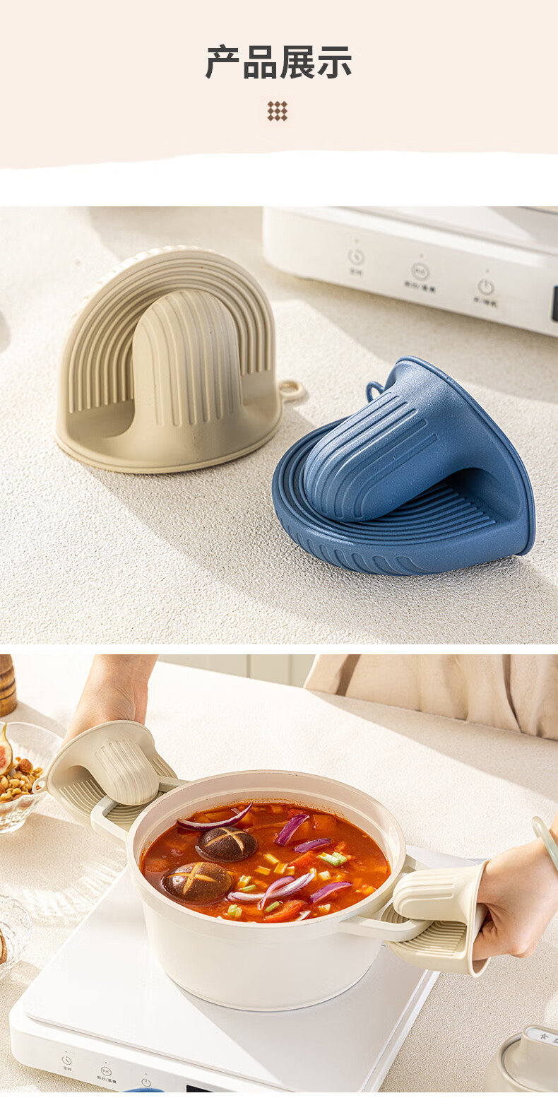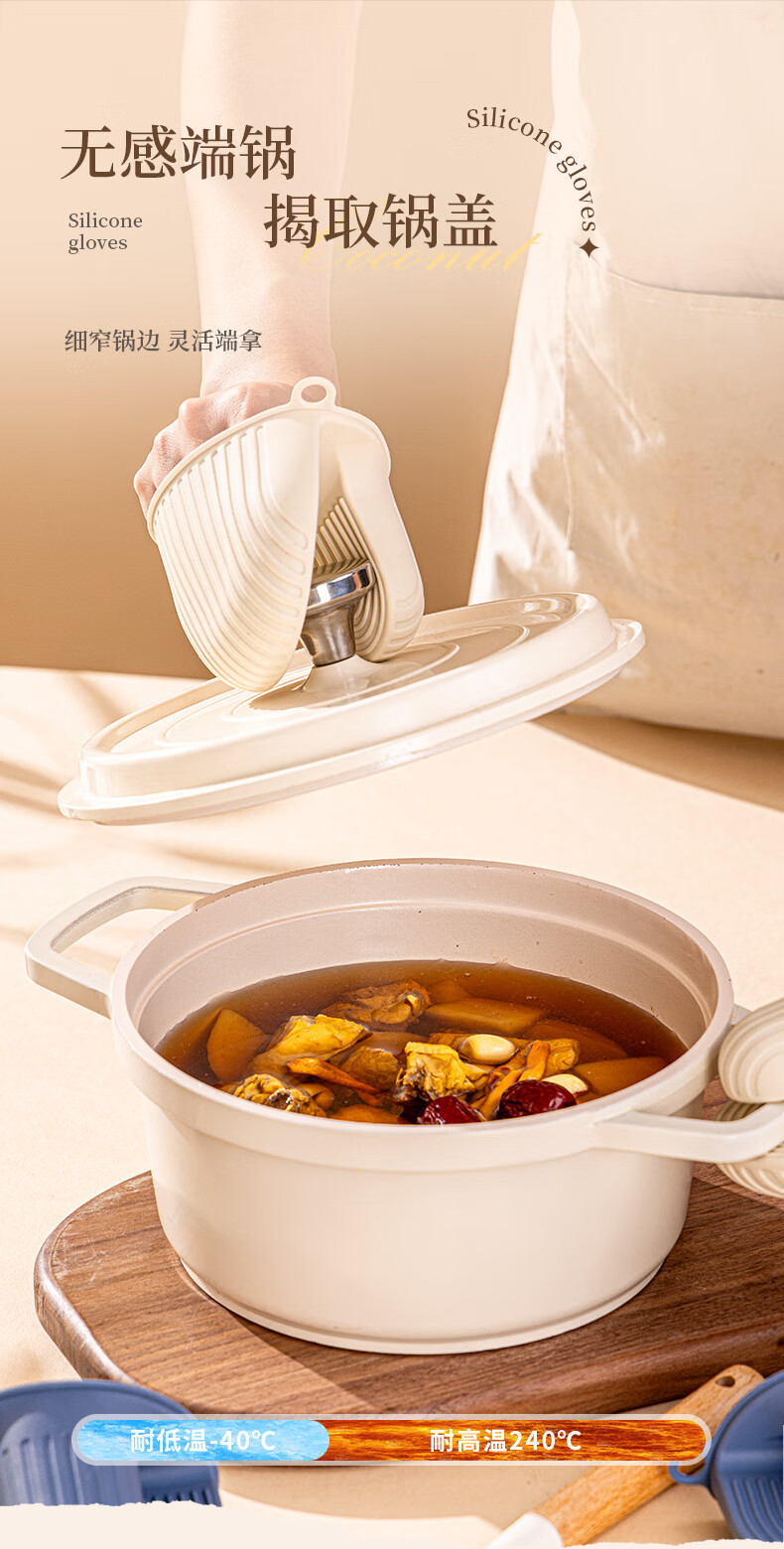 Vinland British anti-scalding gloves, insulated thickened hand clips, high temperature resistant kitchen oven, microwave oven, special finger cots, household casserole, cream apricot-anti-scalding silicone gloves, single