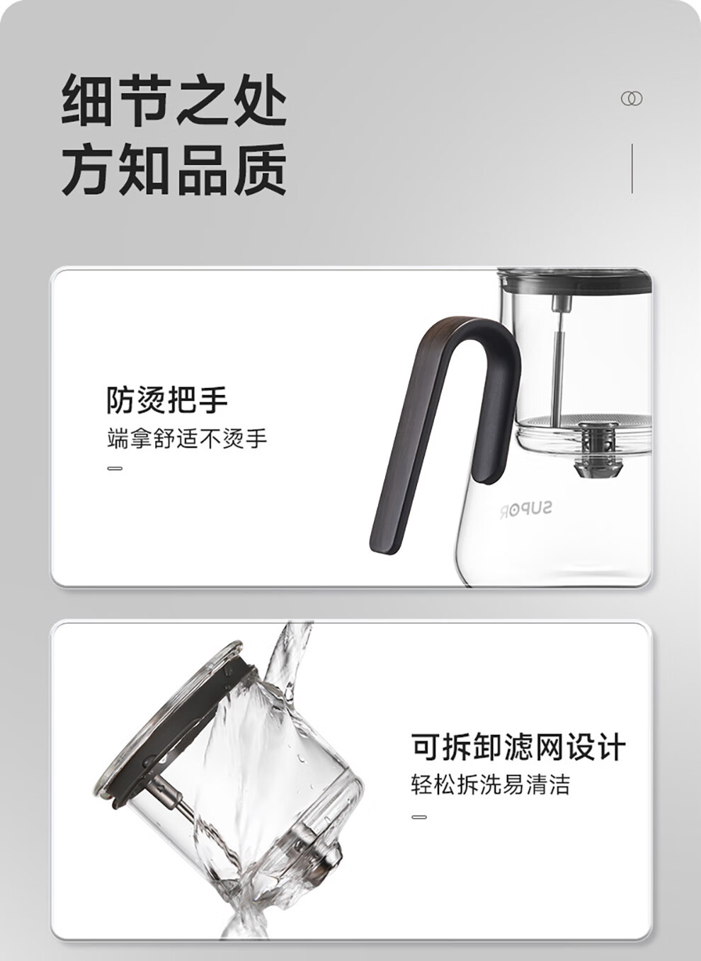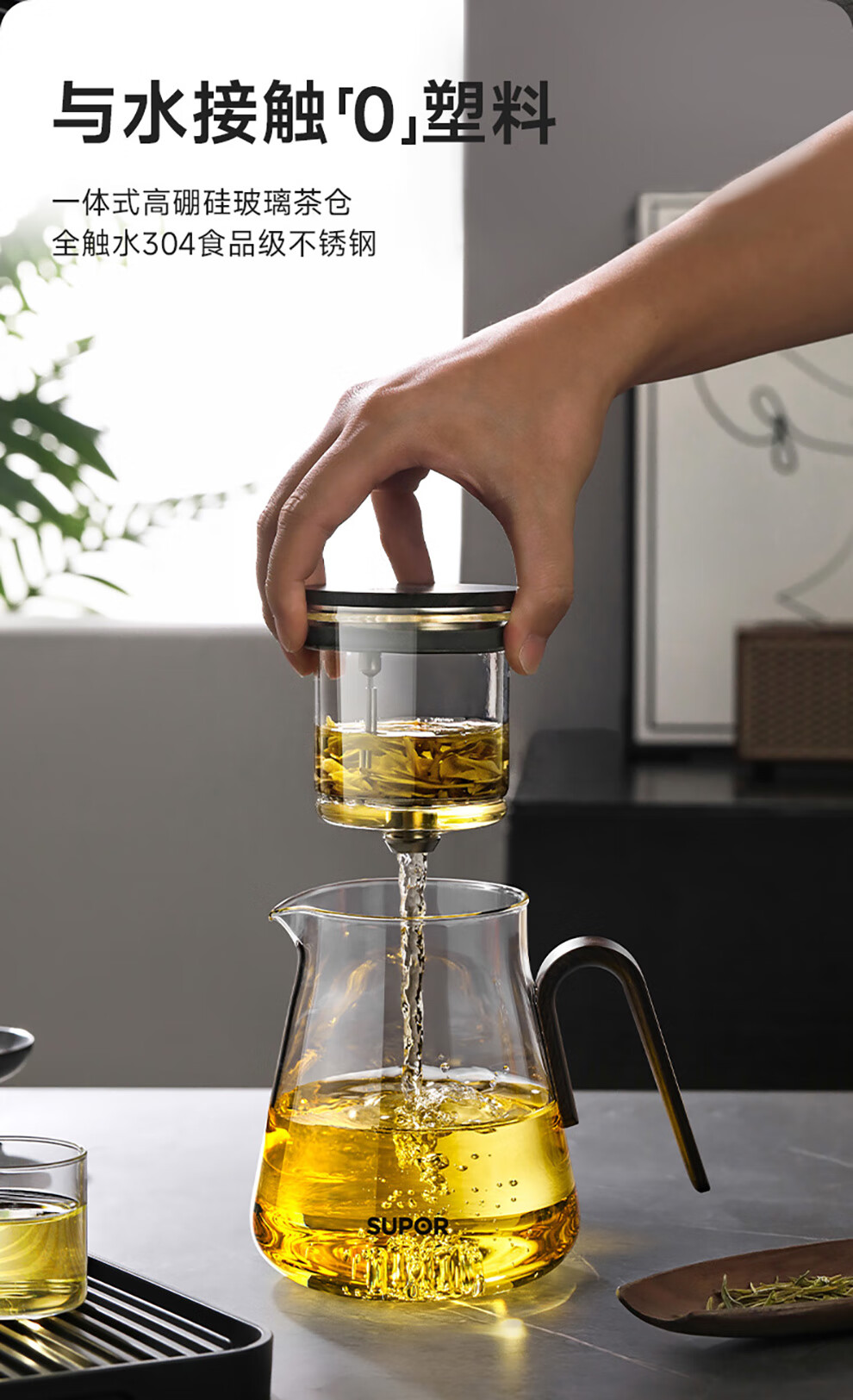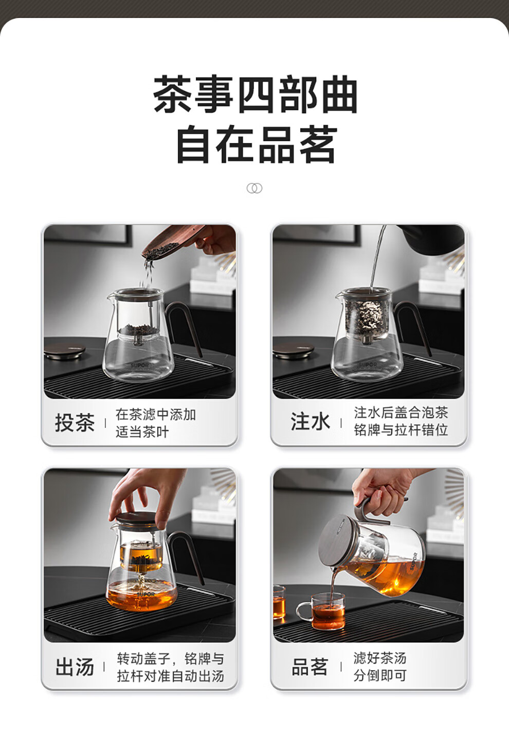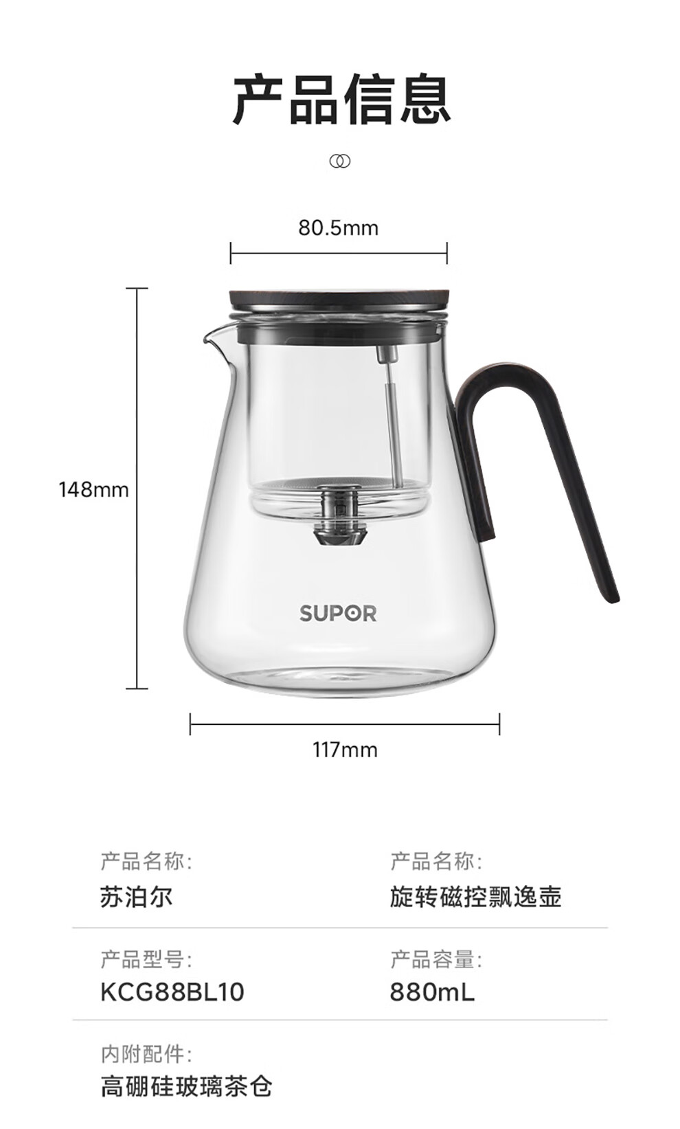 SUPOR teapot 2025 new household high-end glass pot single pot tea water separation magnetic elegant cup tea set single pot 880ml
