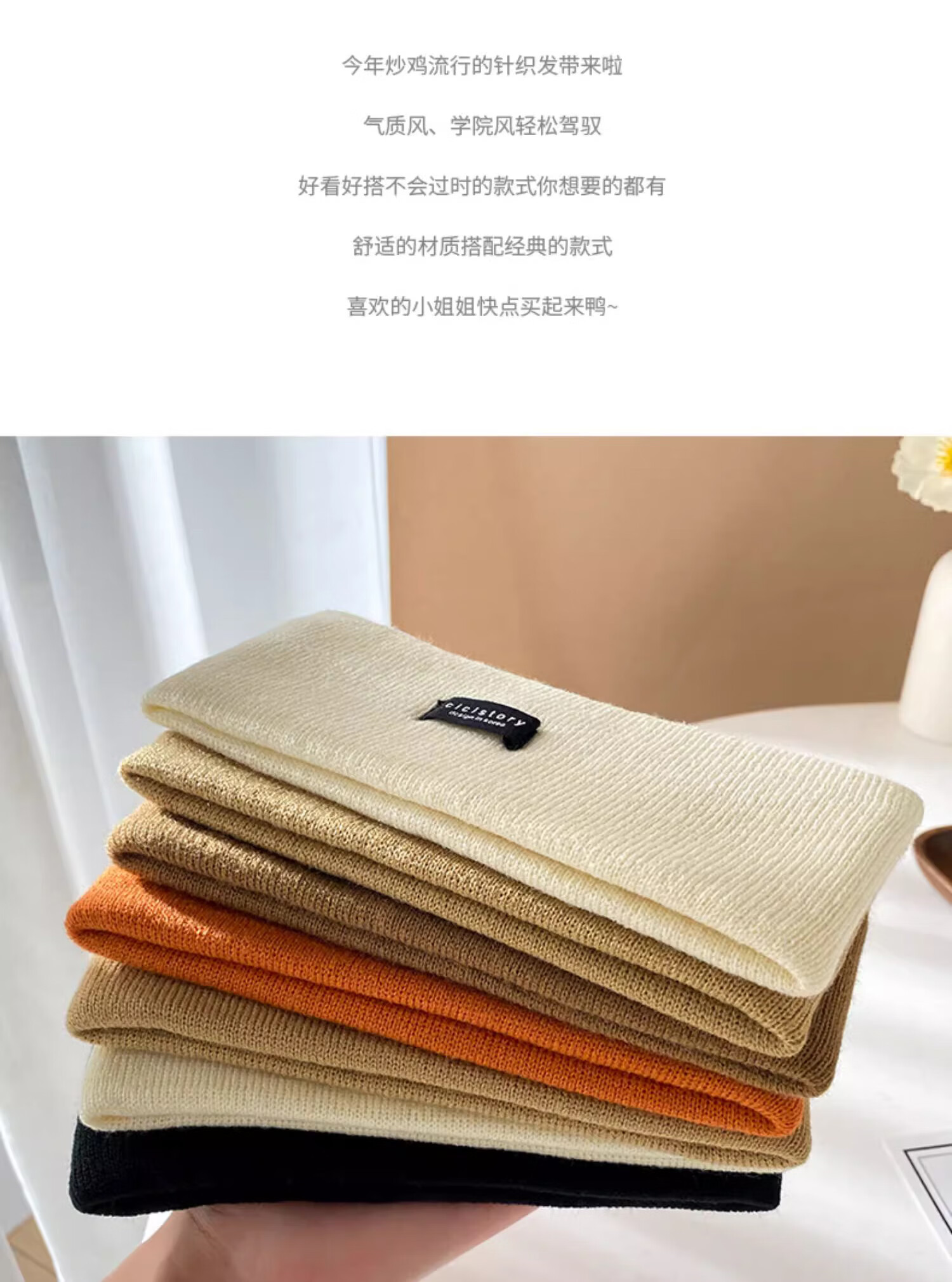 Yinyu Knitted Headband Sports Headband Winter Headband Headgear for Women Going Out Women's Autumn and Winter Forehead Warming Wool Headband 2-piece Set Black + Coffee