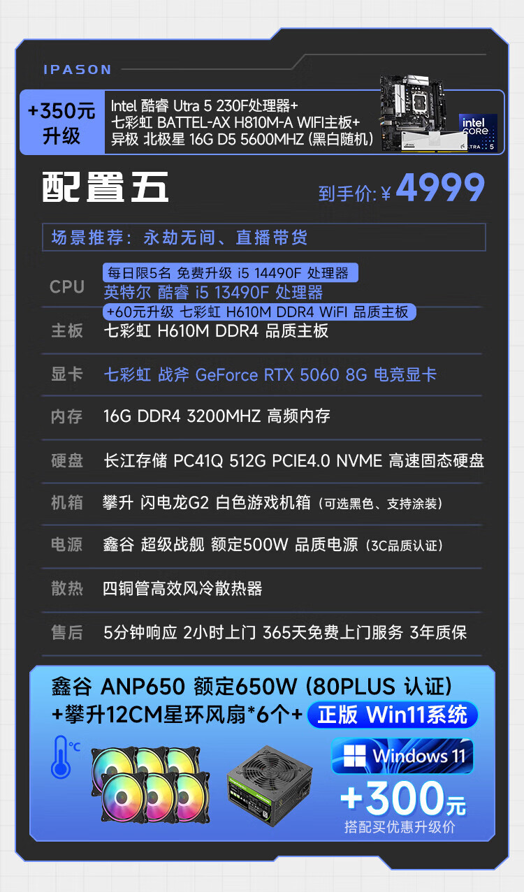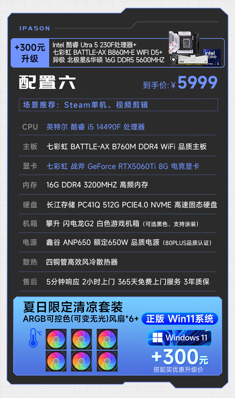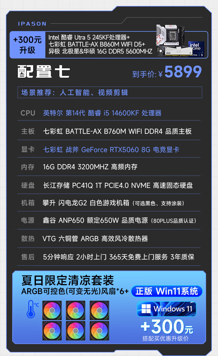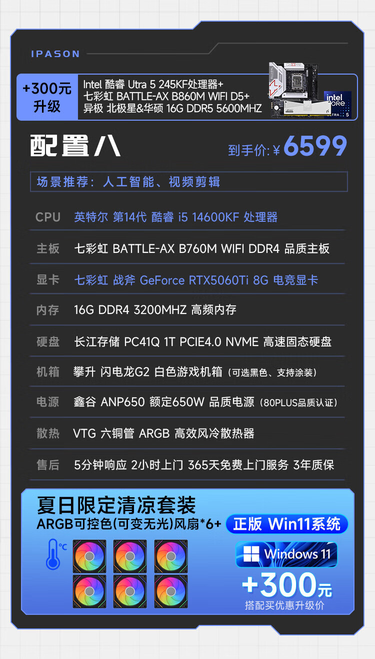 Colorful Climb i5 14490F/245KF/5060Ti Live AI Design Rendering Editing Delta E-Sports Game Computer Host Desktop Full Set DIY Assembly Computer Complete Machine 14490F RTX5060Ti 16G丨Configuration Six