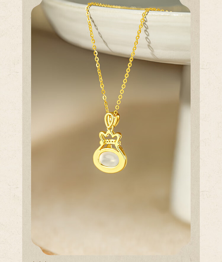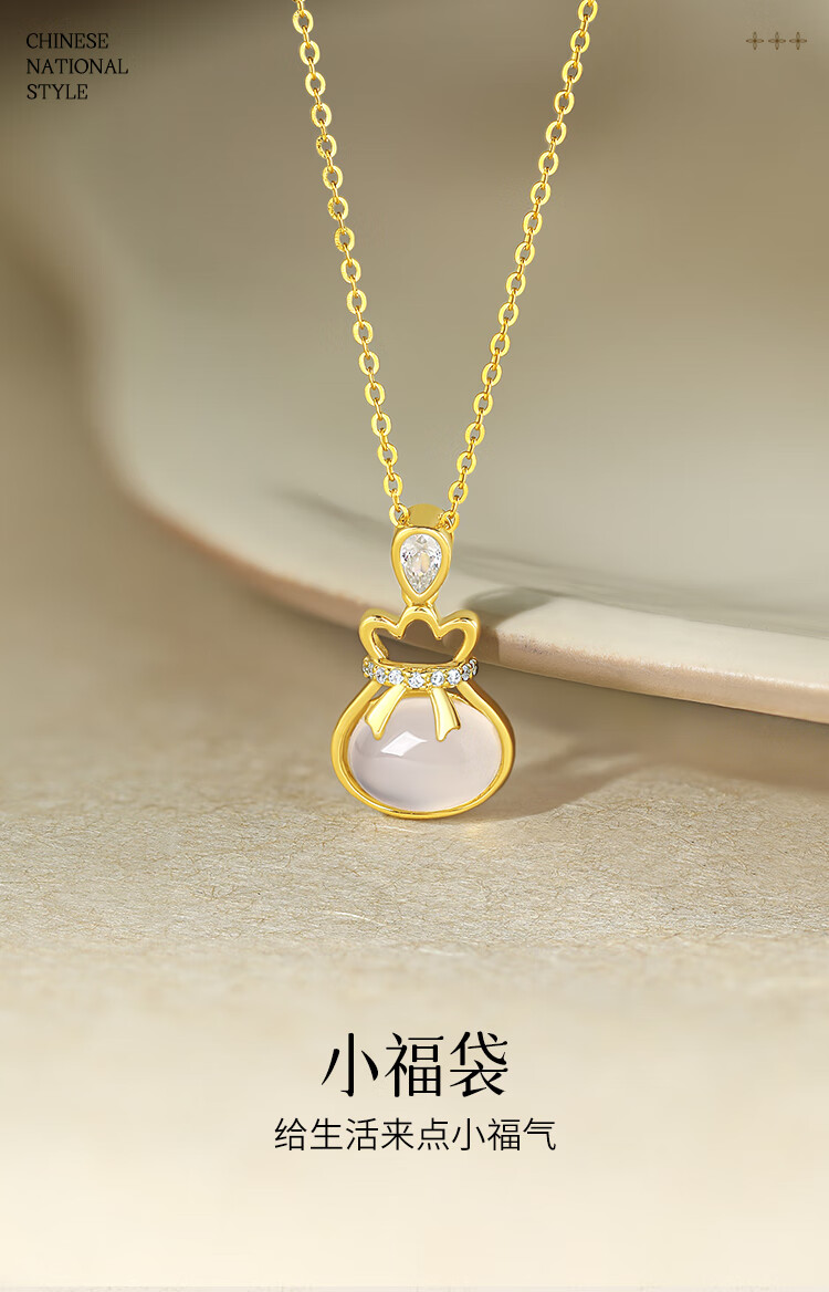 Saturday Fortune (ZLF) S925 silver chalcedony necklace small lucky bag pendant for girlfriend’s birthday gift pendant chain length 40+5cm