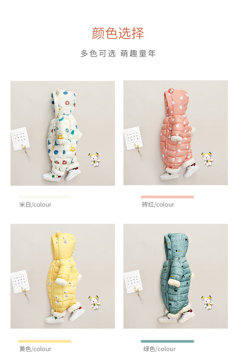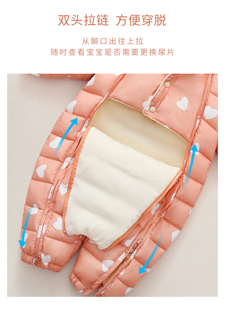 G.duck baby down cotton jumpsuit newborn winter boy crawling clothes children's outdoor hugging clothes winter clothes red star (double zipper plus velvet thickening) 70cm 70 yards (recommended 0-4 months 9-14Jin Jin equals 0.5 kg)