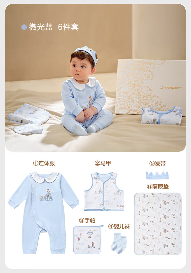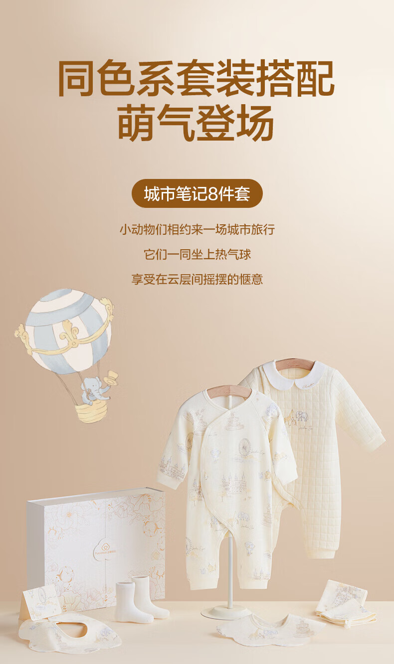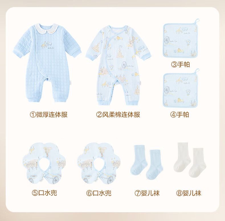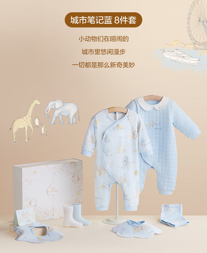 Cotton Era Baby Gift Box Newborn Meeting Gift Baby Full Moon Gift Set Maternity Bag Baby Products 8-piece Set City Notes 66cm Suitable for 3-6 Months