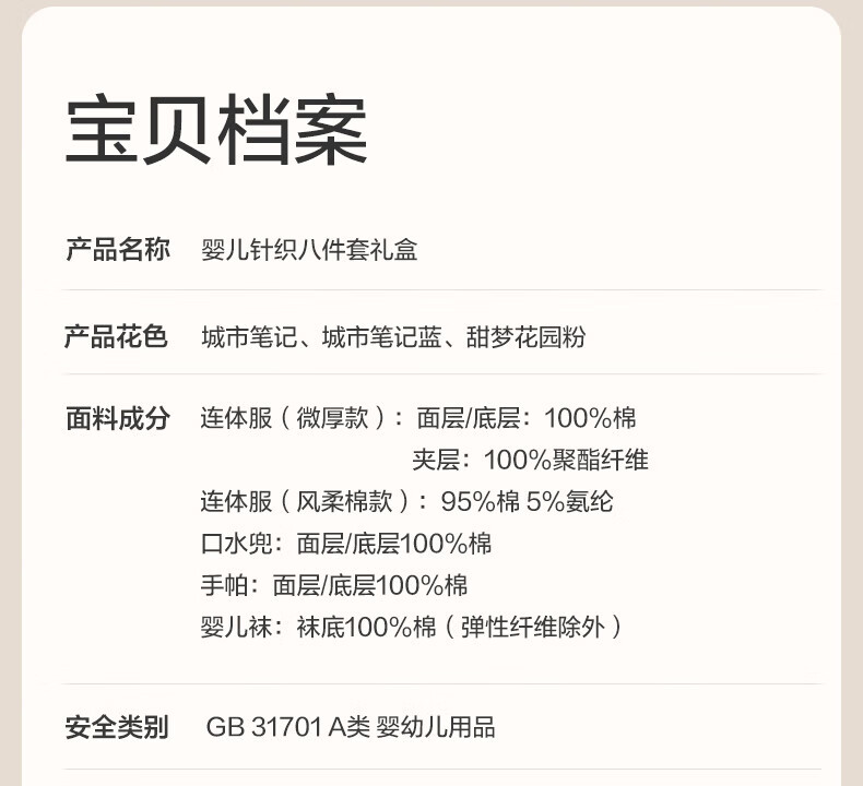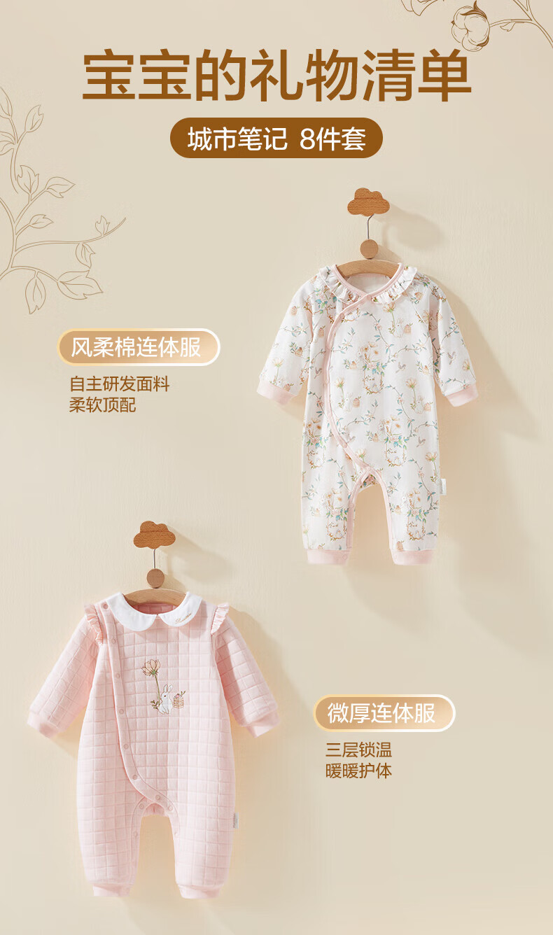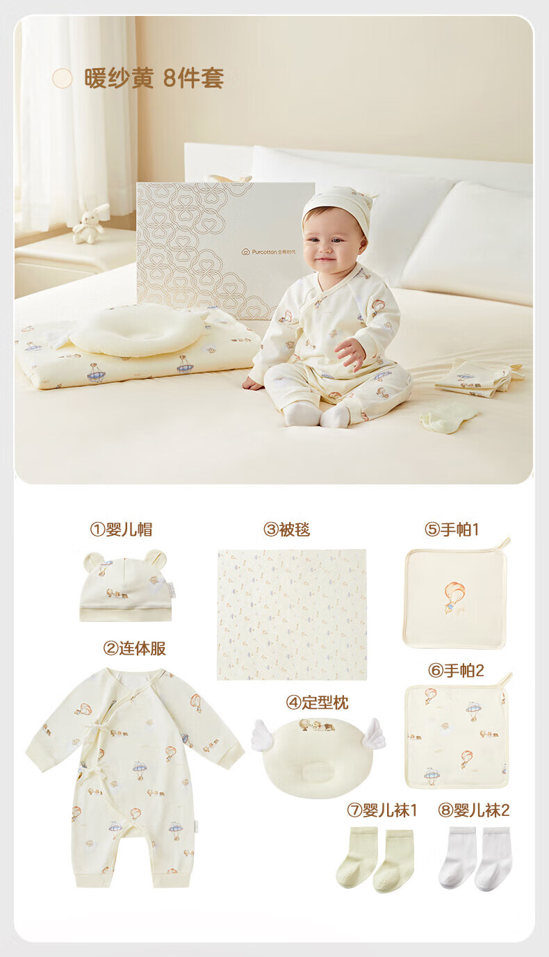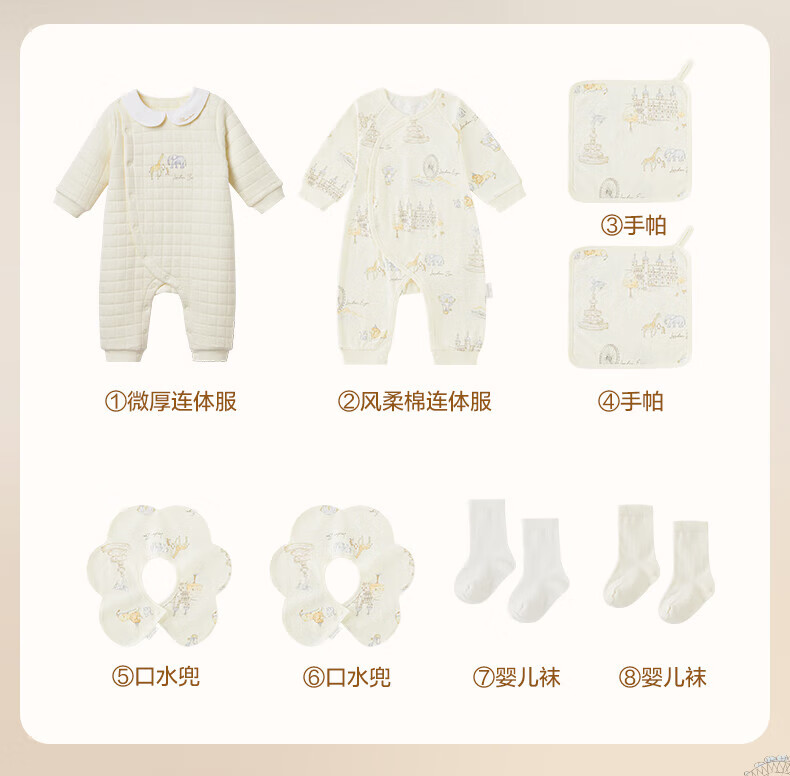 Cotton Era Baby Gift Box Newborn Meeting Gift Baby Full Moon Gift Set Maternity Bag Baby Products 8-piece Set City Notes 66cm Suitable for 3-6 Months