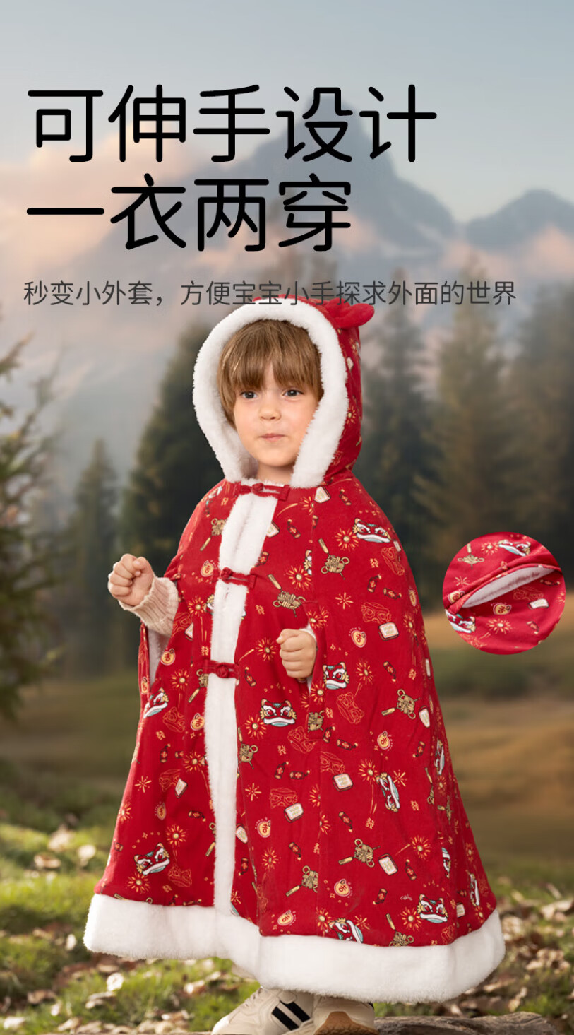 European Pregnancy Baby Cloak Cloak Autumn and Winter Boys Going Out Windproof Cape Girls Windproof Children's Warm Jacket Longteng Yuyue One Size Suitable for 0-6 Years Old One Size