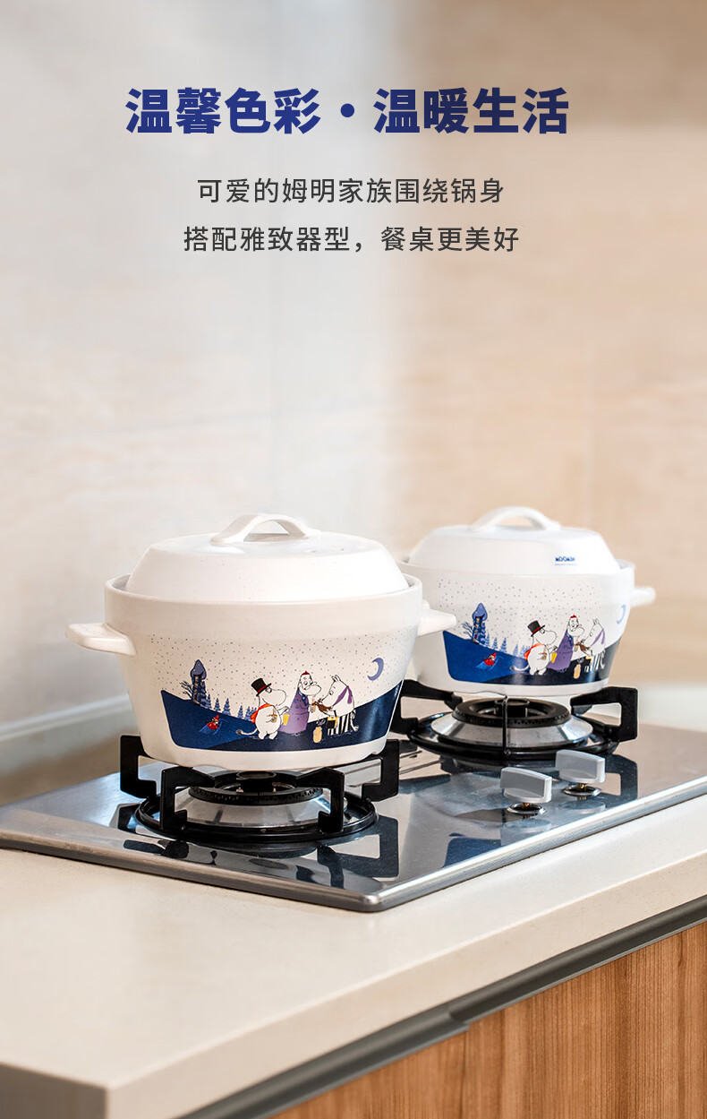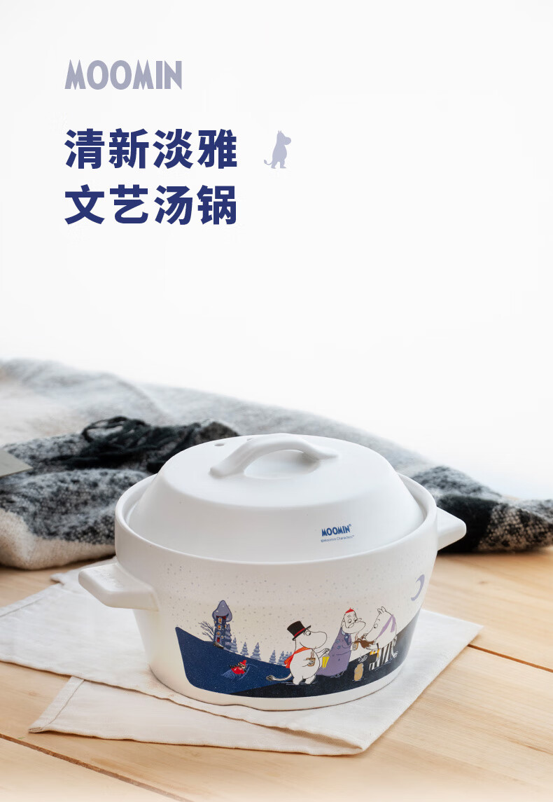 Moomin soup pot, retro medical stone particle ceramic stew casserole, large capacity, resistant to sudden cooling and sudden heating, for cooking soup and stew, dark sky blue 4.3L, resistant to sudden cooling and sudden heating, made in China