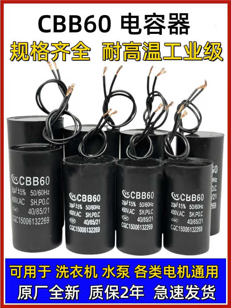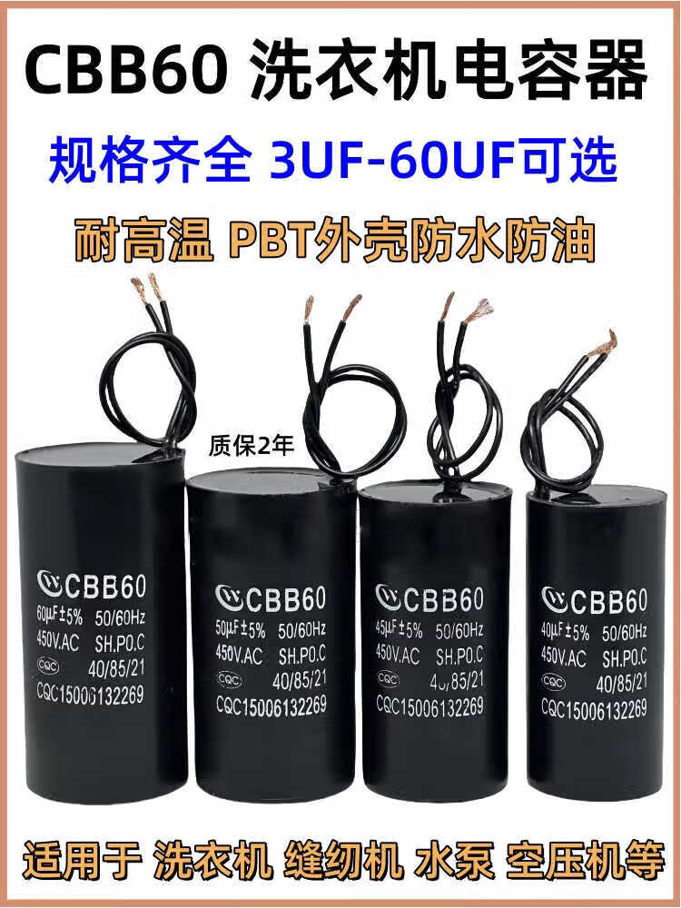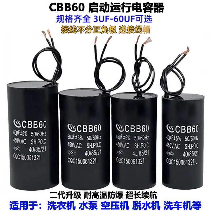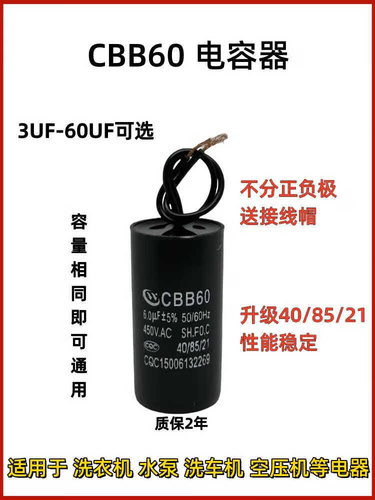 CBB60 water pump pump start capacitor wash/30UF450V clothes machine start capacitor car wash machine universal 6UF comes with connection cap second generation waterproof, oil proof, explosion proof and high temperature resistant delivery CBB60
