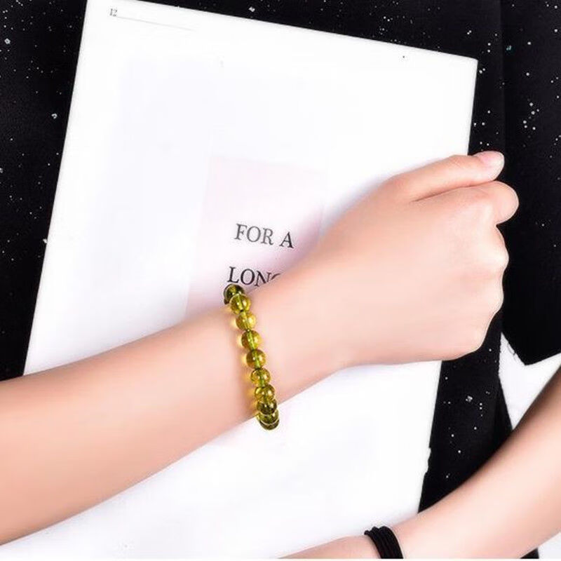 Ting White Peridot Bracelet Natural Green Crystal Bracelet Missing Wood Repair Wood Wooden Jewelry Couple Men's and Women's Beaded Light Luxury 6mm Olive Green Natural Crystal Stone