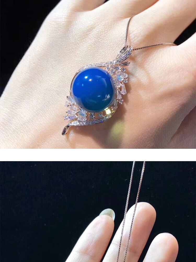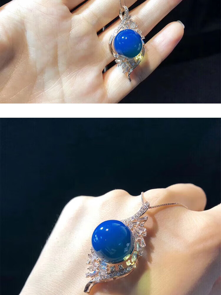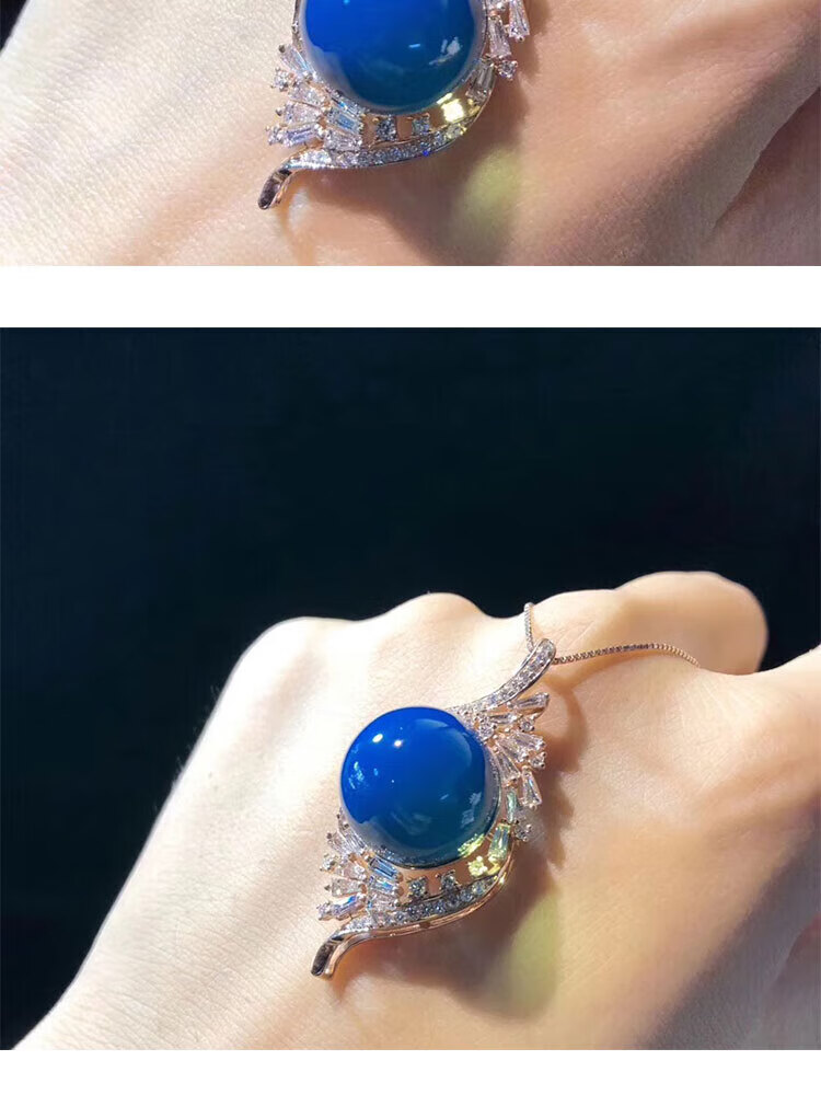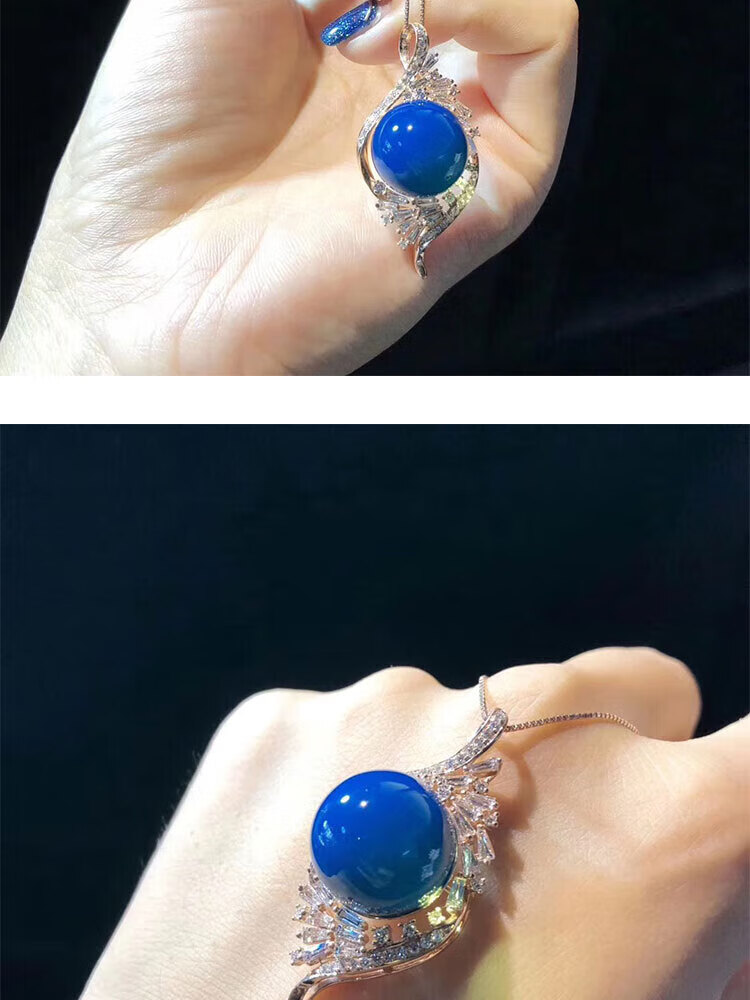 Ting white blue amber pendant Dominican S925 silver plated rose gold amber beeswax sweater chain water purified high blue necklace for women
