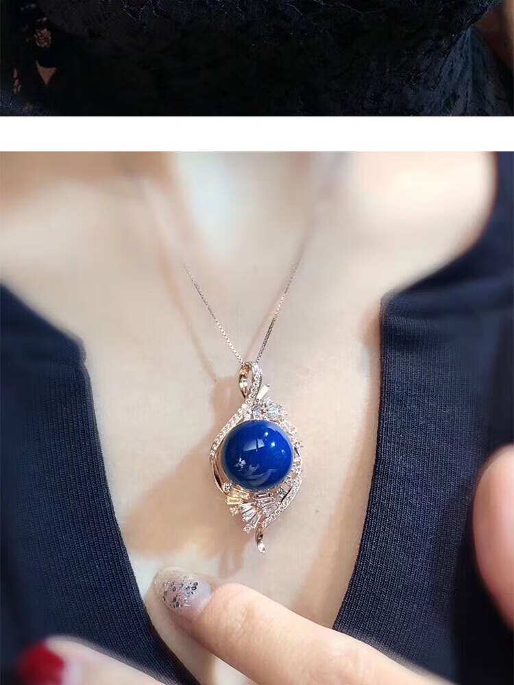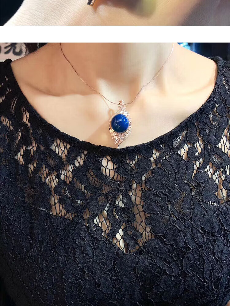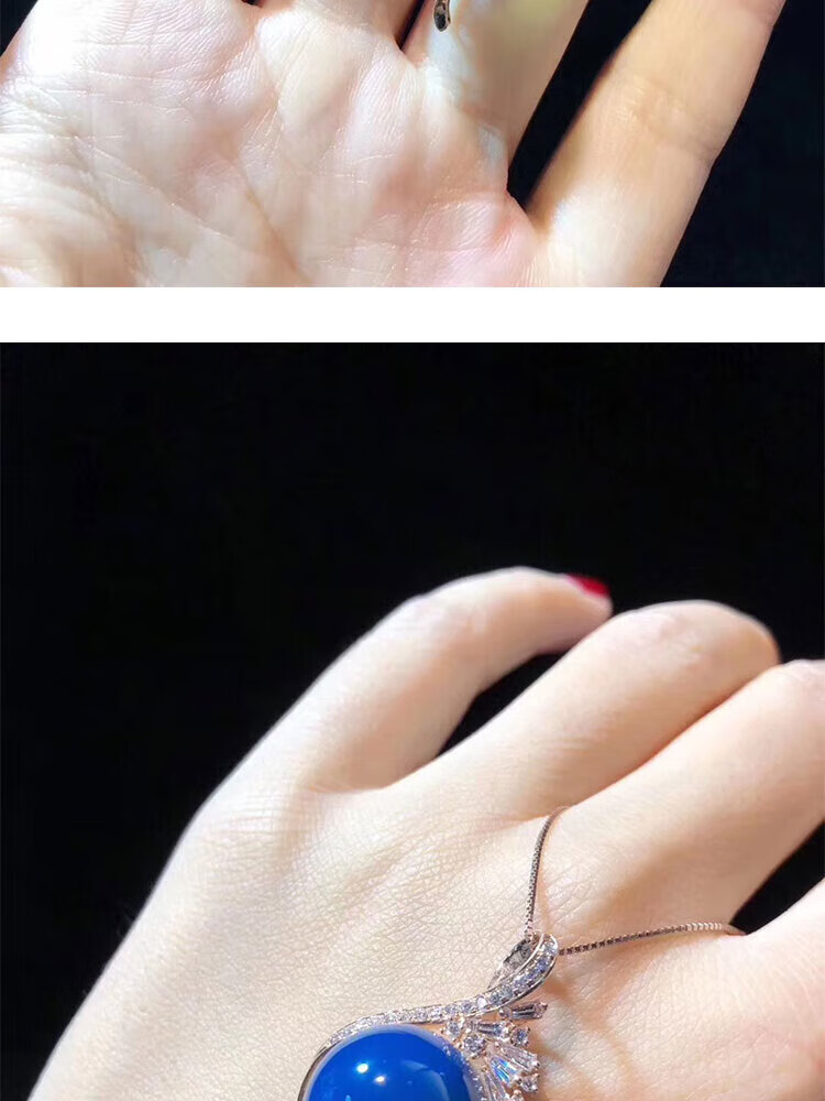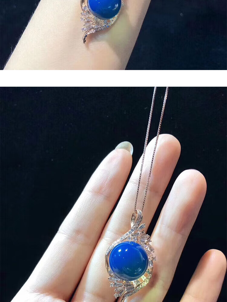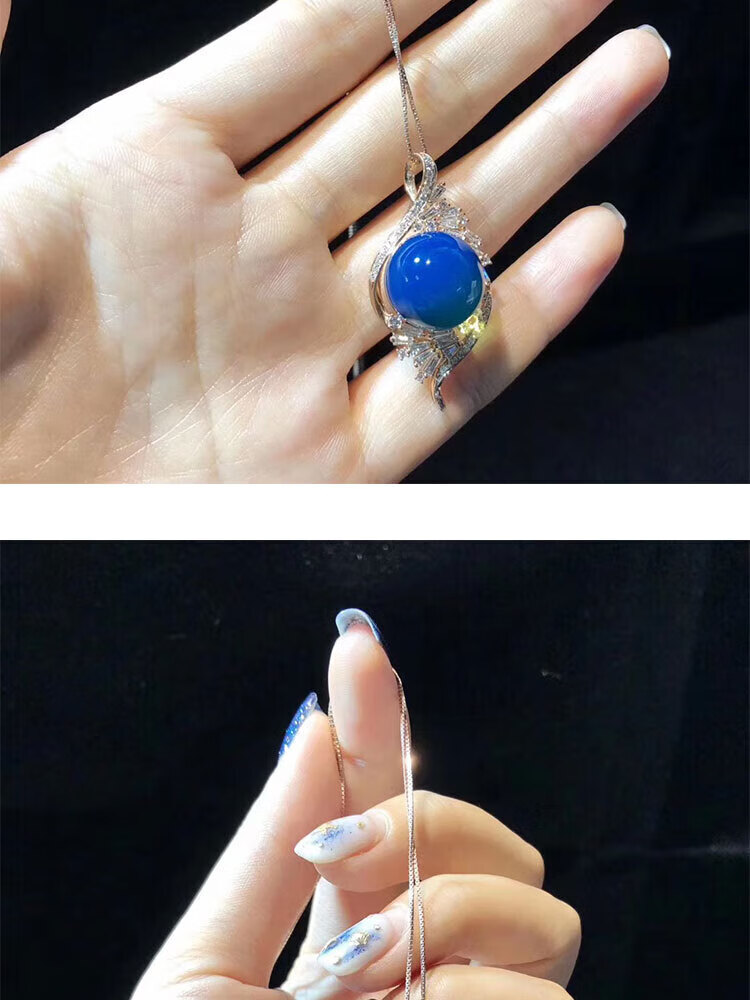 Ting white blue amber pendant Dominican S925 silver plated rose gold amber beeswax sweater chain water purified high blue necklace for women