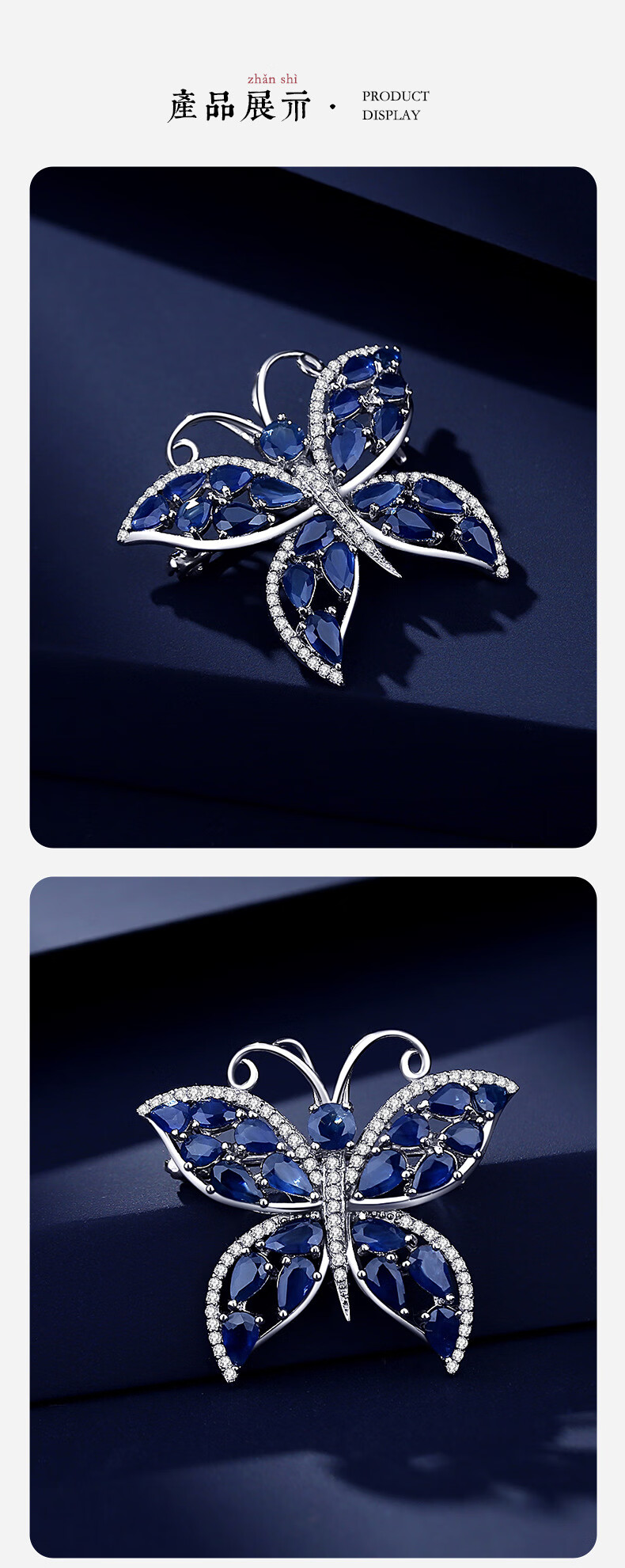 France Kou brooch women's sapphire butterfly light luxury temperament niche high-end corsage brooch accessories birthday gift for girlfriend Sapphire butterfly SF air freight, engraved greeting card