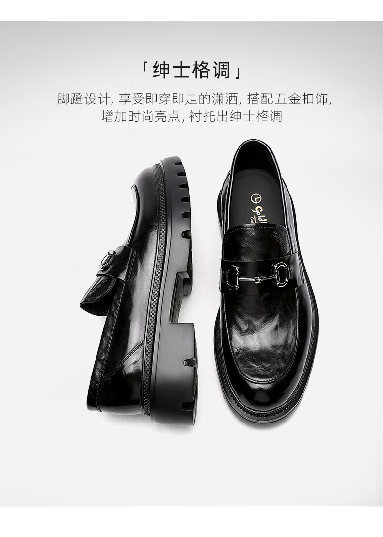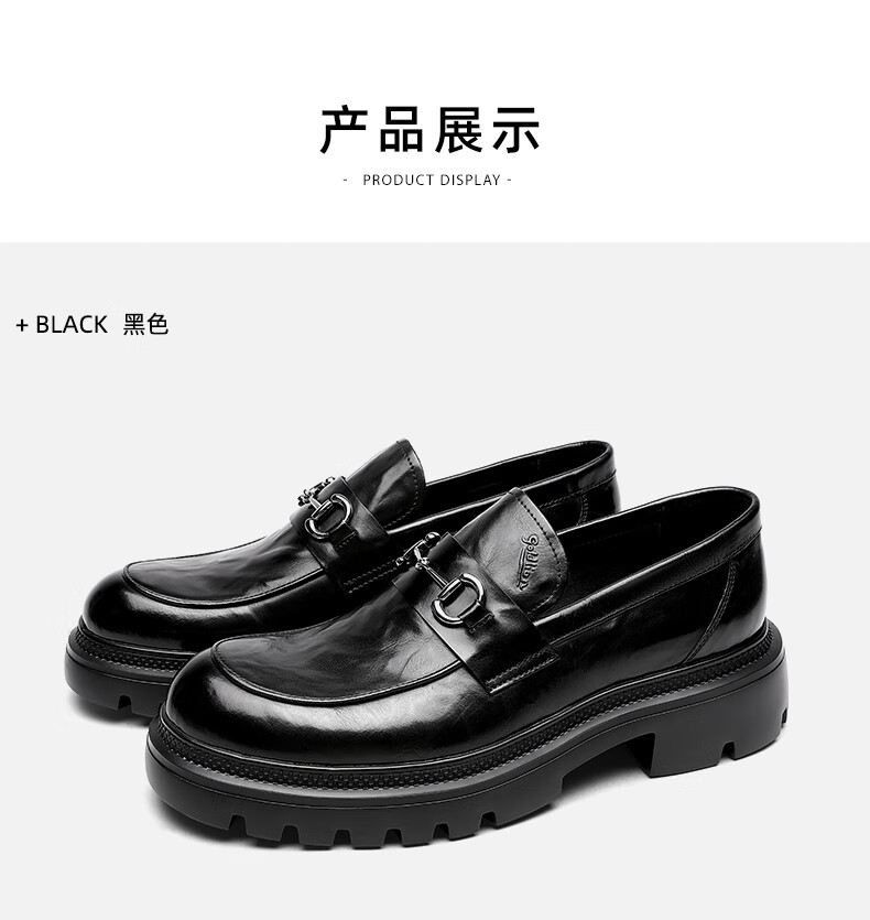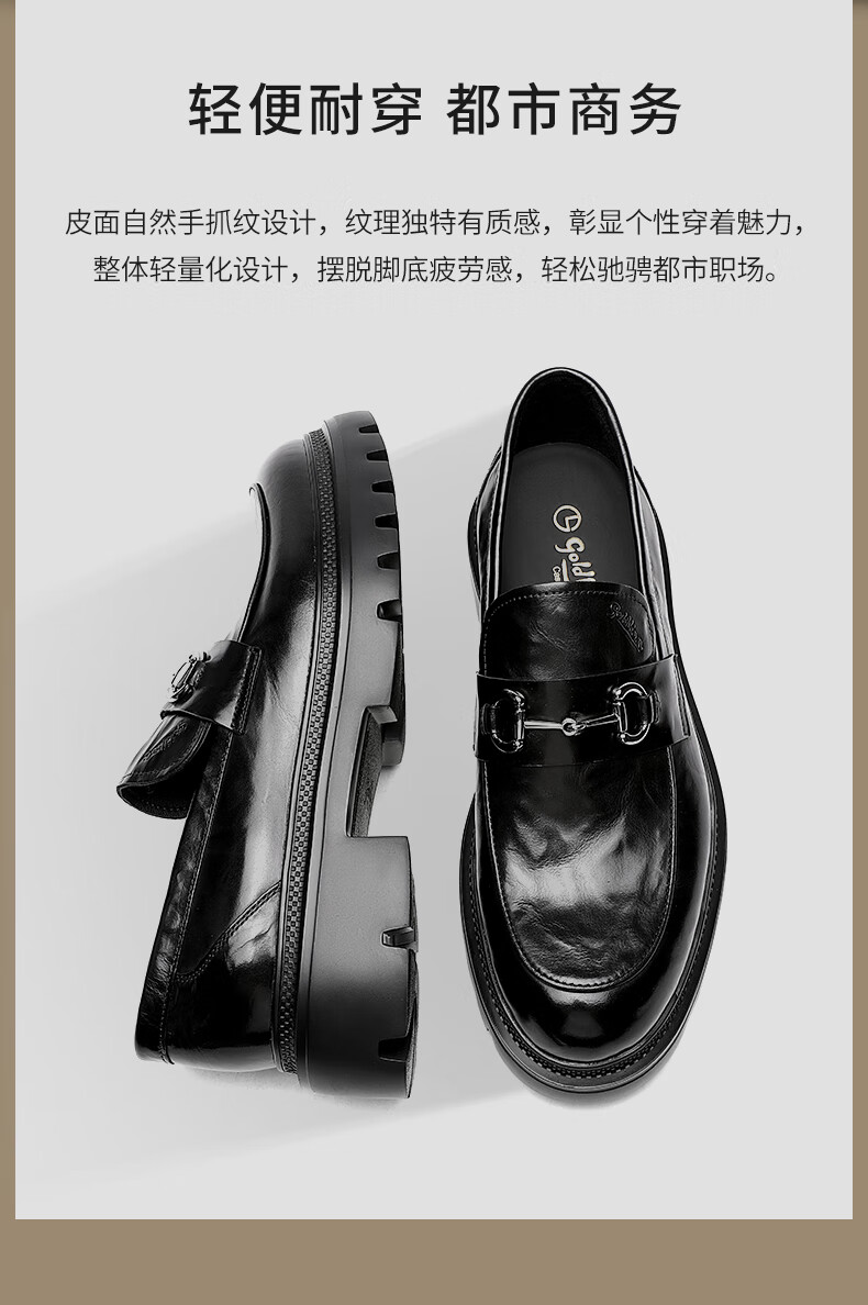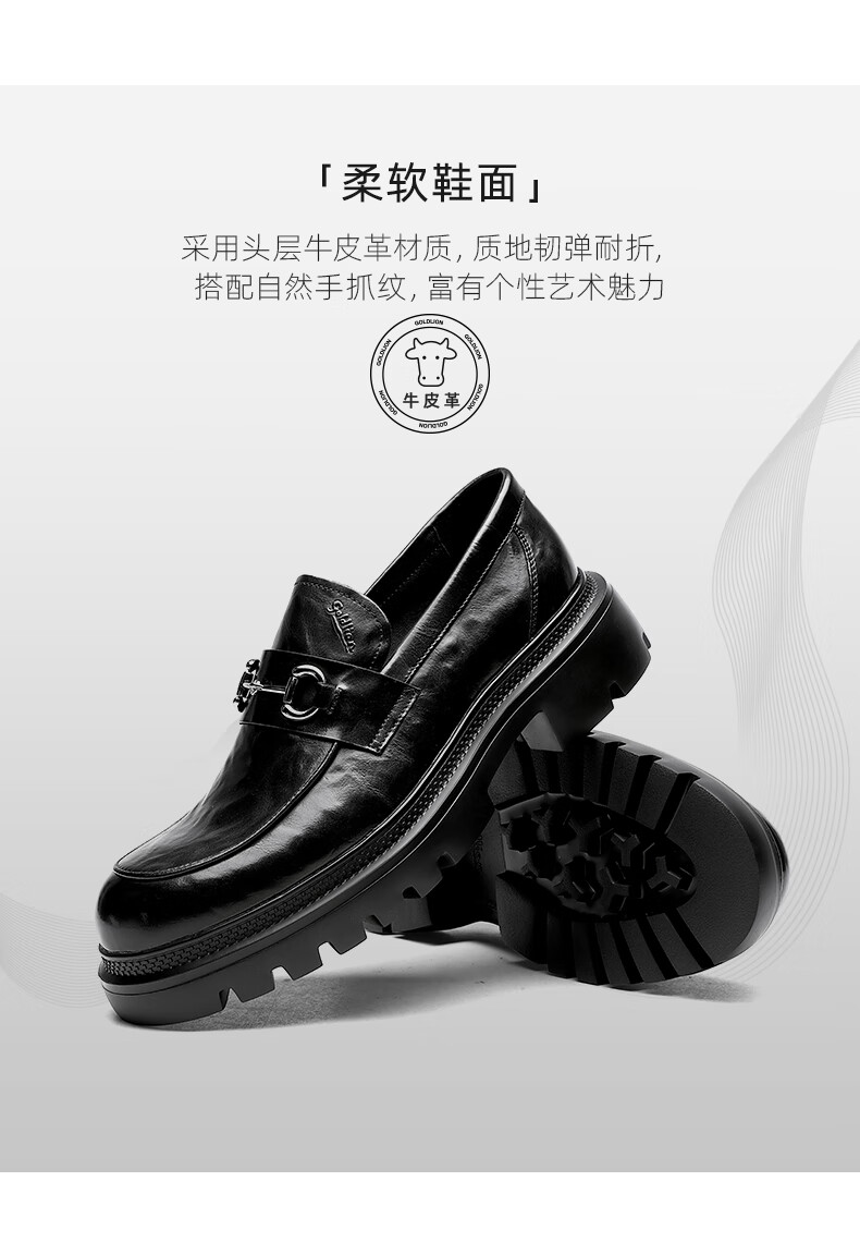 Goldlion Men's Shoes 2025 Autumn Business Casual Shoes Scratched Large Toe Wide Leather Shoes Men's Thick Sole Heightening Formal Shoes Genuine Leather Black G580440338AAA 42
