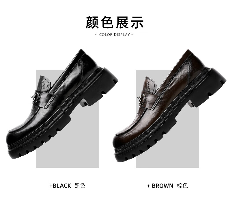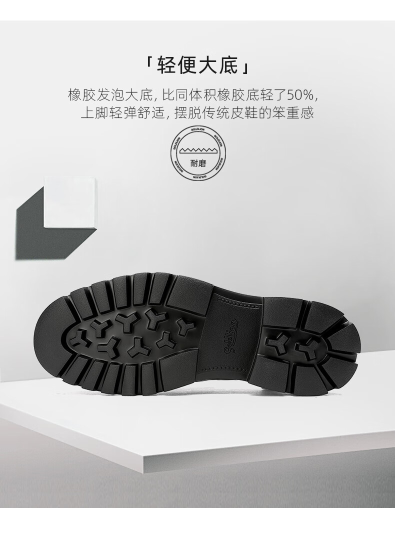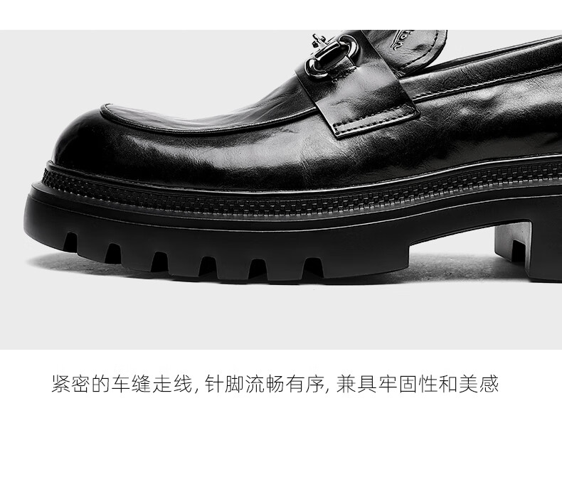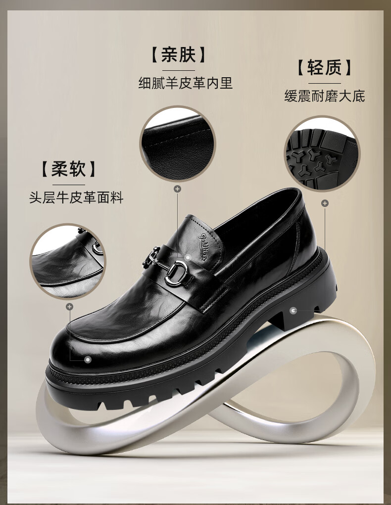 Goldlion Men's Shoes 2025 Autumn Business Casual Shoes Scratched Large Toe Wide Leather Shoes Men's Thick Sole Heightening Formal Shoes Genuine Leather Black G580440338AAA 42