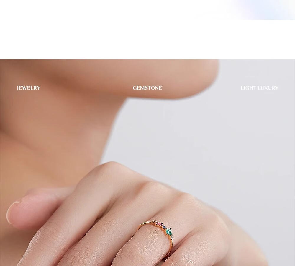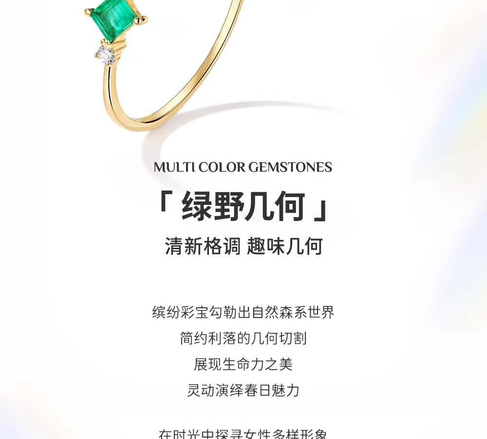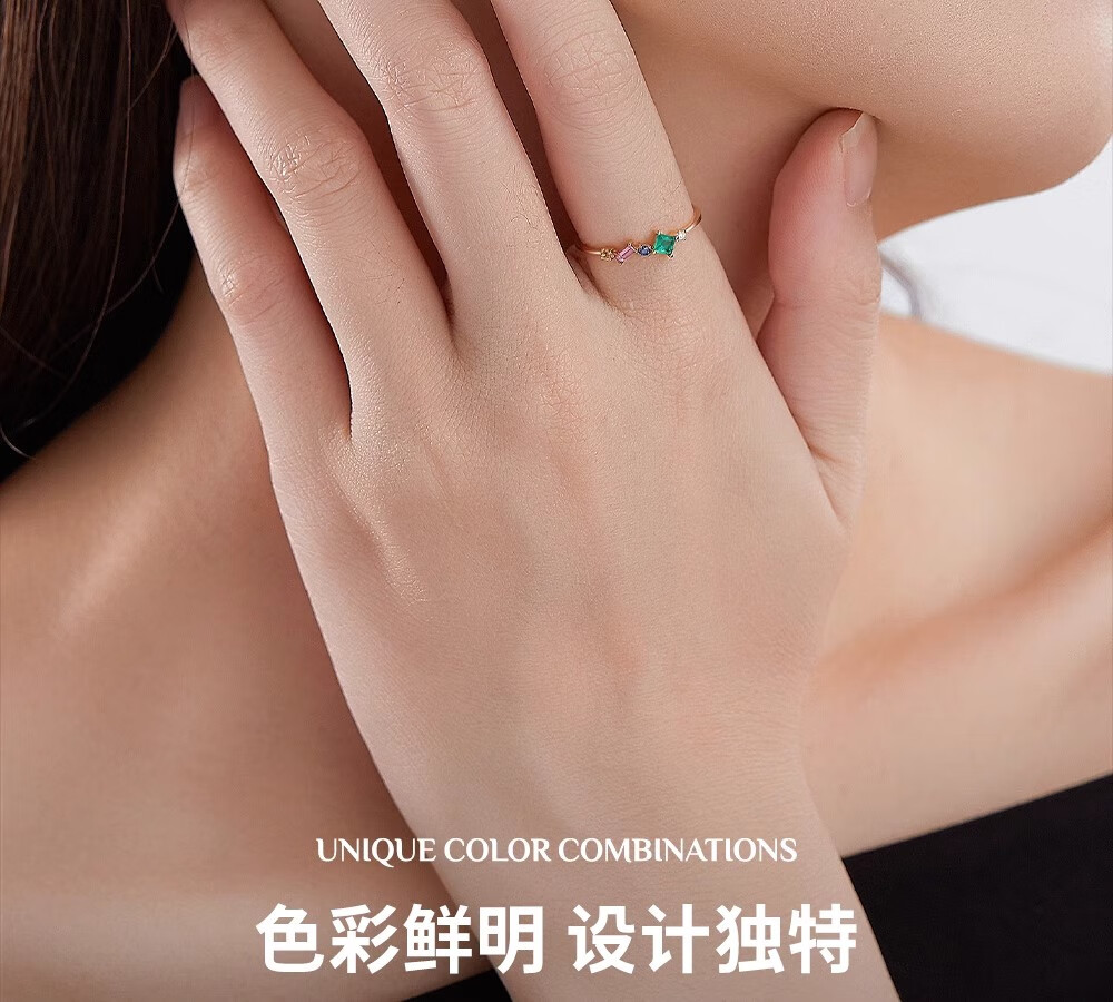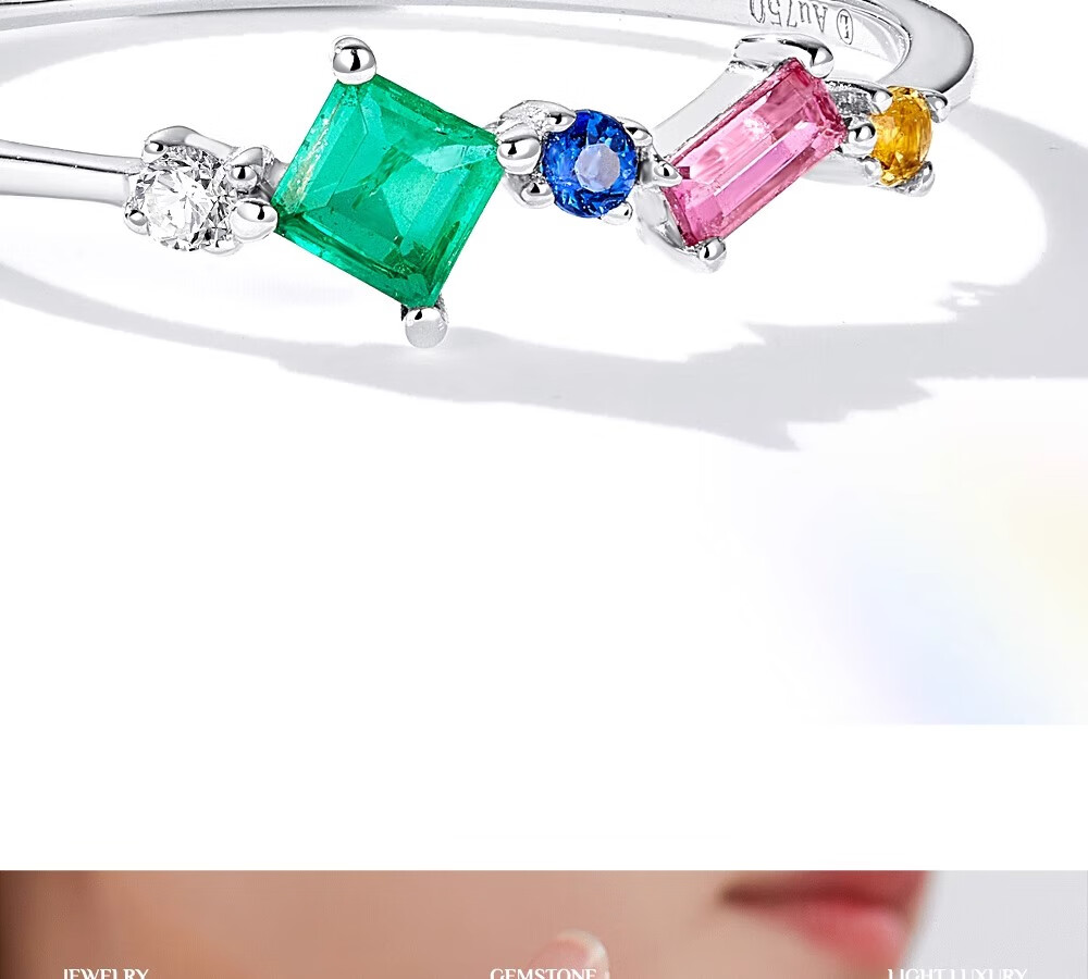 COASZE emerald 18K gold row ring, pink tourmaline inlaid with colorful treasures, thin ring, Valentine's Day birthday gift for girlfriend and wife, 18K gold emerald ring