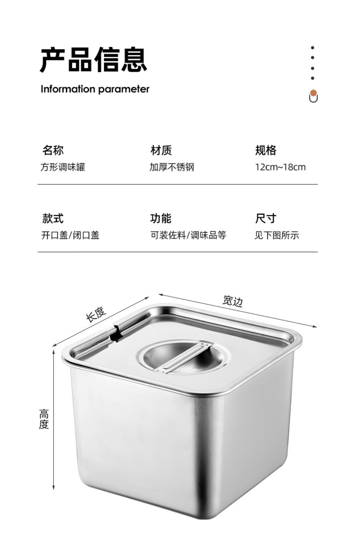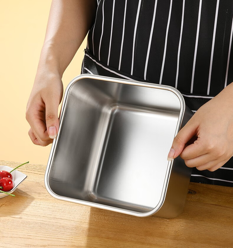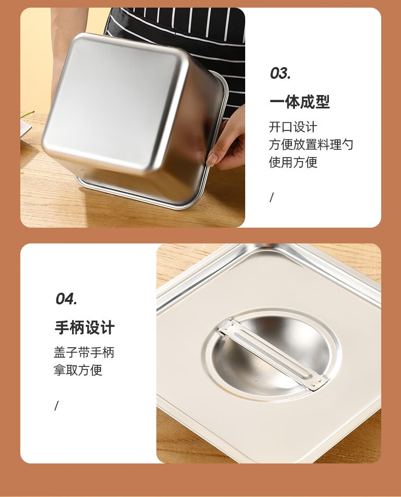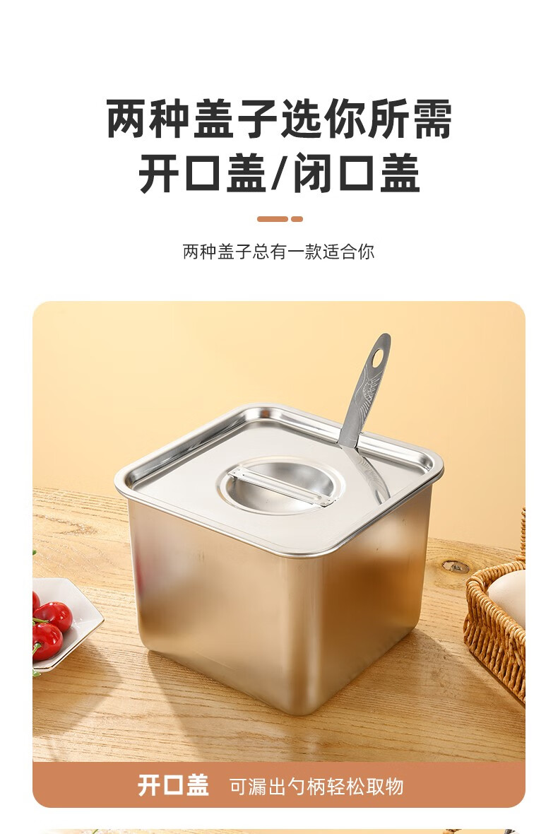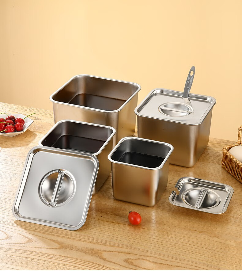 Condiment box commercial square stainless steel jam box kitchen restaurant special condiment jar canteen material cylinder square basin silver with opening lid 16cm square condiment jar 26 0ml