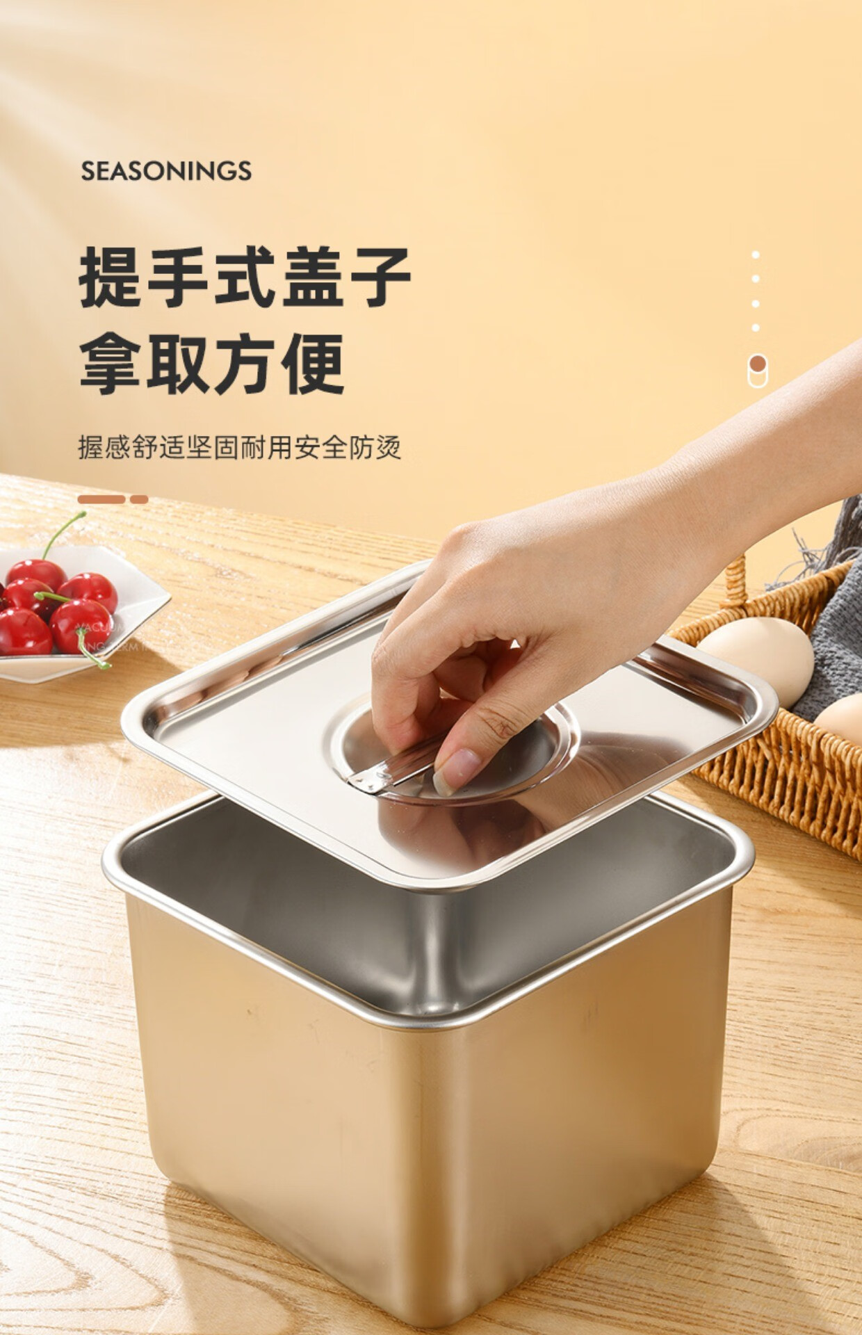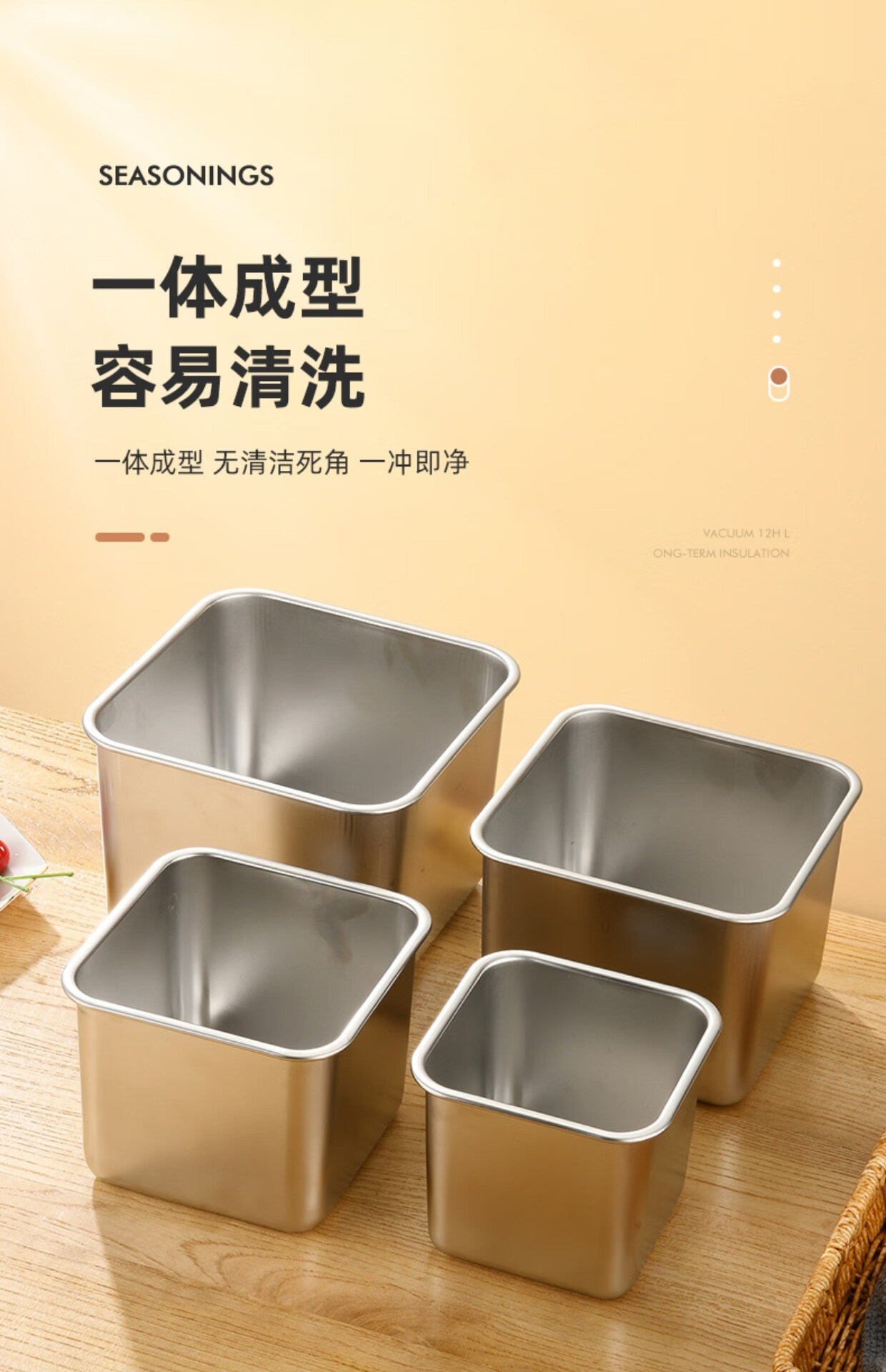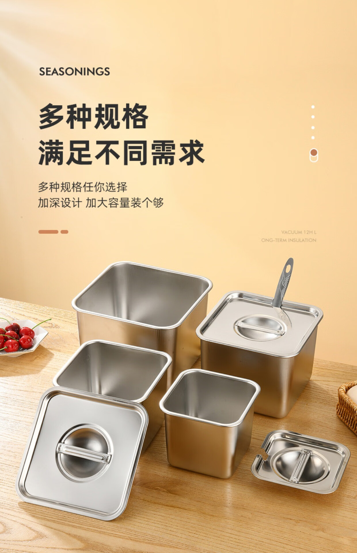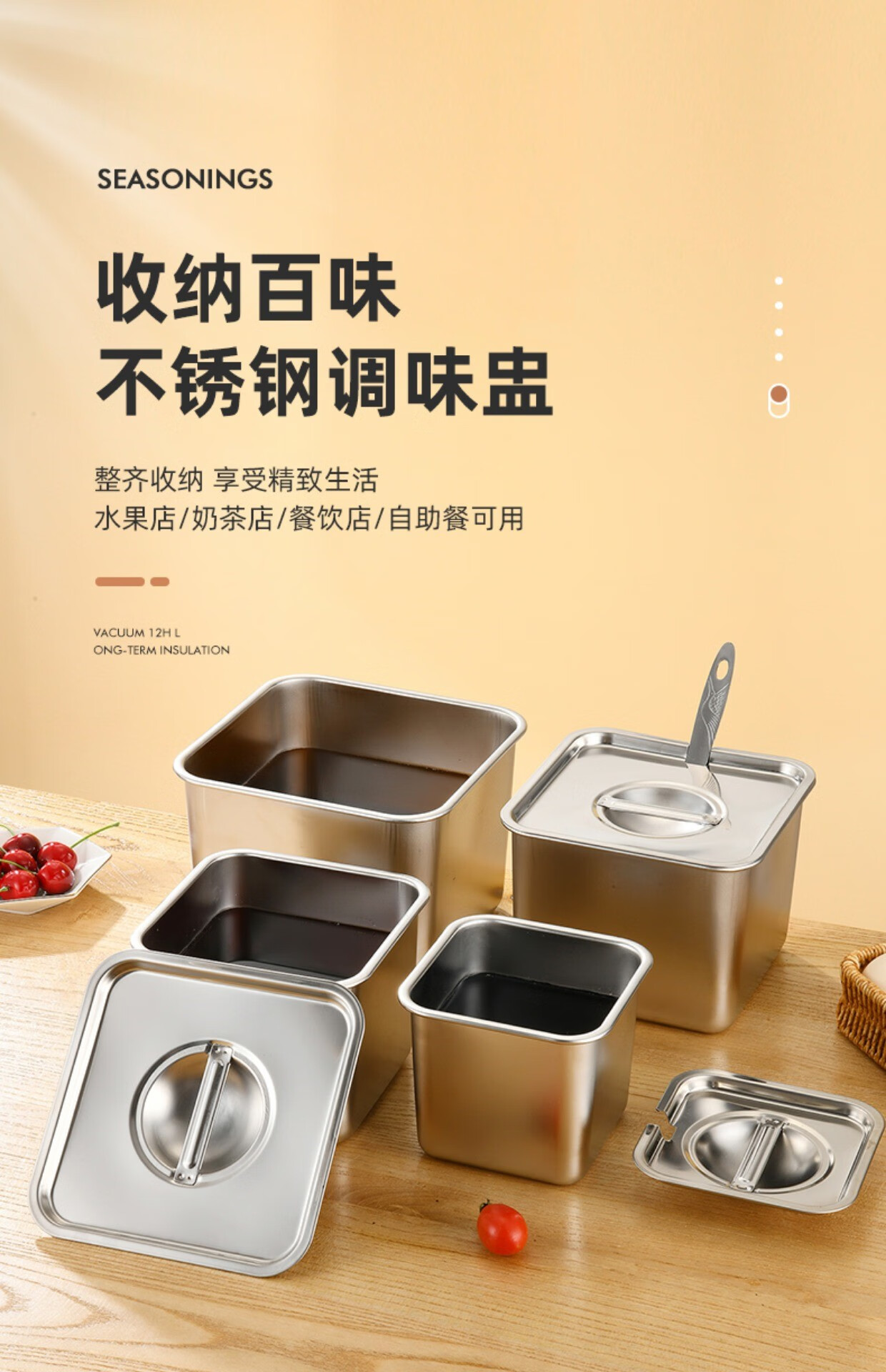 Condiment box commercial square stainless steel jam box kitchen restaurant special condiment jar canteen material cylinder square basin silver with opening lid 16cm square condiment jar 26 0ml