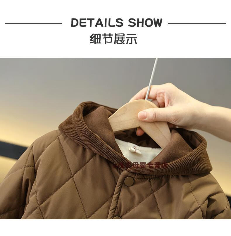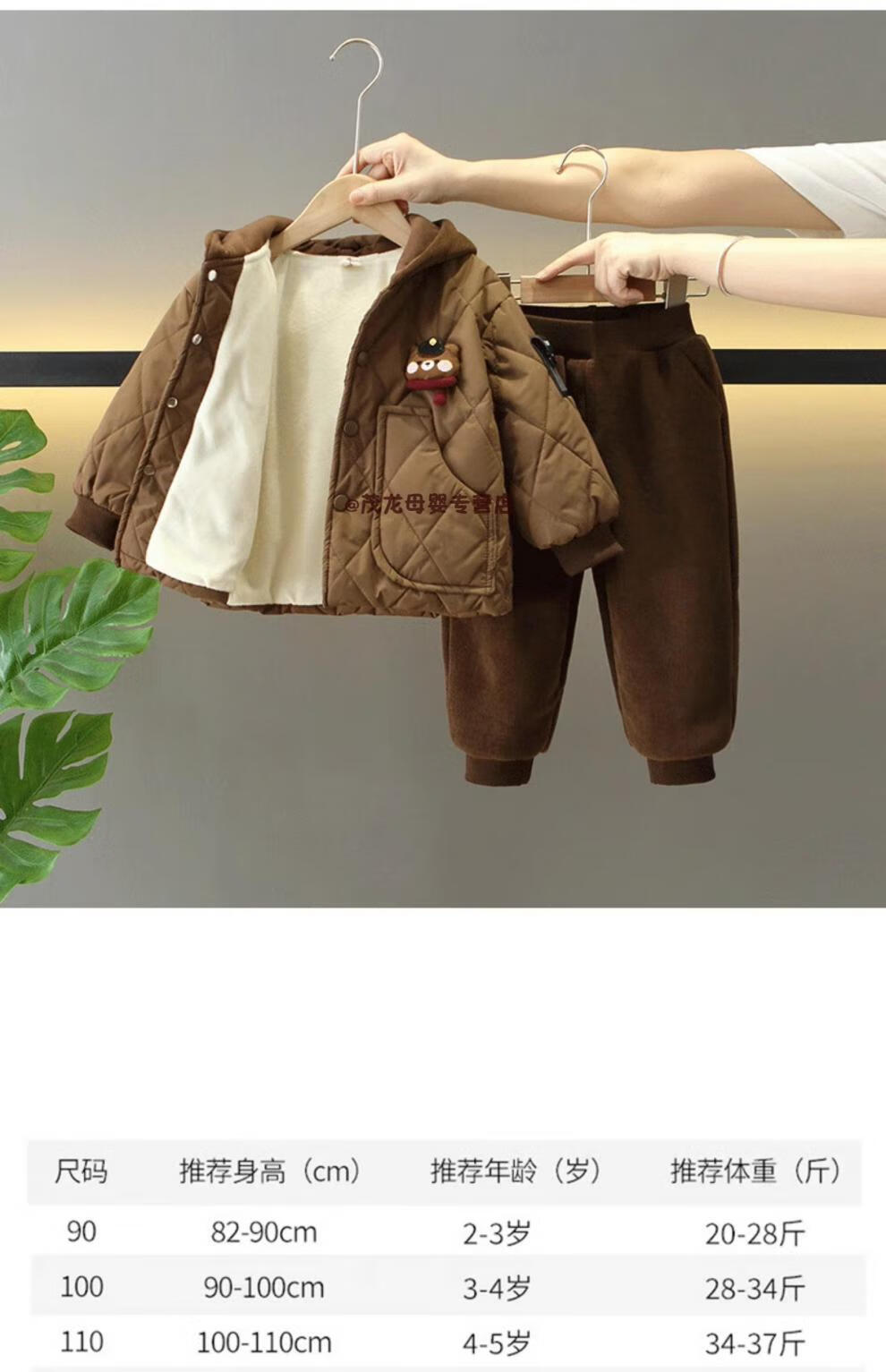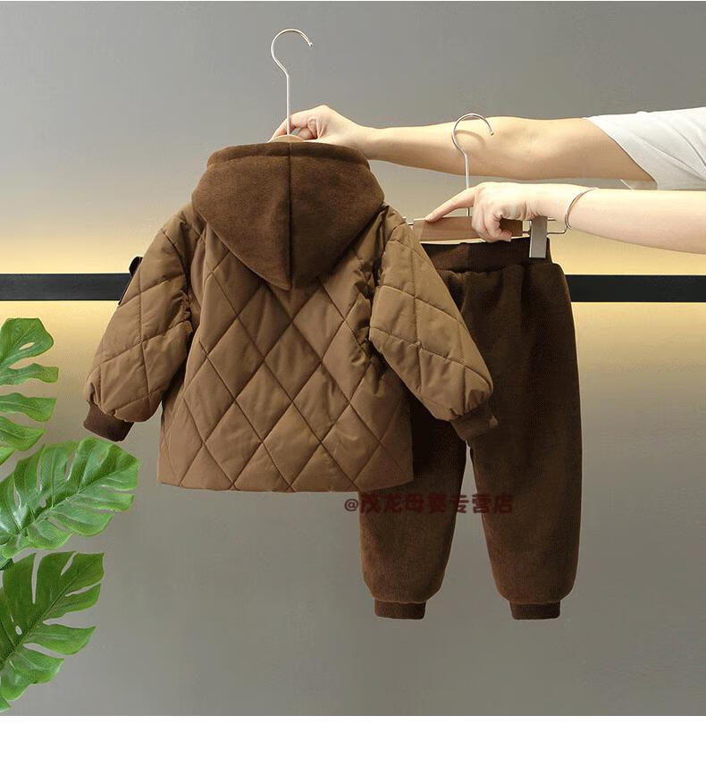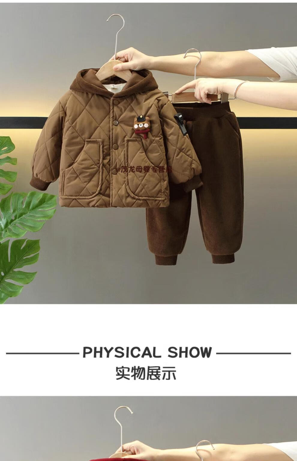 G.DUCKKIDS Boys Autumn and Winter Clothing Set 2025 New Children's Plush Cotton Jacket Baby Winter Thickened Cotton Jacket Two-piece Set Brown 120 cm