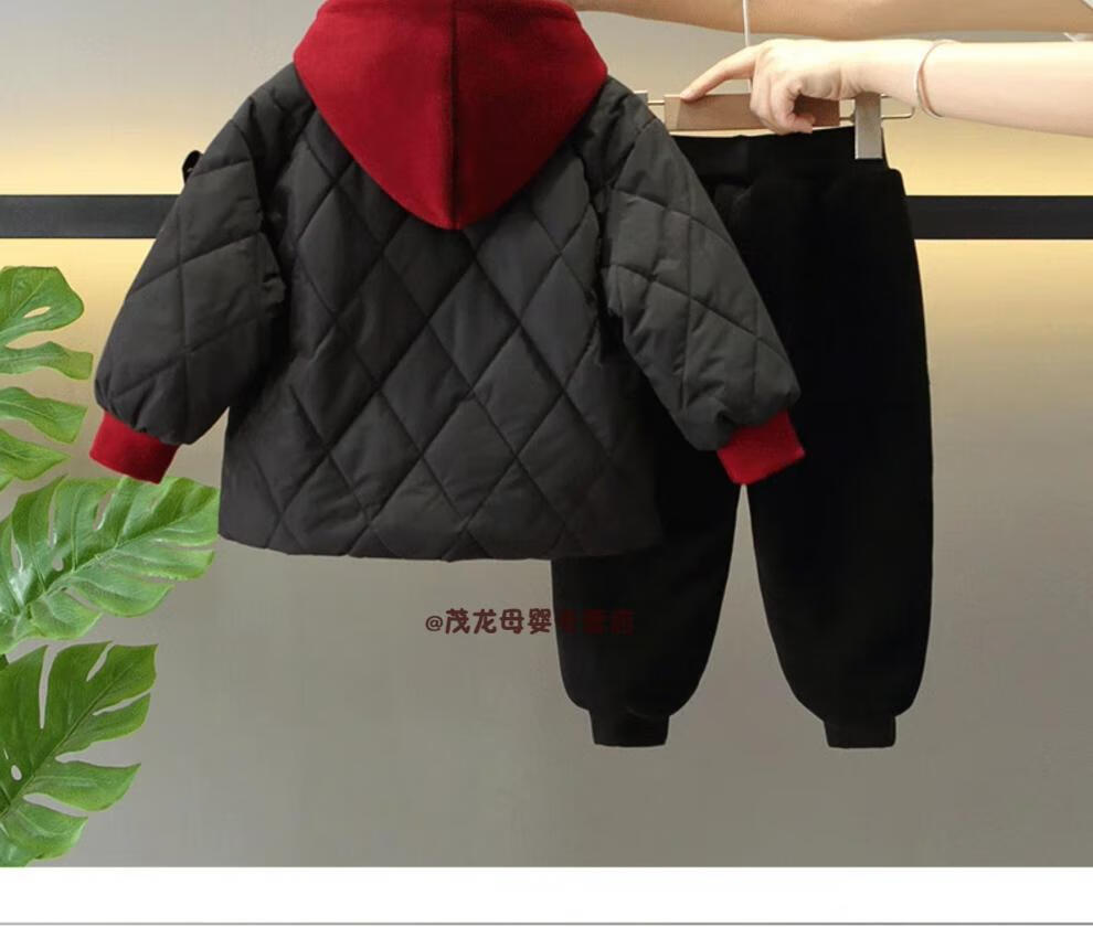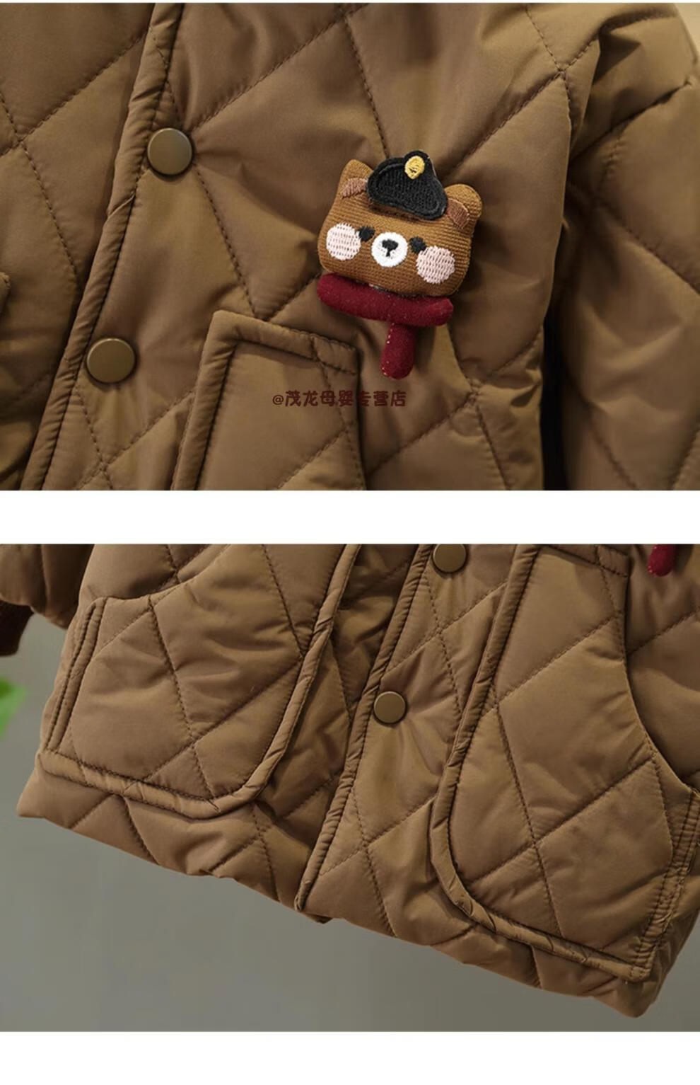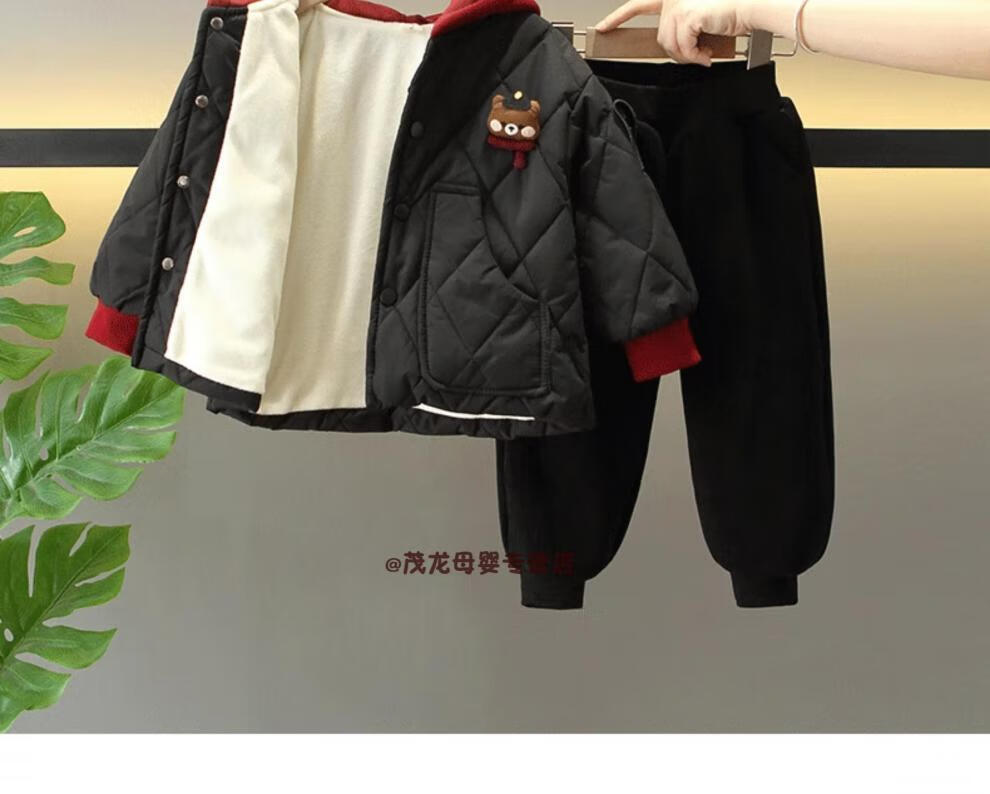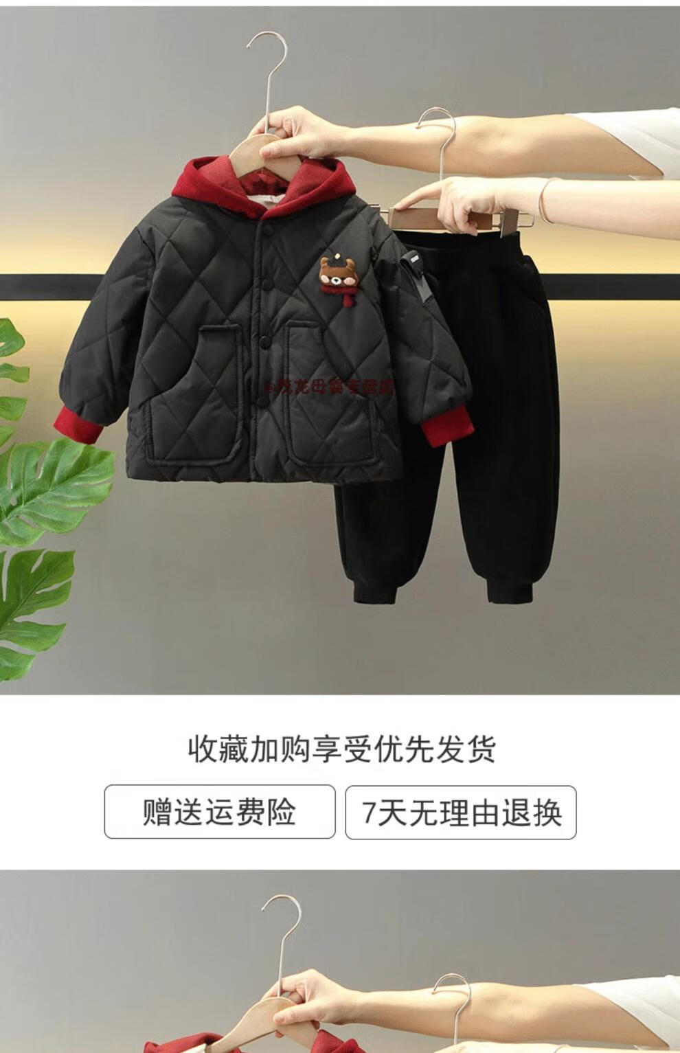 G.DUCKKIDS Boys Autumn and Winter Clothing Set 2025 New Children's Plush Cotton Jacket Baby Winter Thickened Cotton Jacket Two-piece Set Brown 120 cm