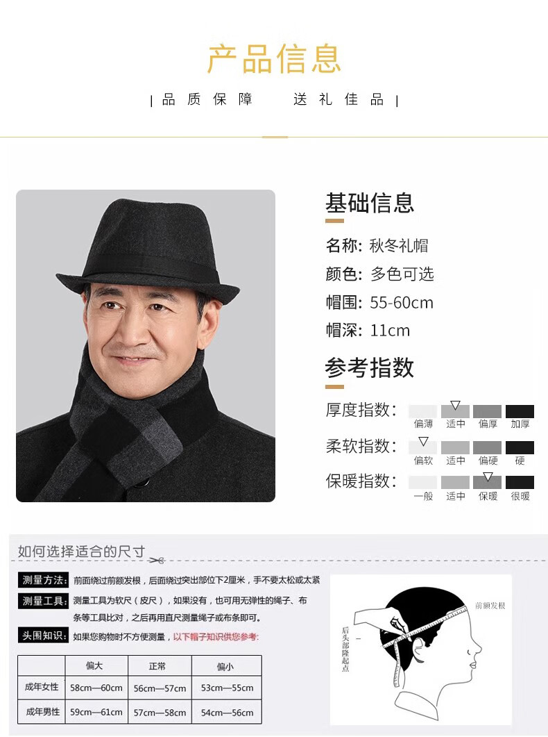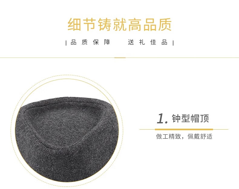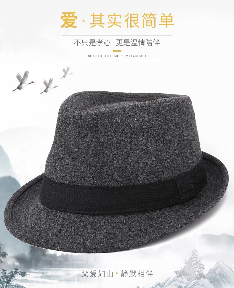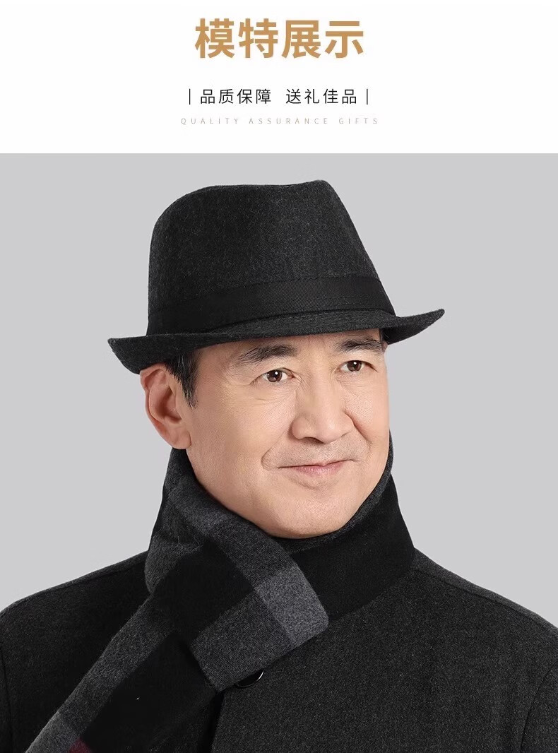 Lufeng Hat Men's Top Hat Winter Woolen Warm Jazz Hat Middle-aged and Elderly Spring and Autumn Dad Old Man Retro Gentleman Hat Black Regular Head Circumference 55-58cm