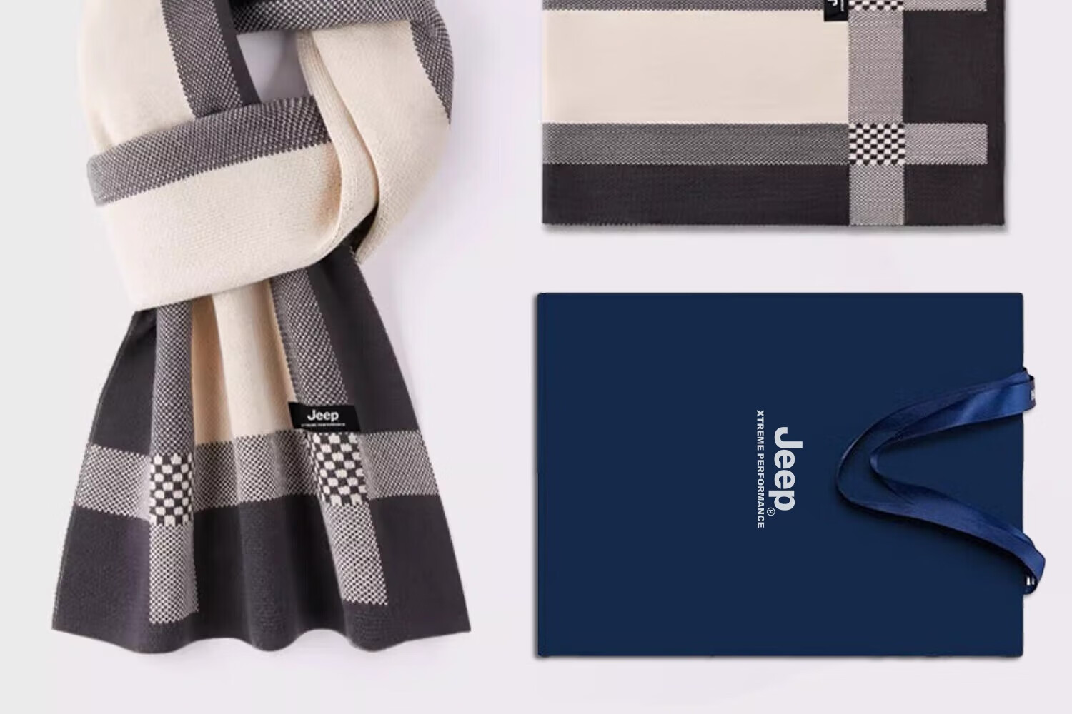 JEEP scarf men's winter neck scarf thickened warm scarf Valentine's Day birthday gift for boyfriend high-end gift box classic khaki exquisite gift box