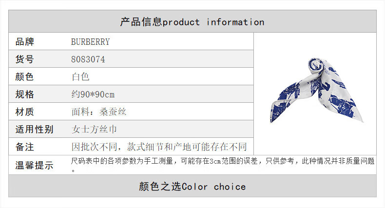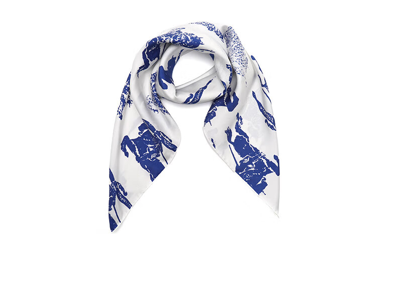BURBERRY Gift War Horse Logo Printed Mulberry Silk Women's Square Silk Scarf 8083074 White All